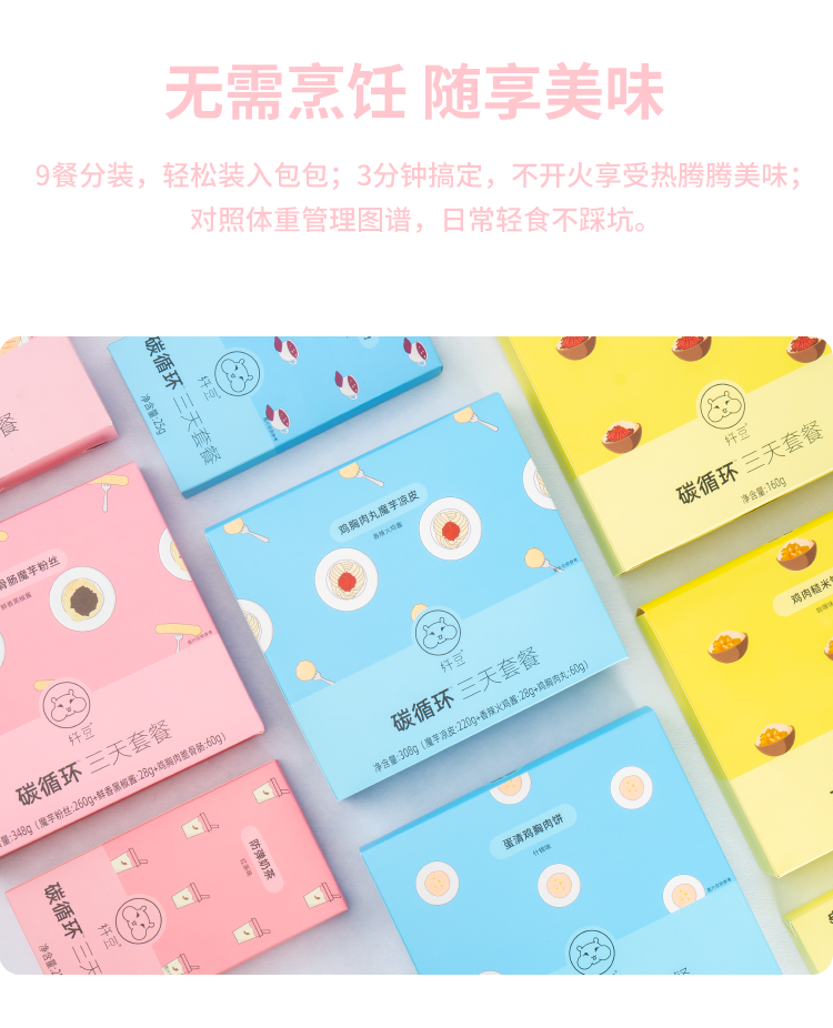 燃卡代餐碳循环体验装,餐餐有滋味,定制营养,减脂无负担~无需烹饪,即热即食,3分钟搞定,独立包装,随身携带,随时随地享受美味~膳食均衡,营养美味,好吃还不会胖哦~