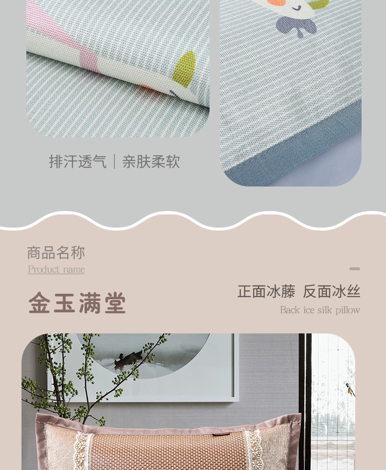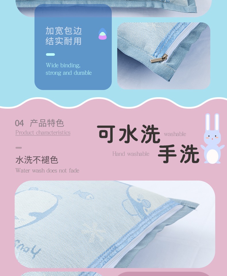 亲肤柔软,吸湿透气,大人小孩都可以用!可水洗折叠,冰丝清凉因子,维持恒温,凉而不冰!防螨防潮睡得清爽更舒心!