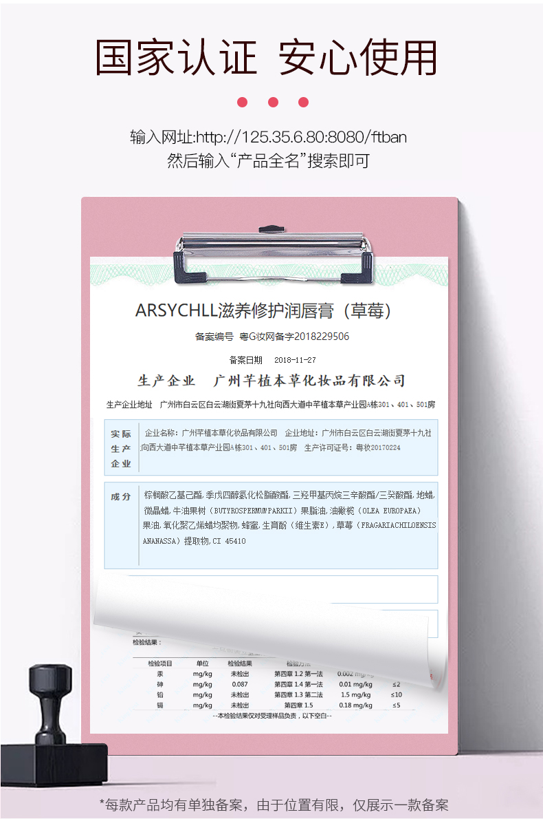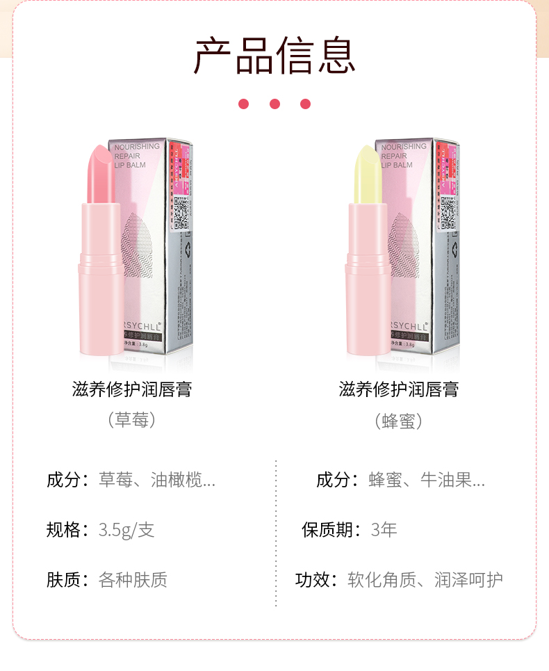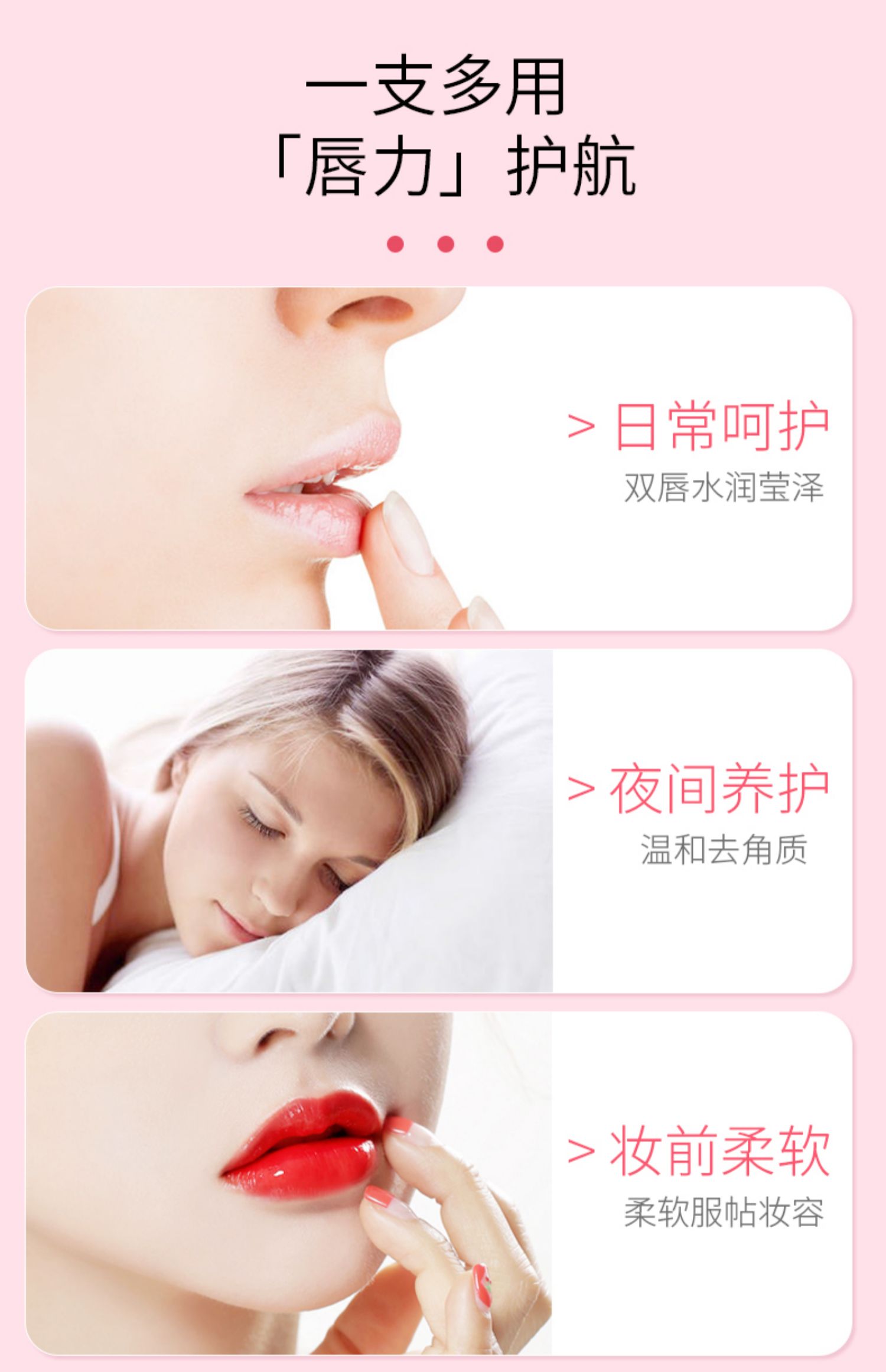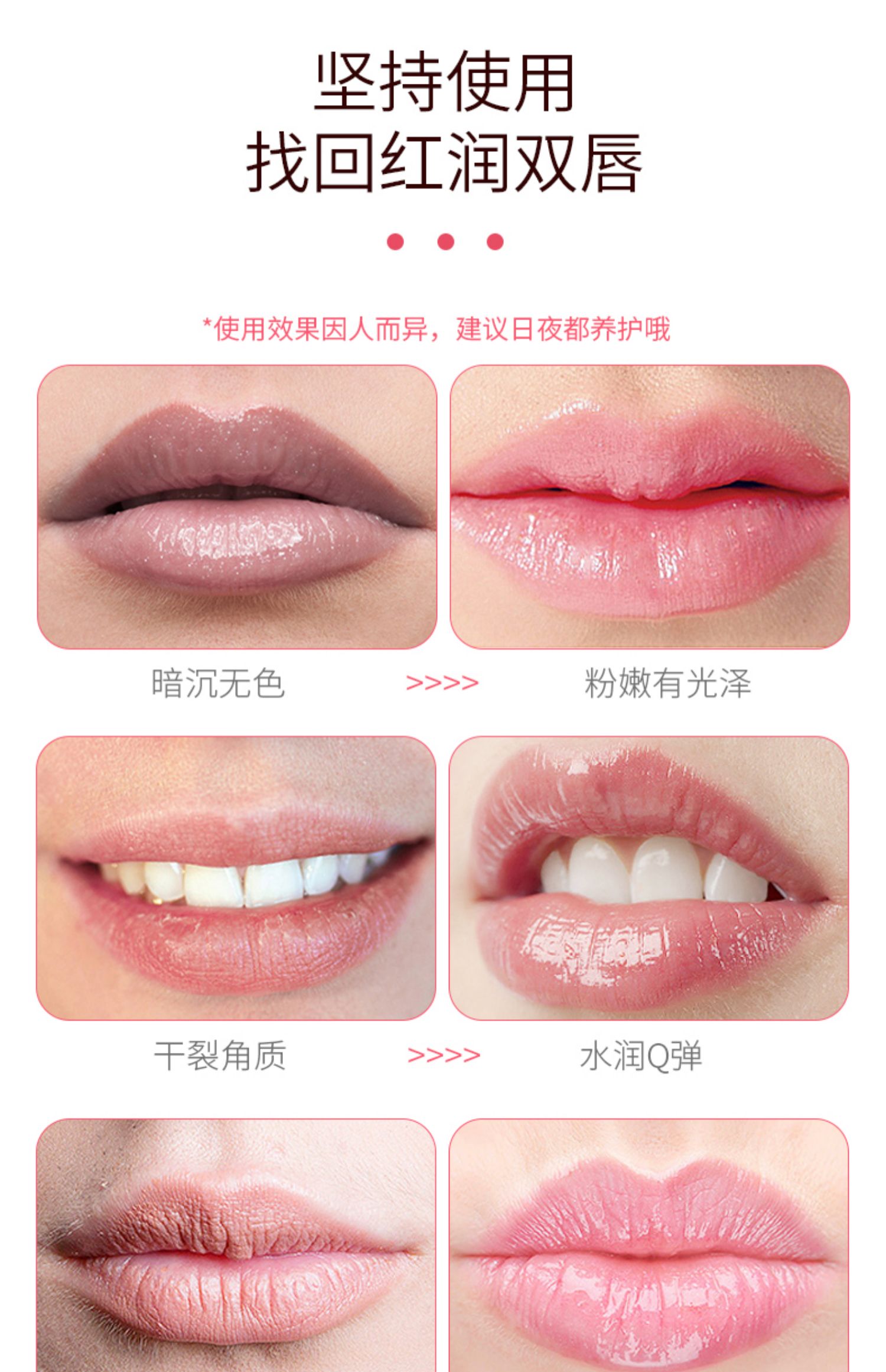 食用级安全配方,温感变色,保湿润养,软化角质,减少唇纹,提亮唇色,润而不腻,长效滋润,方便携带,国家认证,资质检测,质量放心,安心使用!