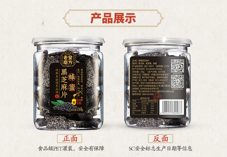 【老金磨方】蜂蜜黑芝麻片,健康无添加,香脆可口,手工制作,微甜不黏牙,挑选自然食材,江西黑芝麻,颗粒均匀,无染色无添加,经典原味,薄松香脆,食之忘言。