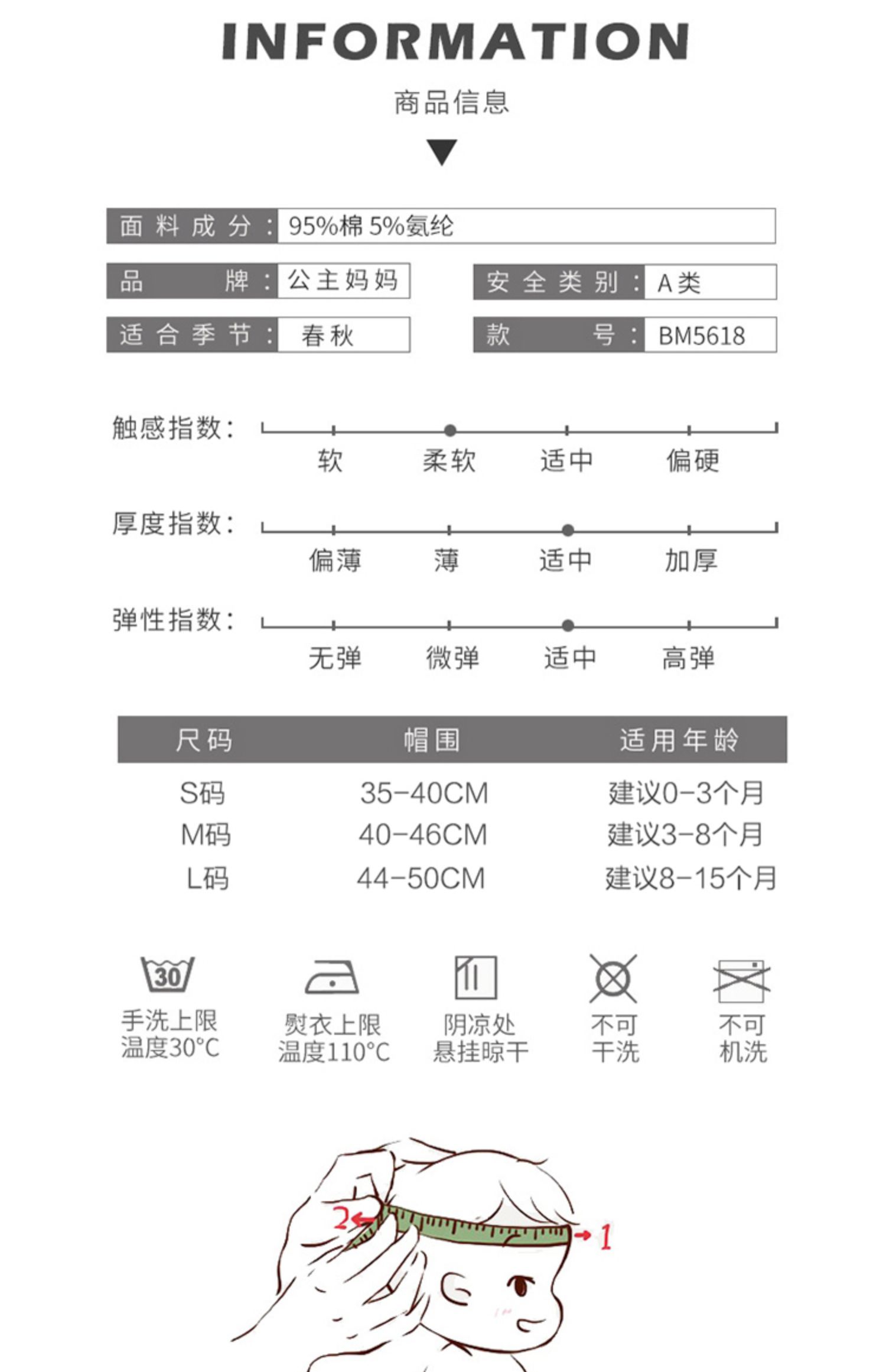 3个金冠11年老店!棉布内里,佩戴柔软舒适,精细做工无线头,选用棉质面料,贴合宝宝头部,宝宝不受伤害,透气舒适。可爱防晒遮阳帽圆顶盆帽,萌宝都喜欢!