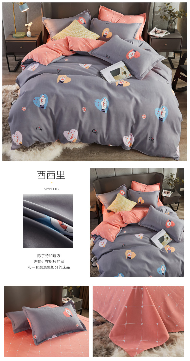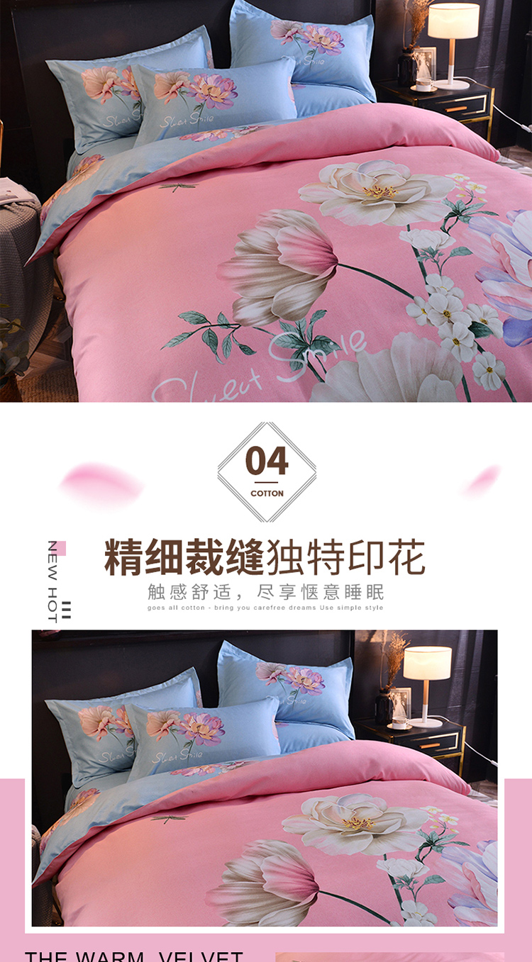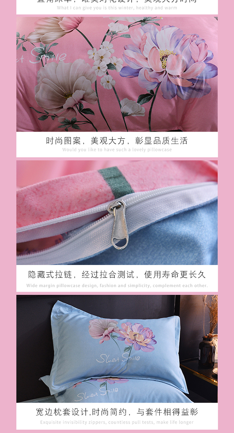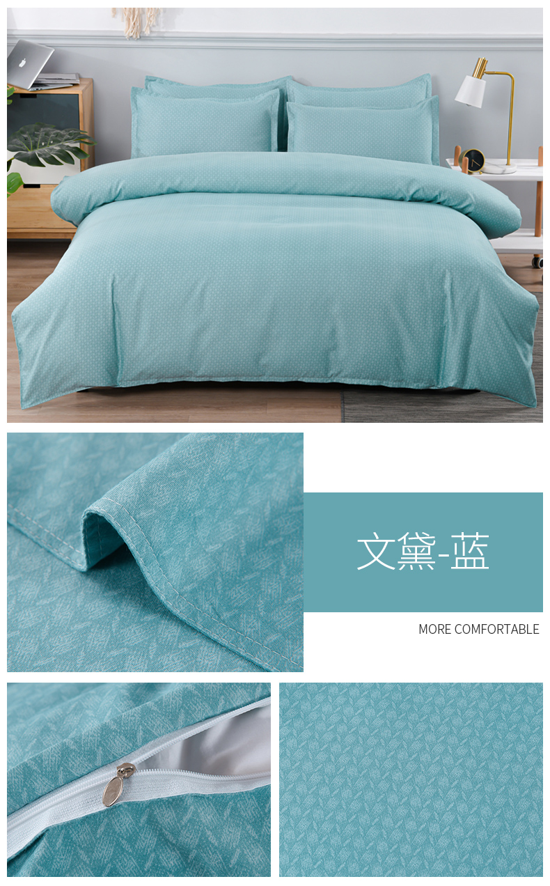 精选双层纯棉面料,盖式设计,套在床上,绝不位移!亲肤透气,不起球,不缩水,不褪色,无甲醛、无异味、真正可以裸睡的床品!