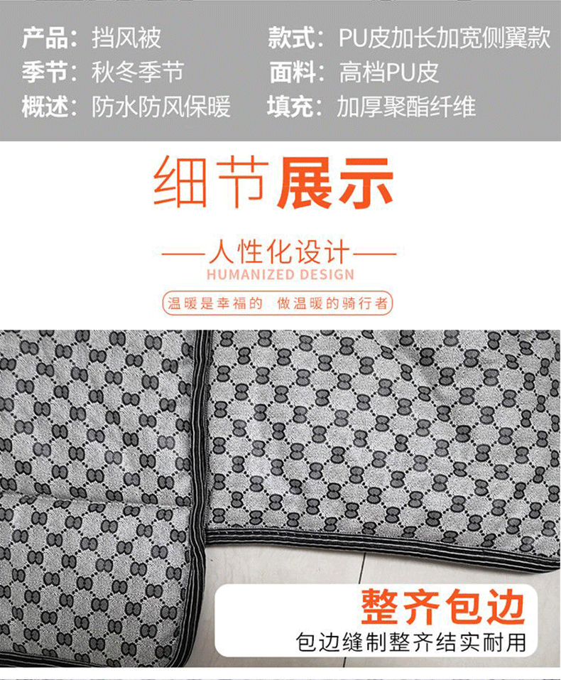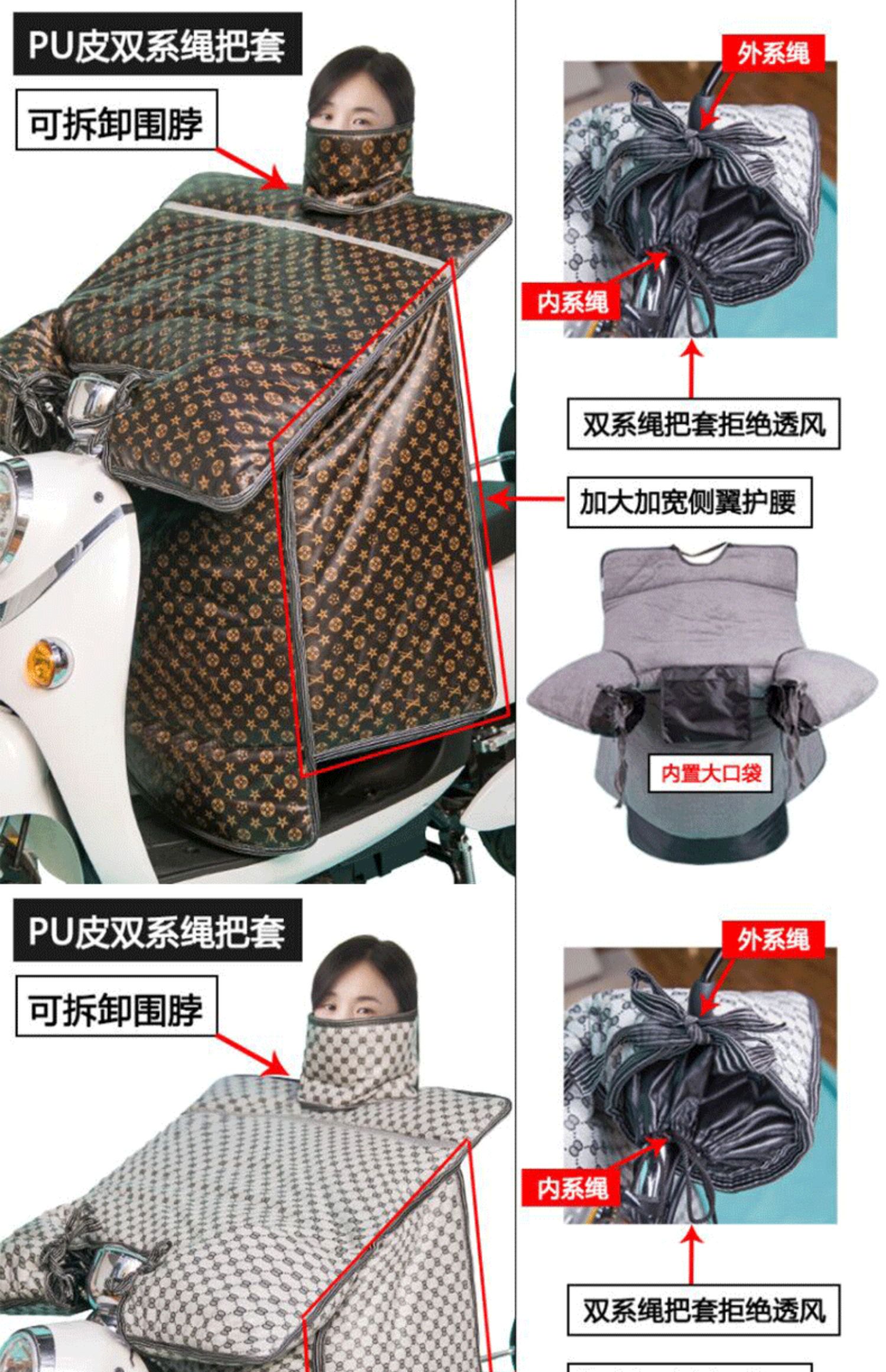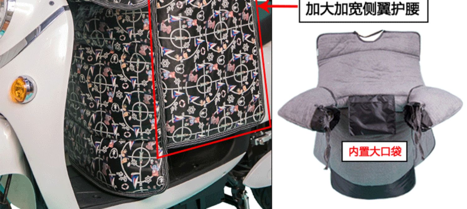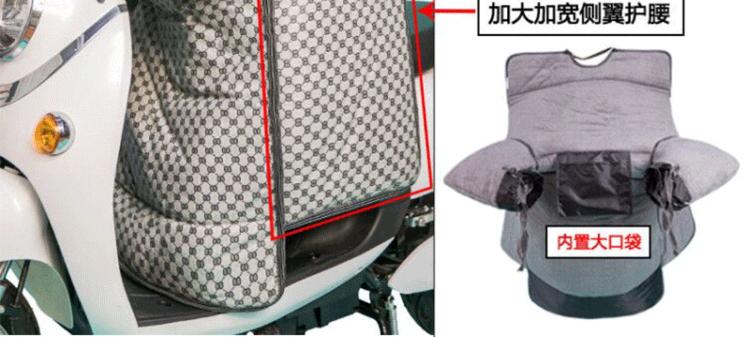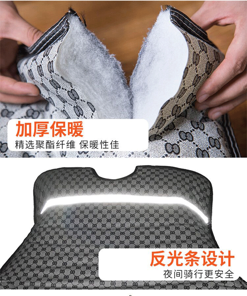 这款挡风是双面防水的,加绒加厚款,和棉被一样暖和~还自带夜间反光条,出行更安全!已经立秋了,买了马上就能用,路上不再挨冻!