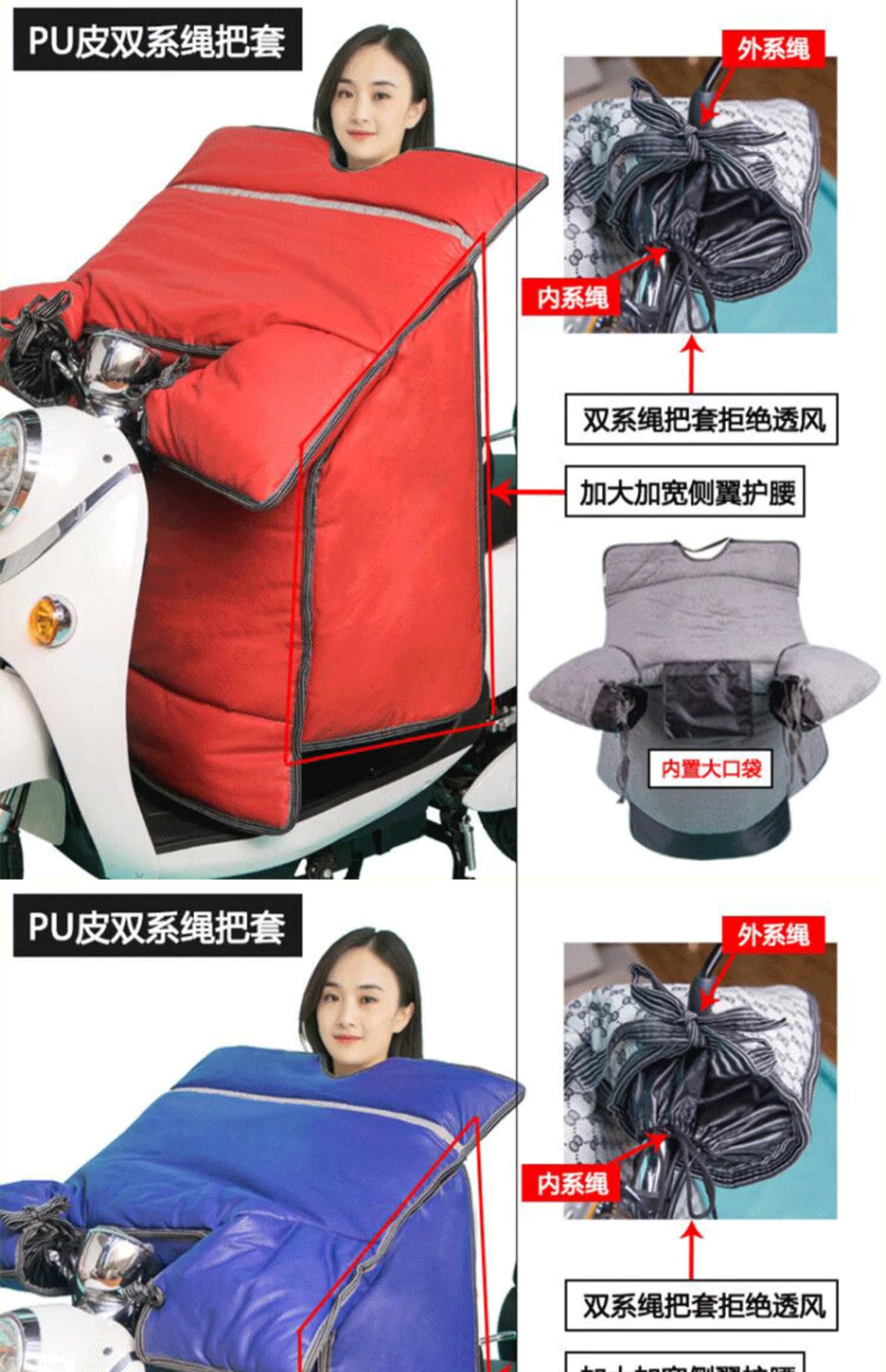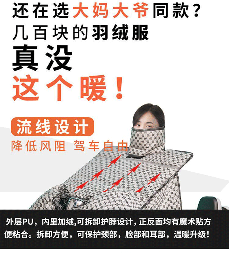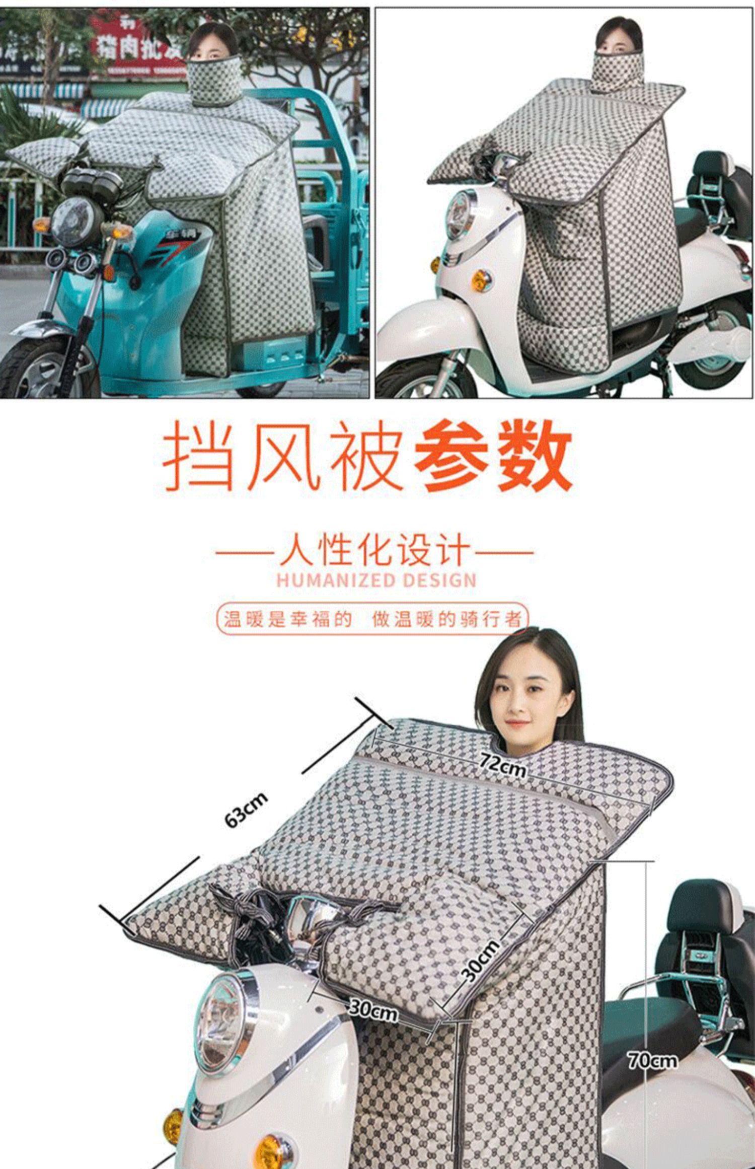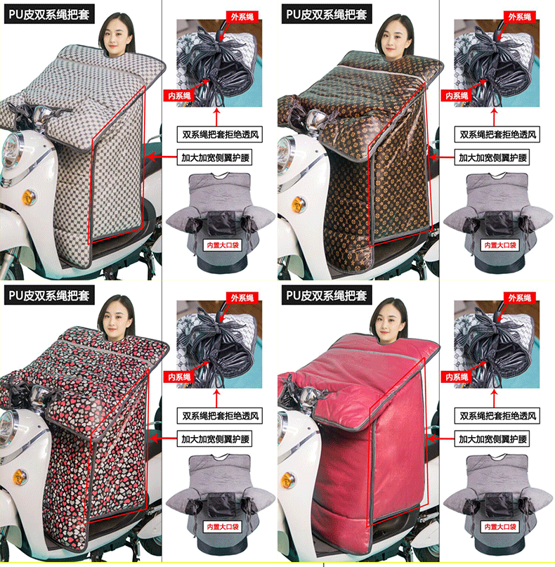 这款挡风是双面防水的,加绒加厚款,和棉被一样暖和~还自带夜间反光条,出行更安全!已经立秋了,买了马上就能用,路上不再挨冻!
