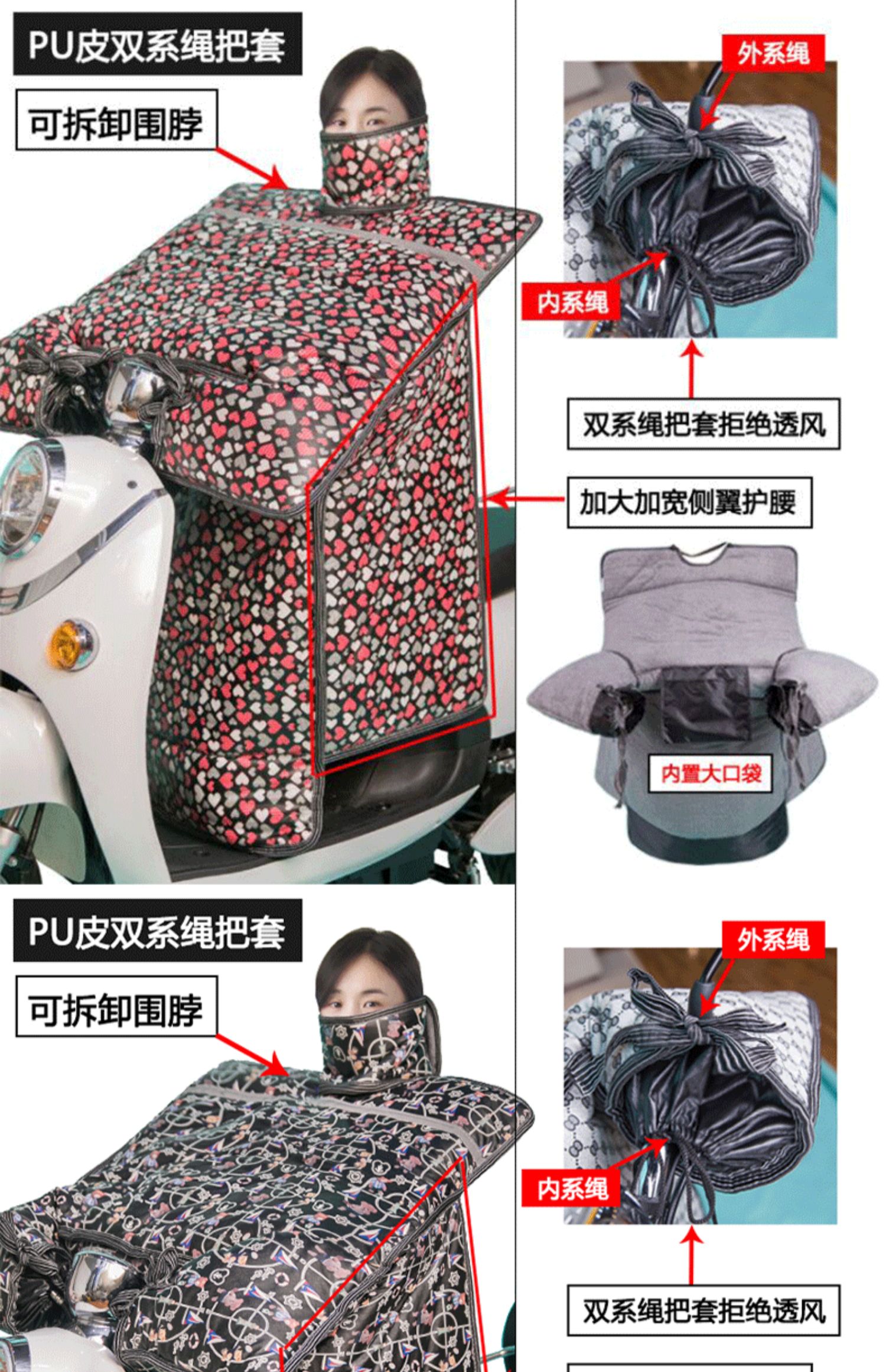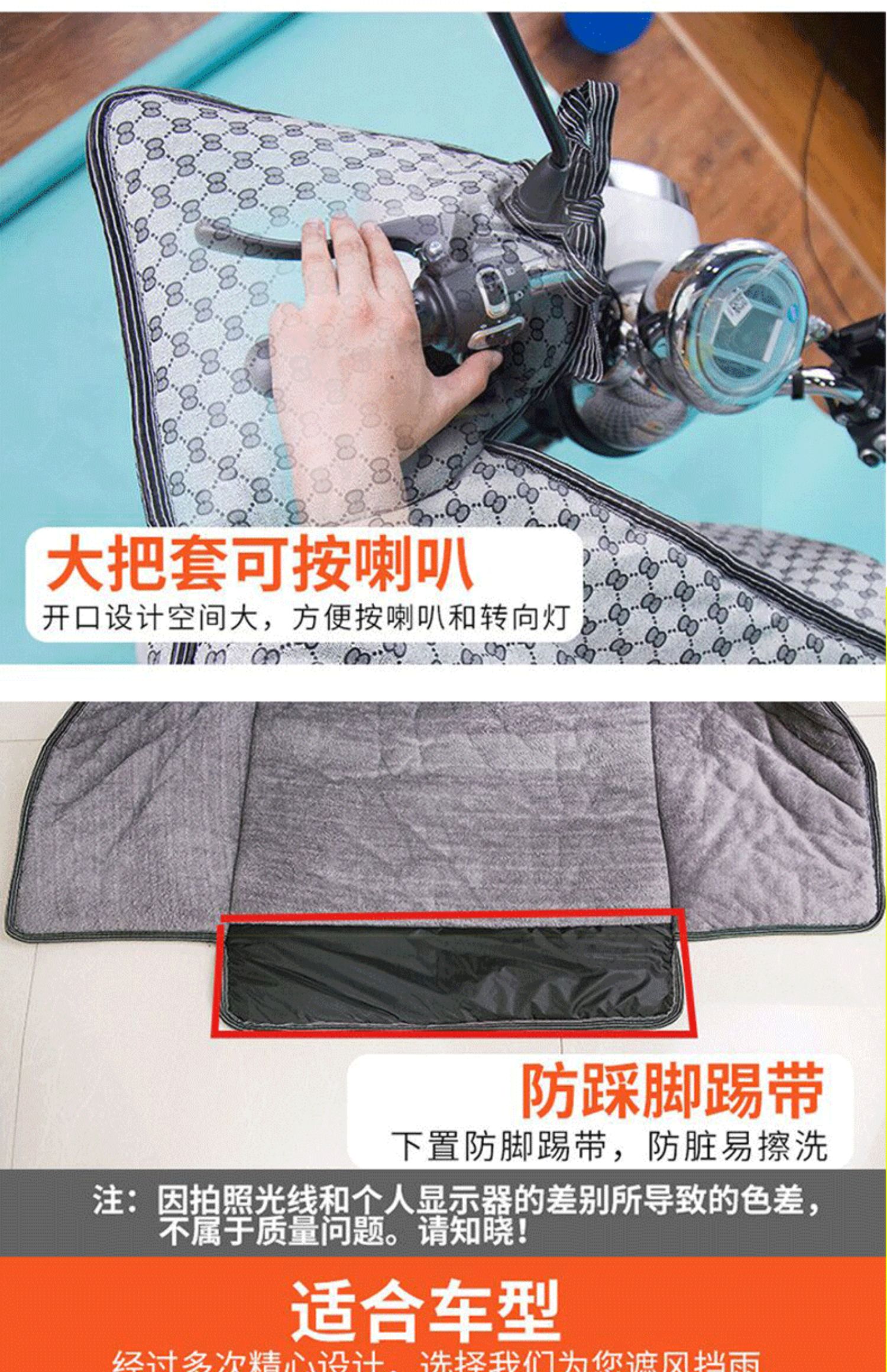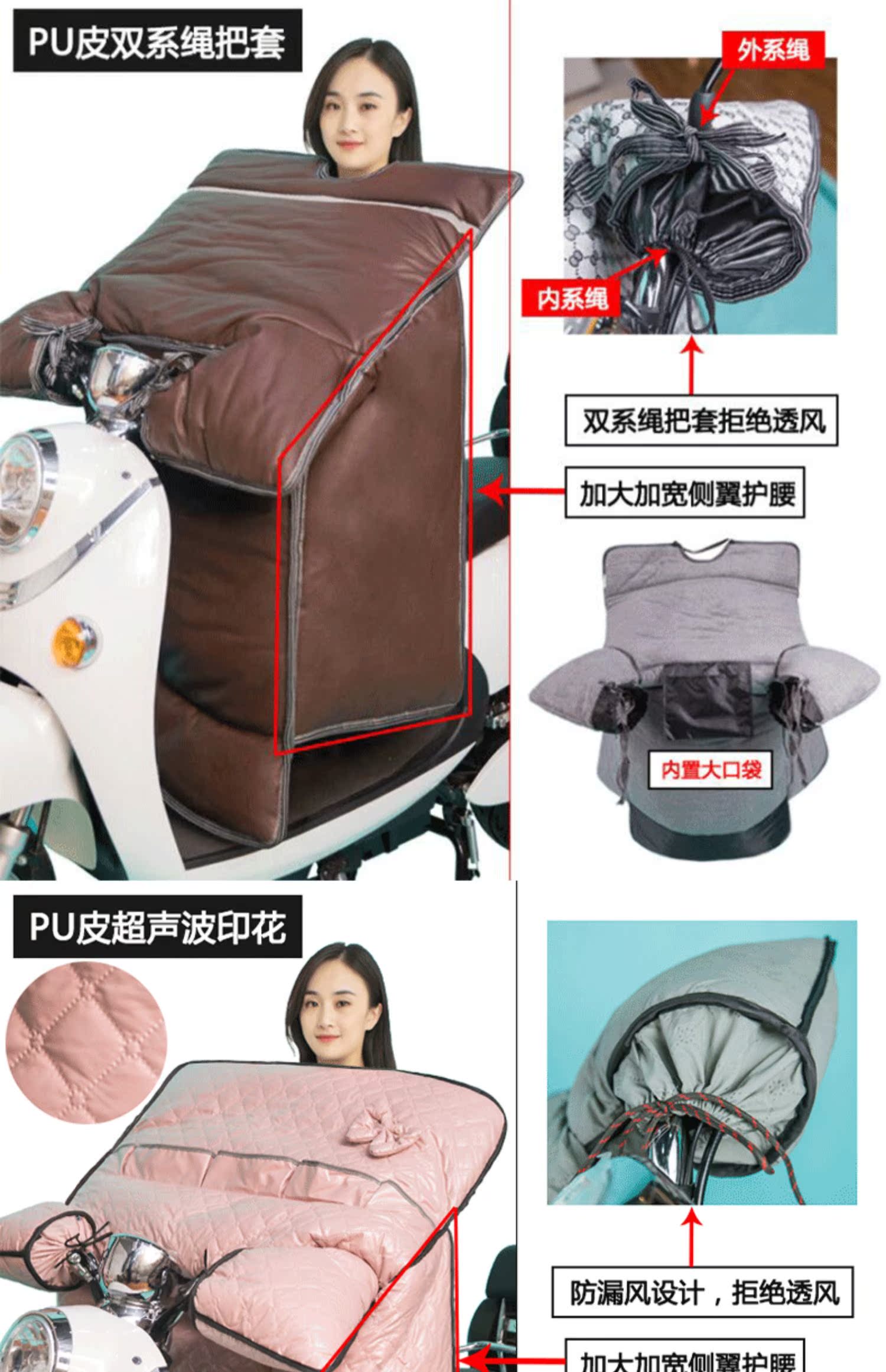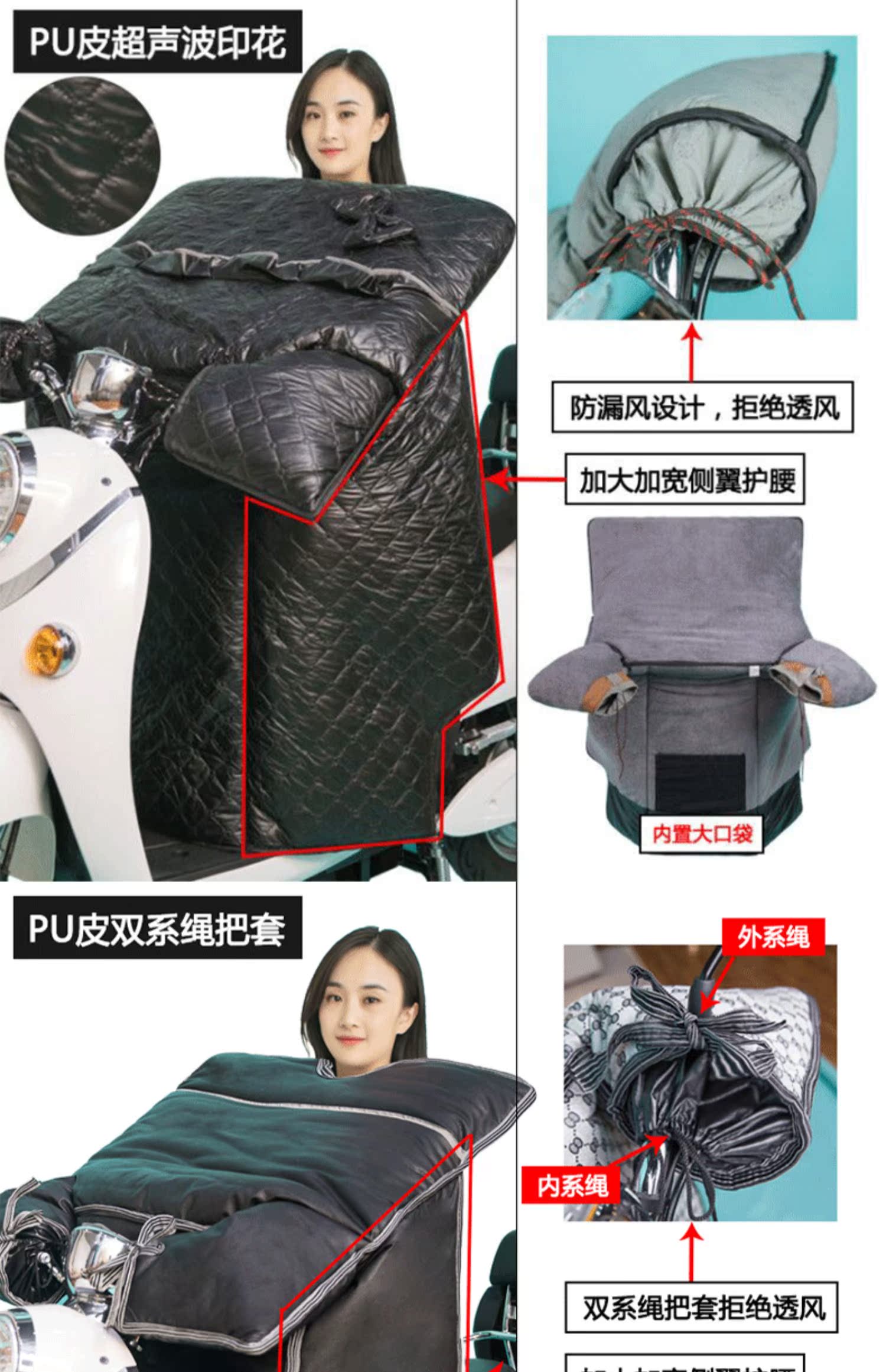 这款挡风是双面防水的,加绒加厚款,和棉被一样暖和~还自带夜间反光条,出行更安全!已经立秋了,买了马上就能用,路上不再挨冻!