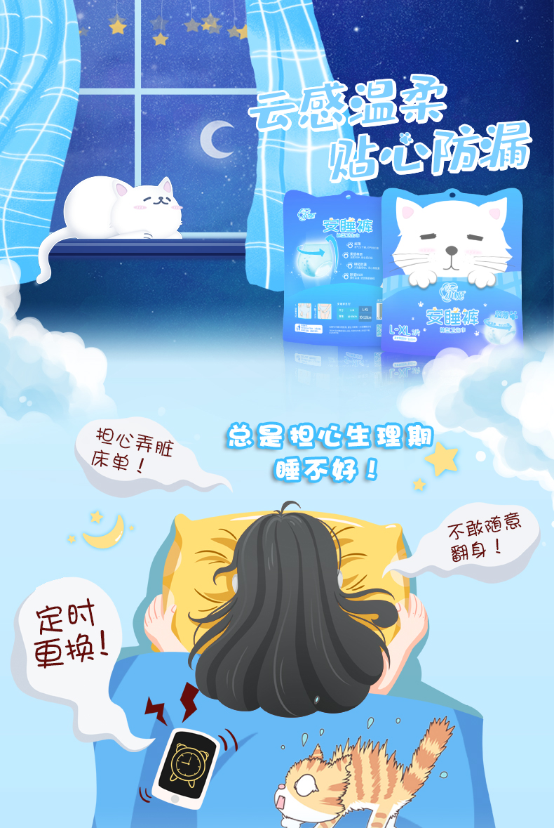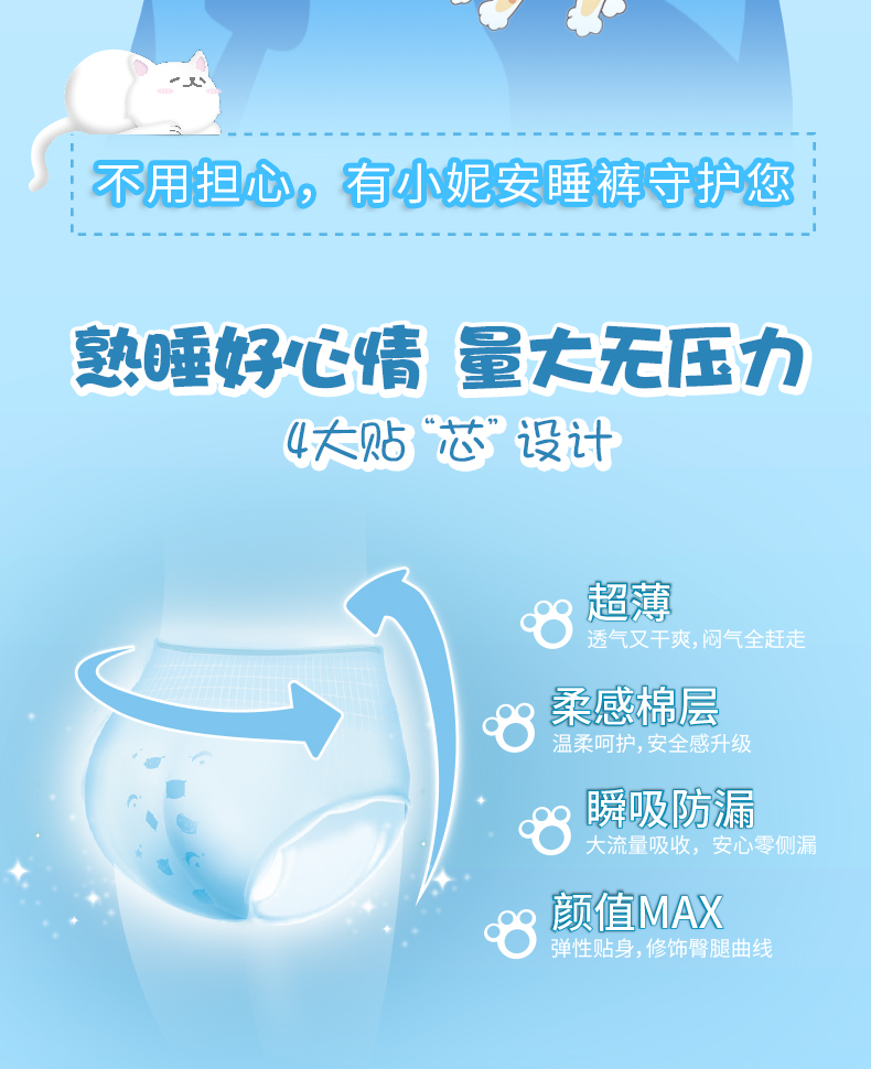【12片秒杀】360度环抱裤型设计,超长450mm吸水因子芯体,瞬吸干爽,裤型3cm防漏侧边,不含荧光剂,不含绒毛浆,不侧漏珍珠棉面无尘抑菌,大姨妈来了没烦恼~