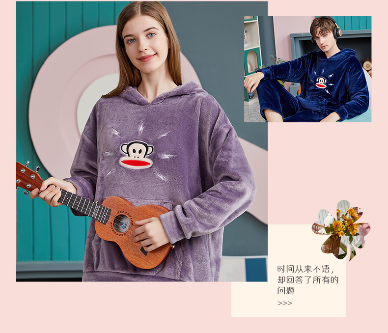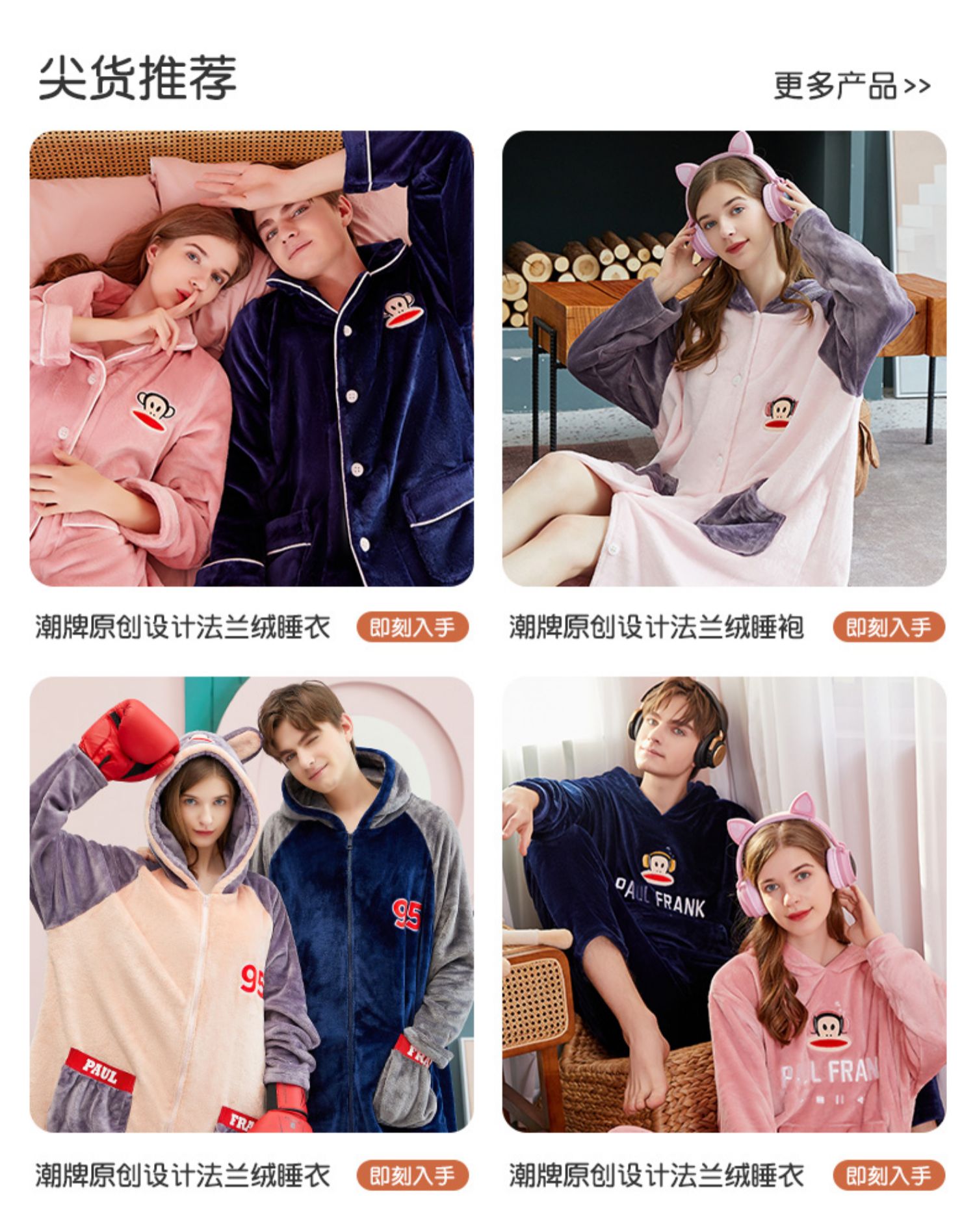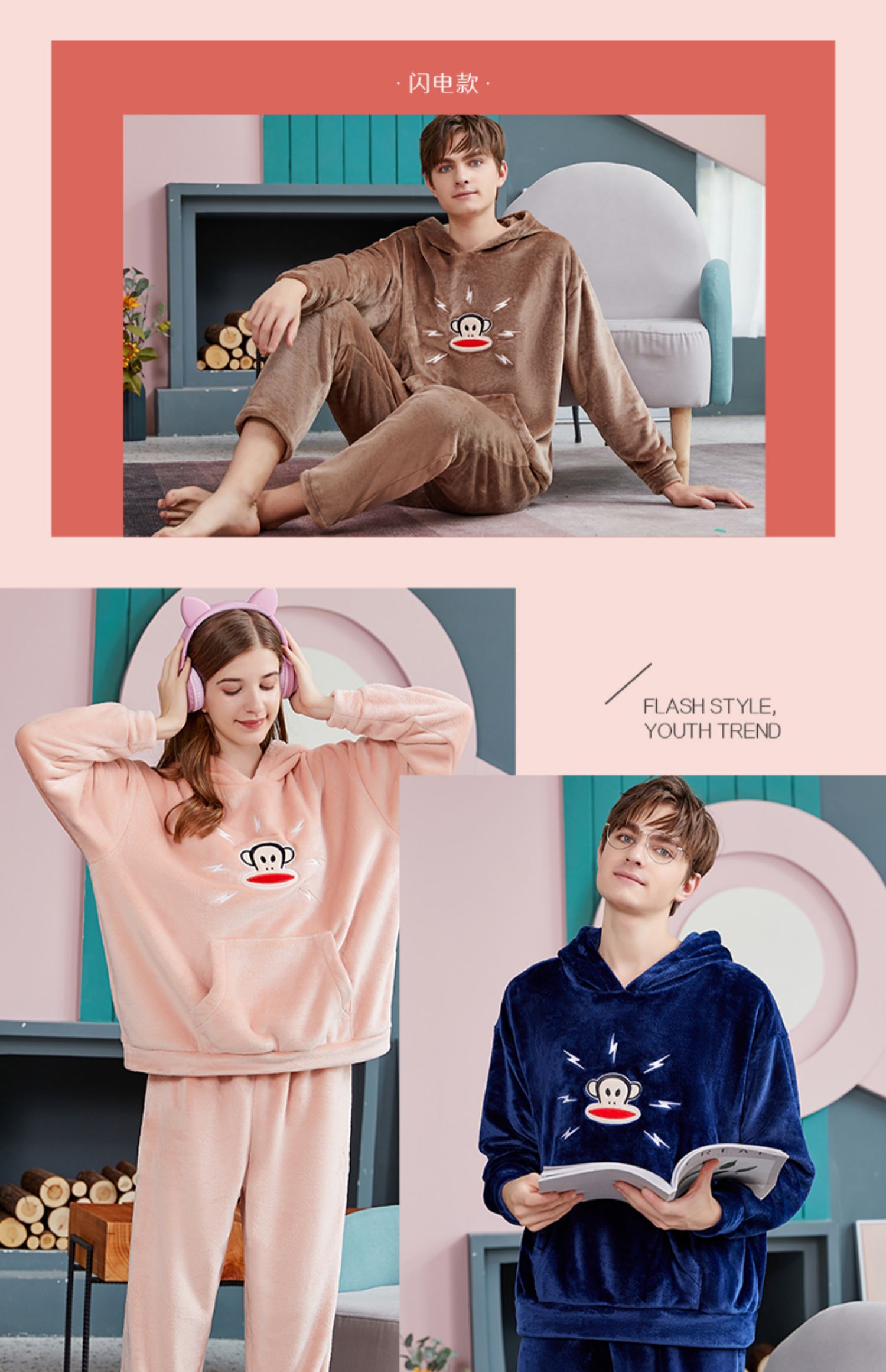 【大嘴猴内衣旗舰店】男女同款冬季加厚三层夹棉法兰绒睡衣,柔软亲肤,保暖性好,清新脱俗,款式高档,居家必备,54种款式任你选,一件顶三件,你值得拥有~【赠运费险】