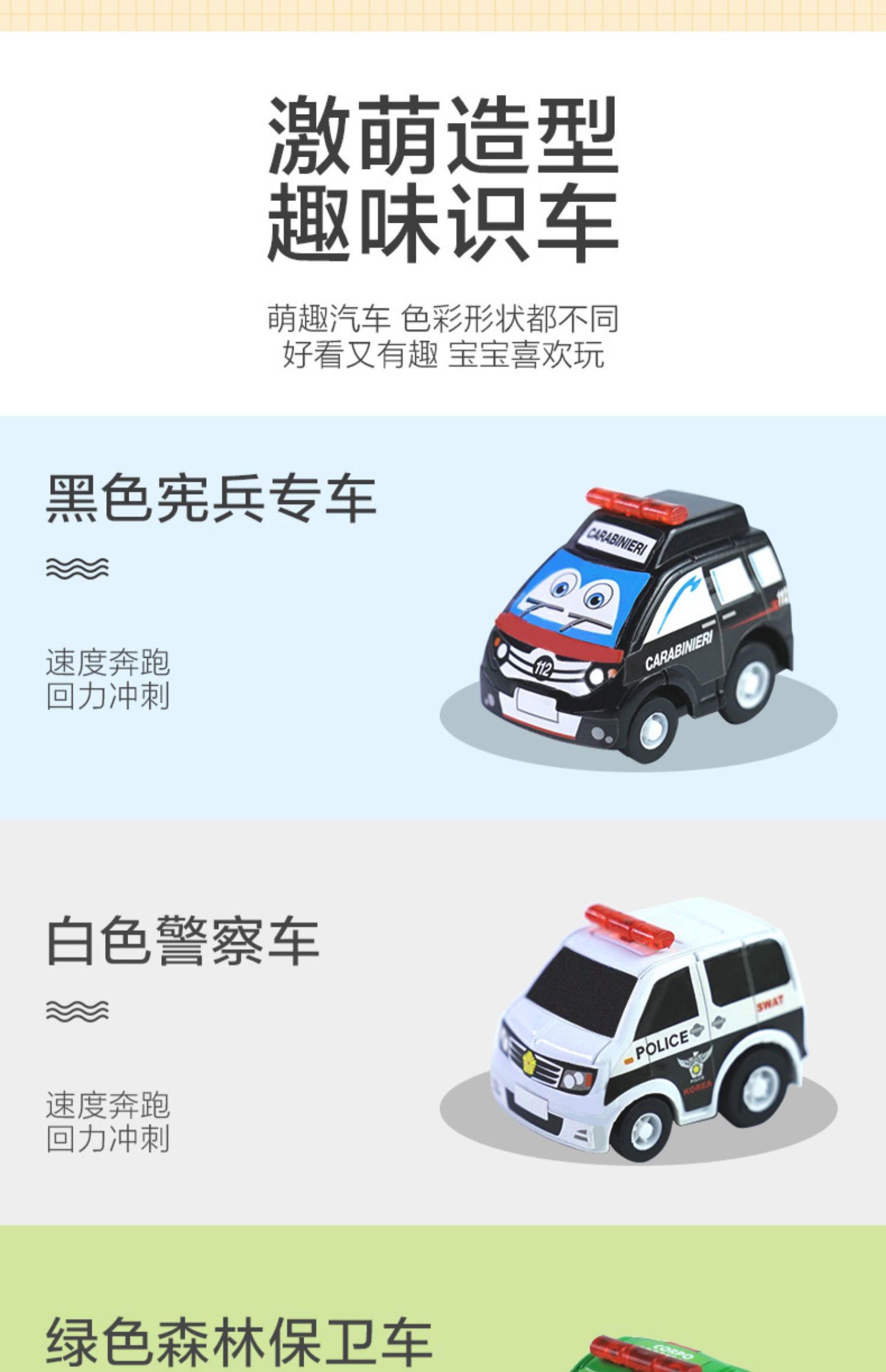 回力小汽车系列,适合2-6岁宝宝,精选高强度ABS环保材质,不含BPA,耐玩耐摔无装电池,多款任意选,轻轻后拉迅速奔跑。在玩乐中锻炼宝宝肢体协调能力!
