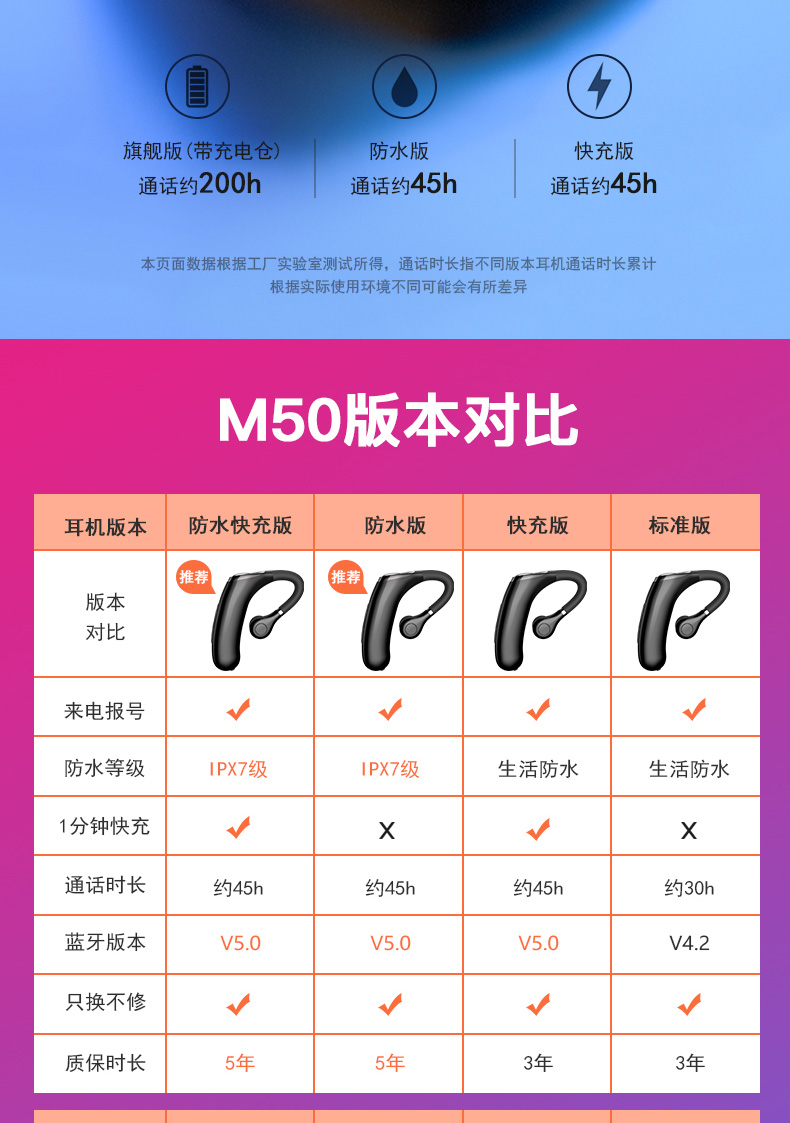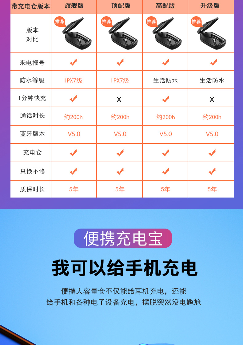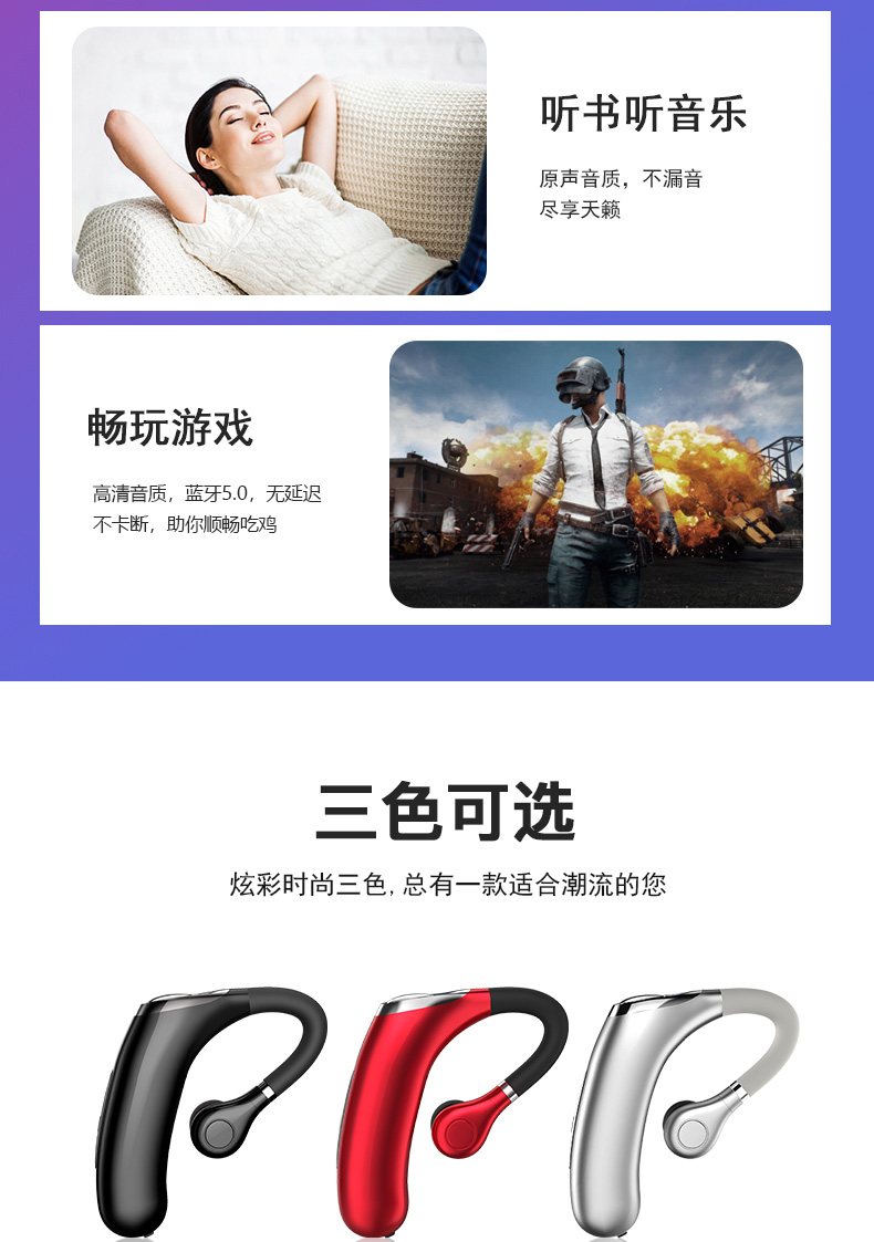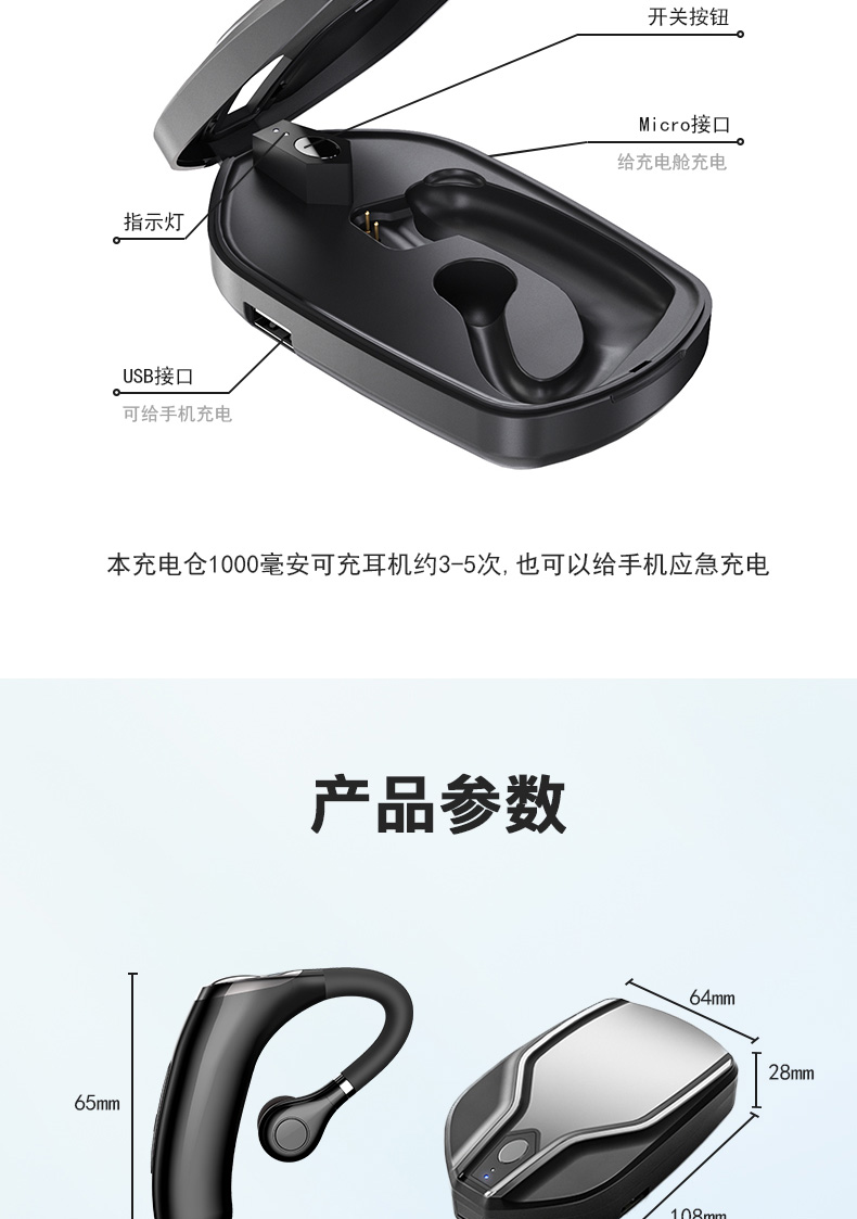 【送3年质保+舒适耳帽2个+原装数据线】支持所有型号,蓝牙V5.0版本,7级防水,一分钟快充,1000毫安充电仓,可超长续航,智能降噪,单耳挂耳式无痛佩戴更便捷!【赠运费险】