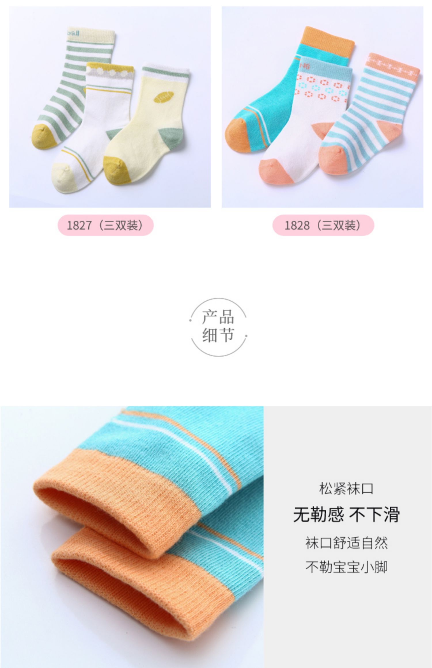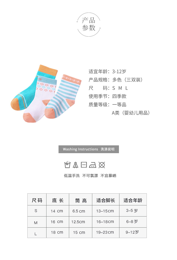 A类纯棉材质!专为宝宝打造,超值3双装,经过严格质检,优质亲肤棉袜,多色萌趣,手工缝头,不磨脚,筒高舒适,耐磨耐穿,让孩子穿的更放心,玩得更开心,助宝贝健康成长。
