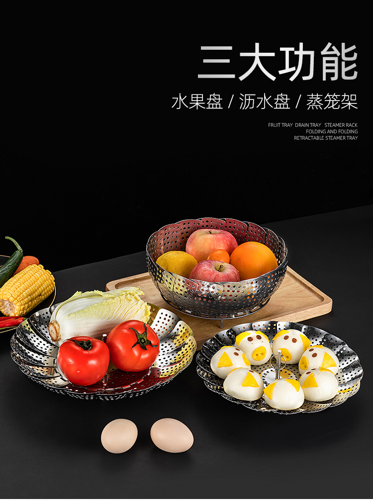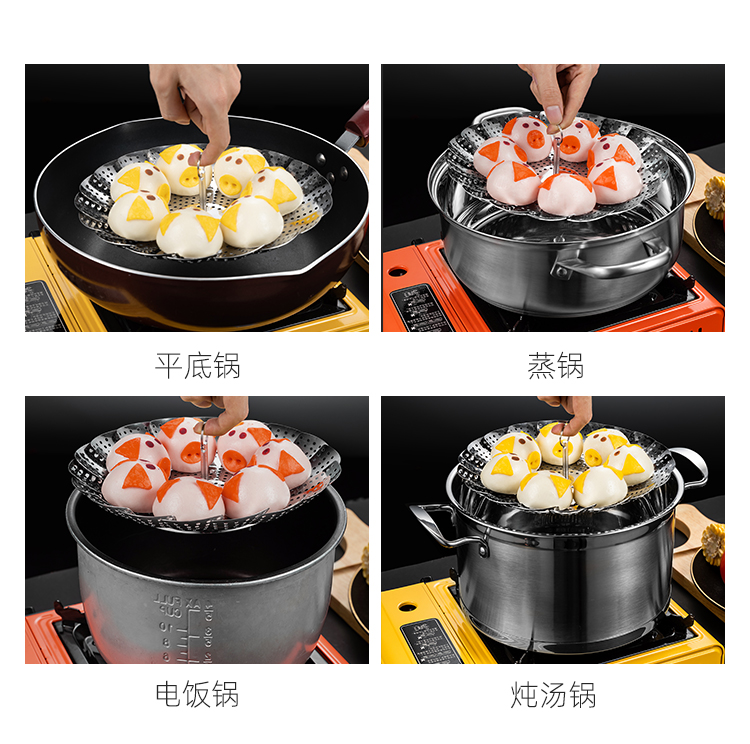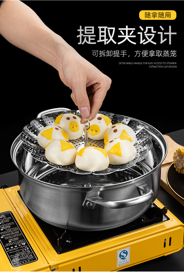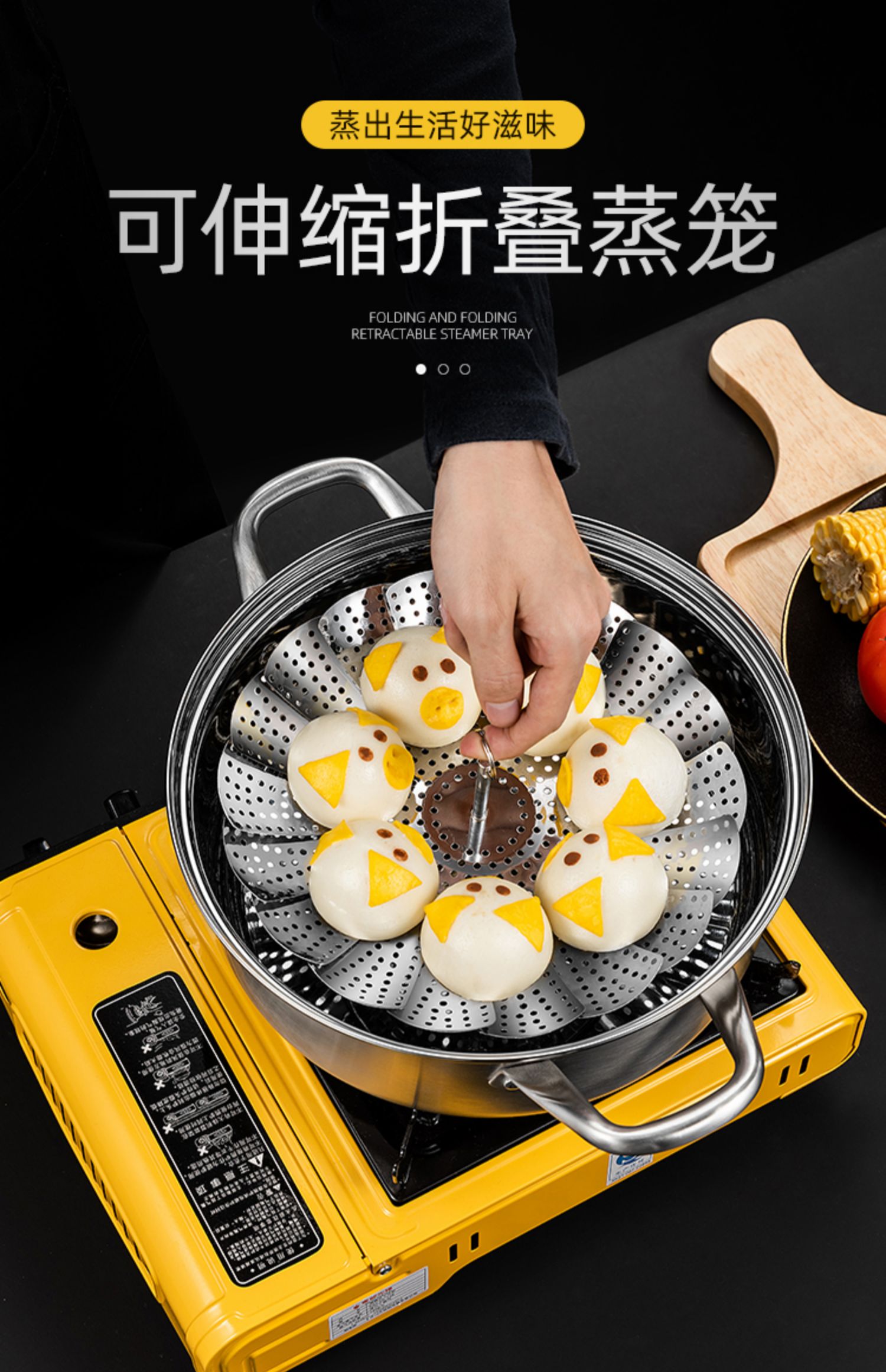 【送防烫提盘器】创新可折叠设计,小巧易收纳,适用范围更广,蒸馒头,蒸菜,蒸饭,蒸鱼统统搞定!【赠运费险】