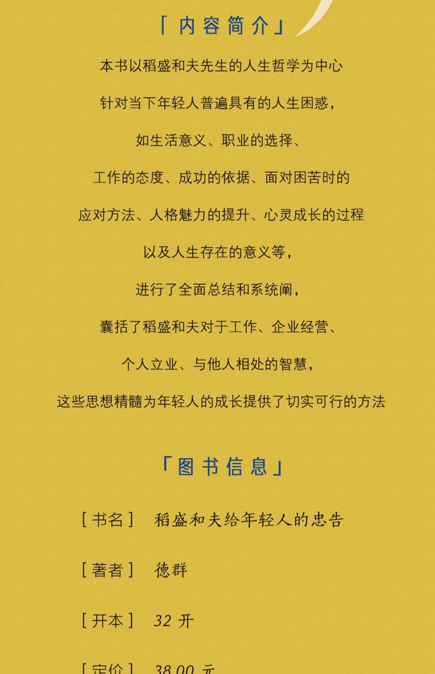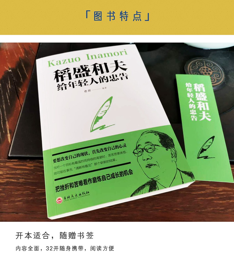抖音爆款,稻盛和夫给年轻人的忠告,本书囊括了稻盛和夫对于工作、企业经营、个人立业、与他人相处的智慧,为年轻人的成长提供了切实可行的方法.,活动9.8元秒杀,好书精选。【赠精美书签】