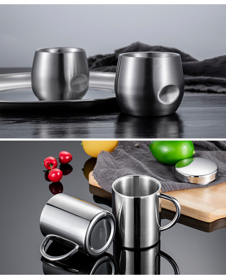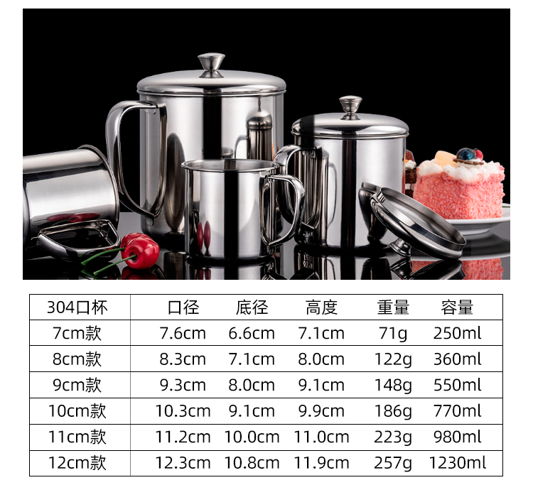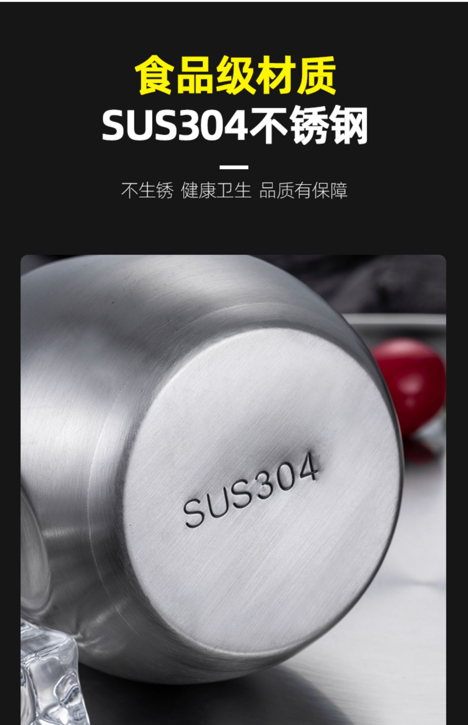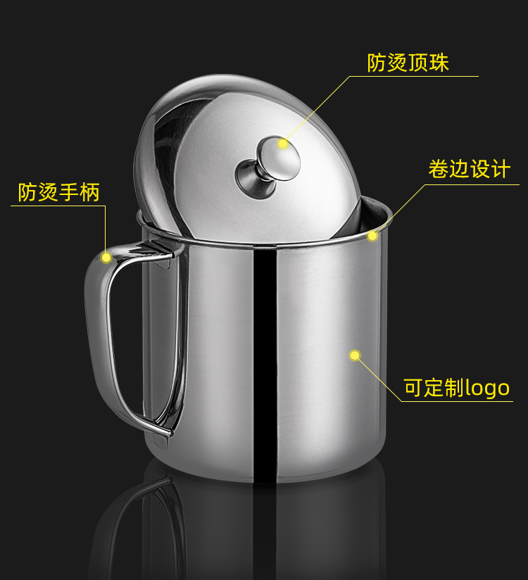 【婆媳当家】食品级304不锈钢口杯,厚实耐摔,不易变形,不生锈,健康卫生。防烫手柄、顶珠,手感舒适。镜面抛光,易清洗。卷边设计,不伤嘴。幼儿园、学生、大人都可以用。