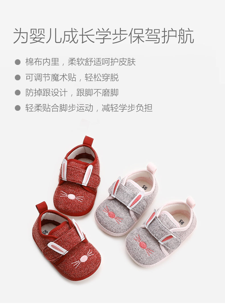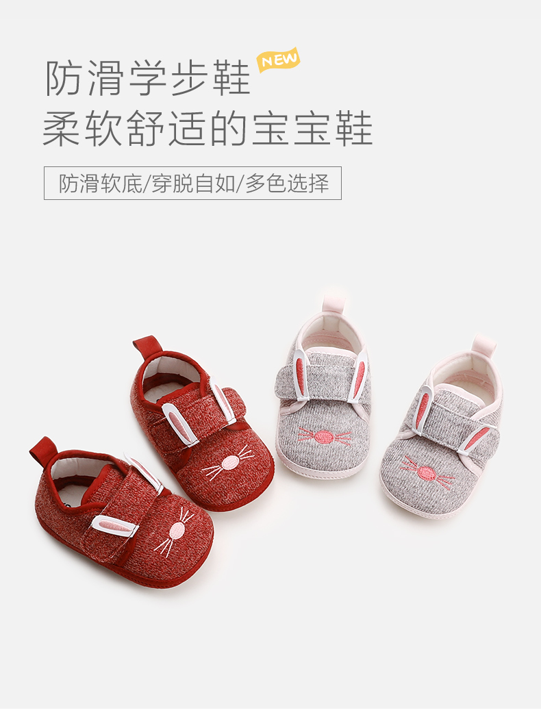 防滑学步鞋,棉布内里柔软舒适的宝宝鞋,防滑软底、可调节魔术贴穿脱自如、防掉根设计,跟脚不磨脚,多色选择。