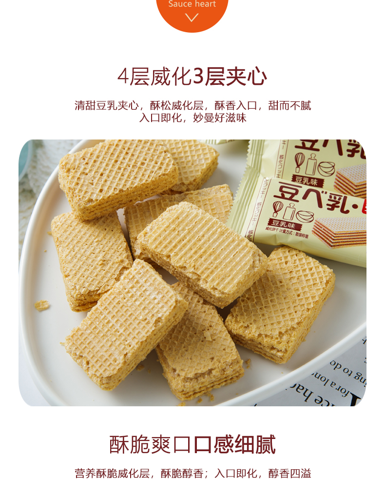 【拍四件13.8元】新品推出,单独包装!纯正豆奶香味,入口即化,新西兰进口奶源,精挑细选优质大豆,4层威化3层夹心,甜而不腻,酥脆醇香,办公宅家优选!一定要拍三件哦。
