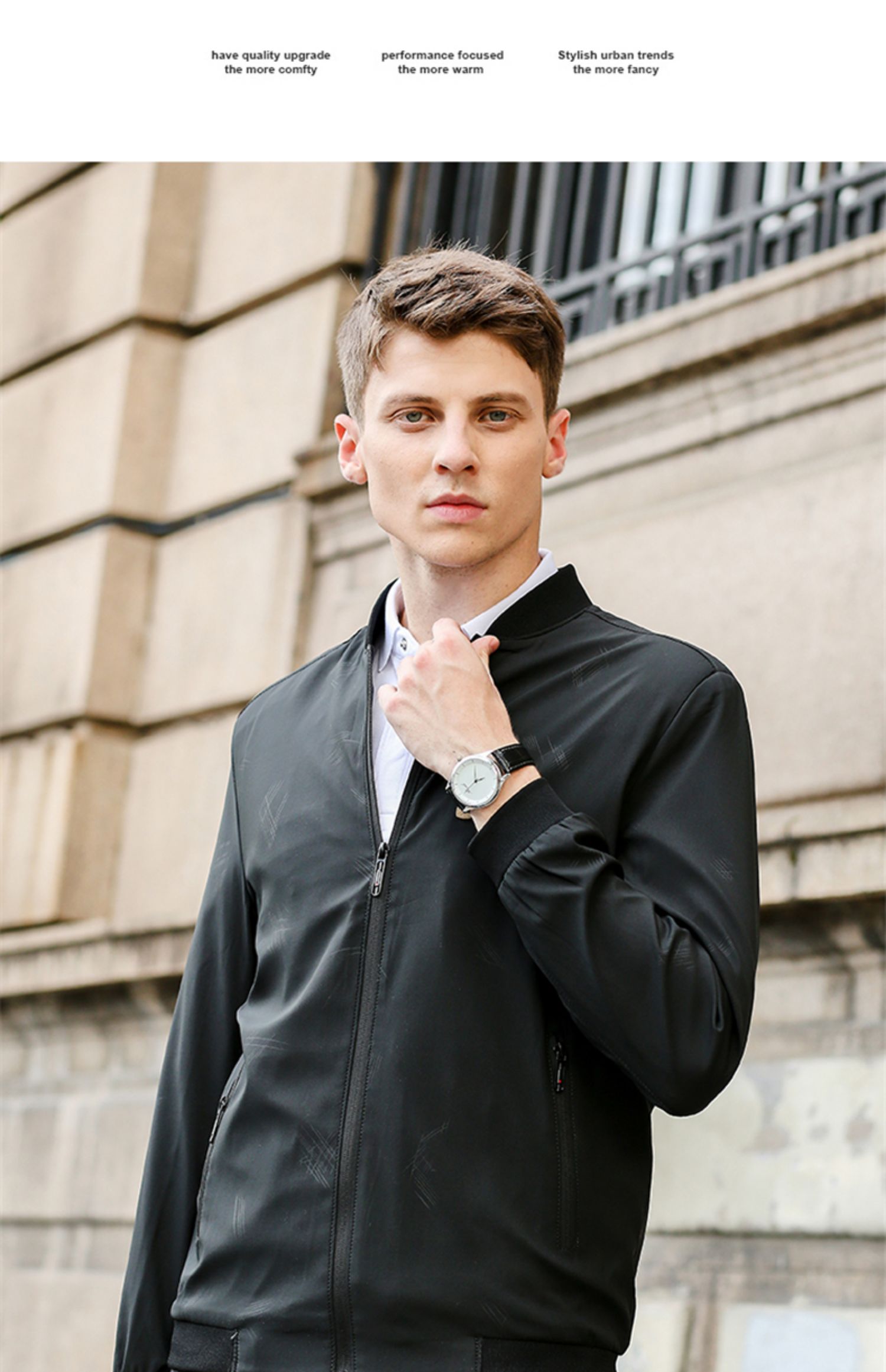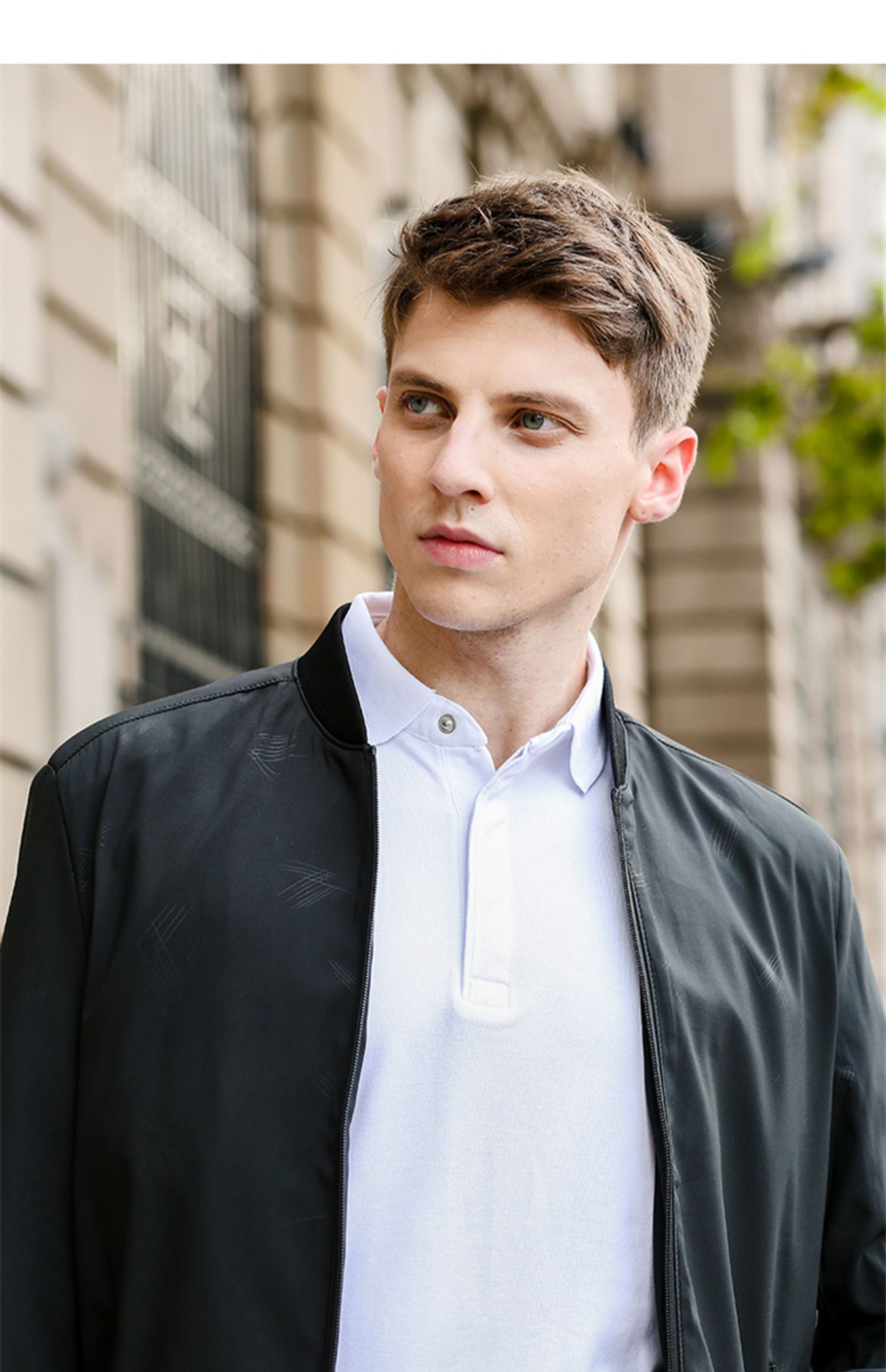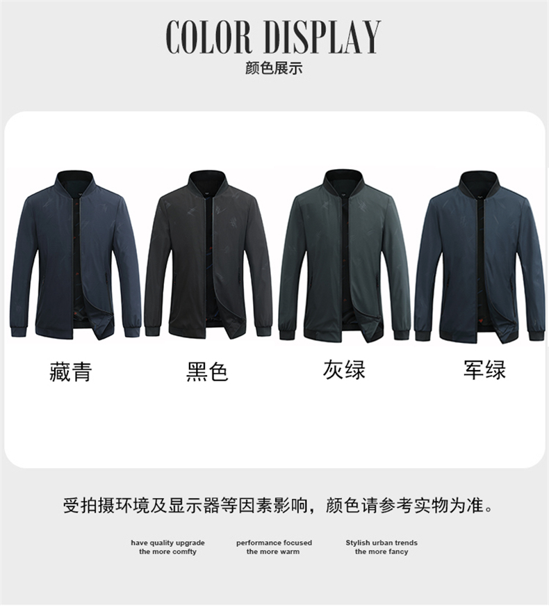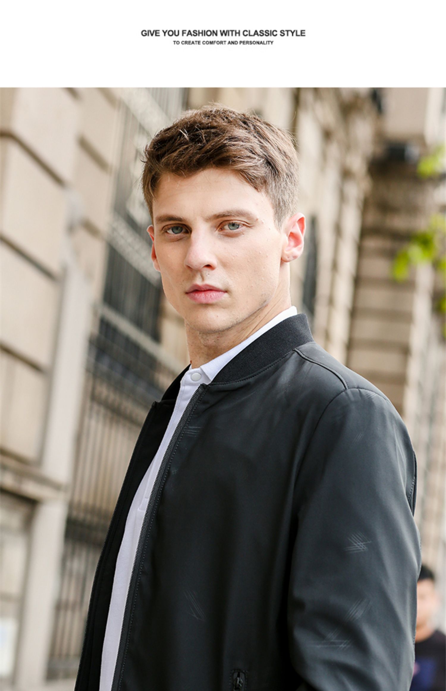 精选优质面料,柔软舒适亲肤,不褪色不起球,不变形,防风透气,耐穿耐磨,韩版夹克上身超有型,撩妹于无形!