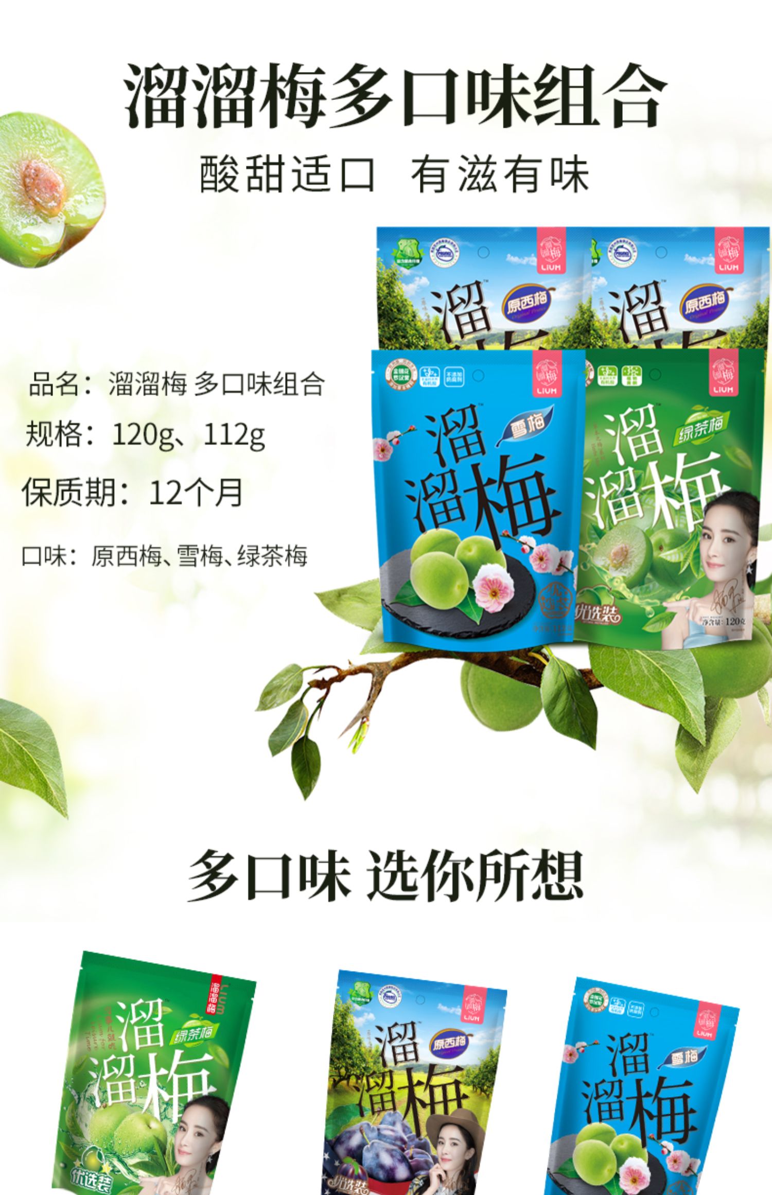 【溜溜梅四袋多口味组合】杨幂代言溜溜梅,超市一袋12.9元!我们四袋24.9元,超划算!含有多种天然有机酸,好吃又健康,美味挡不住!优选品质鲜果,口感Q弹,味道酸甜好滋味,没事儿来一颗,悠享美好时光