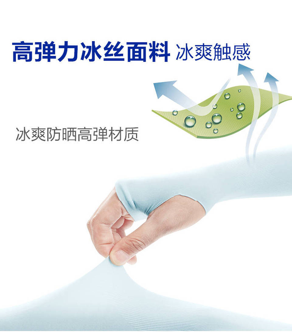 贴合手臂更防滑,专为夏日防晒,多部位防晒,防滑不脱落,冰感凉爽,抗紫外线、吸湿排汗强,穿上这个防晒冰袖,肌肤上的防晒问题就交给它了!