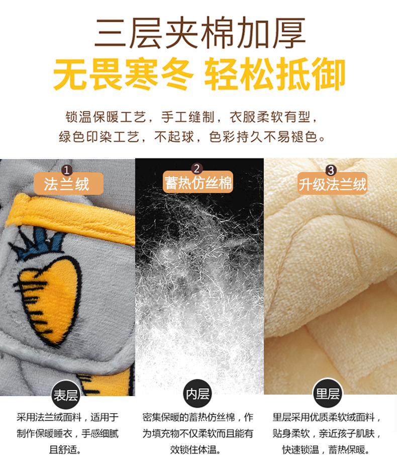 反季促销,一整套34.8元起!三层夹棉加厚,零下十度都没问题!柔软法兰绒面料,亲肤保暖,给孩子温暖呵护!