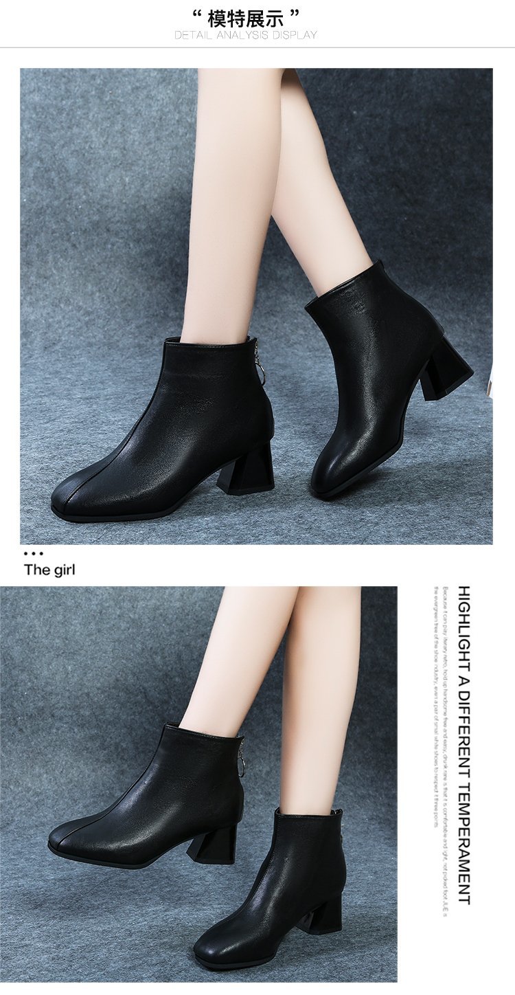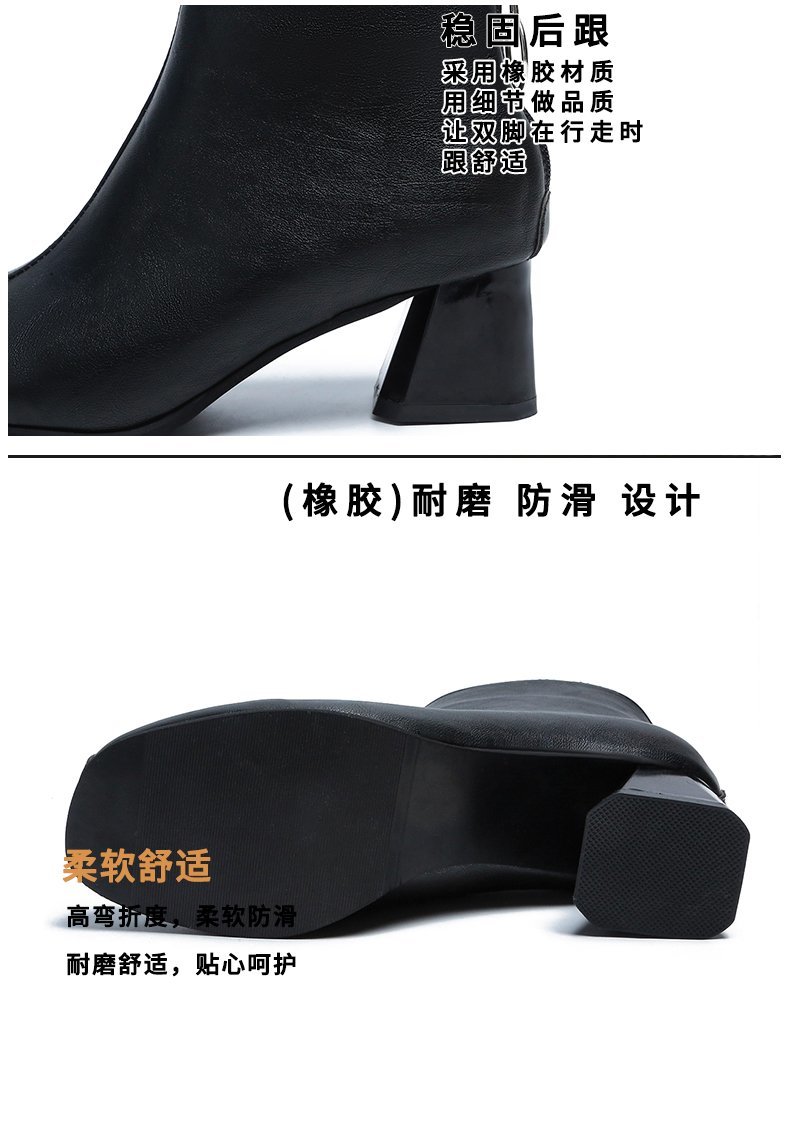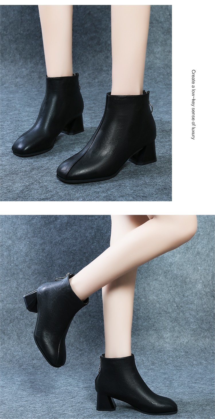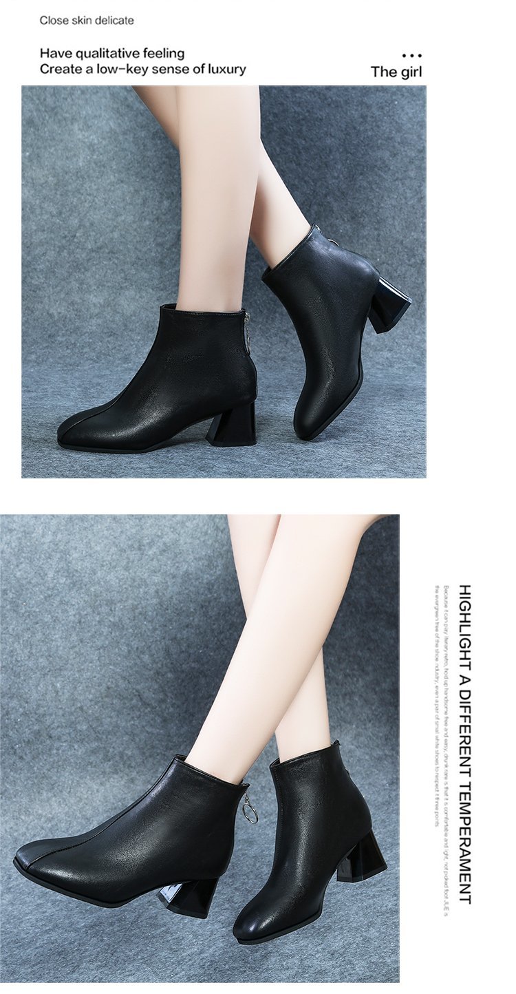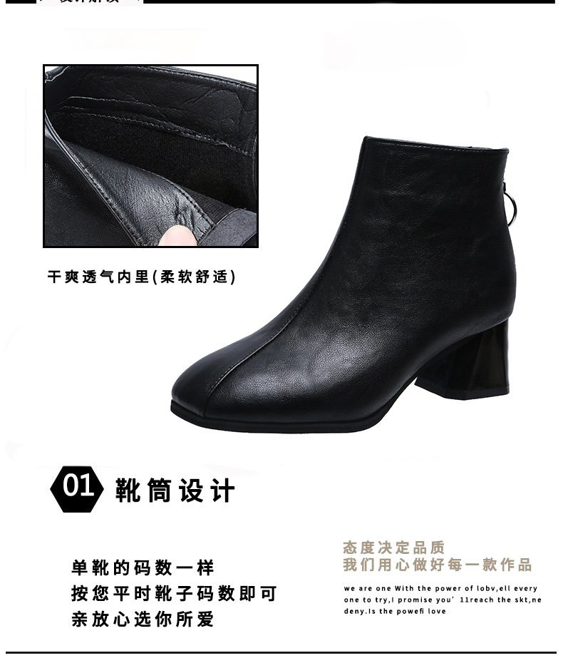 粗跟短靴女2020年新款秋季真软皮女鞋