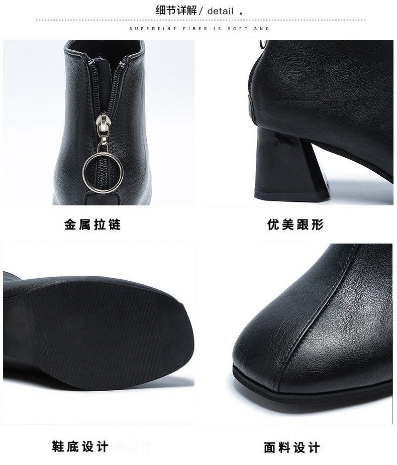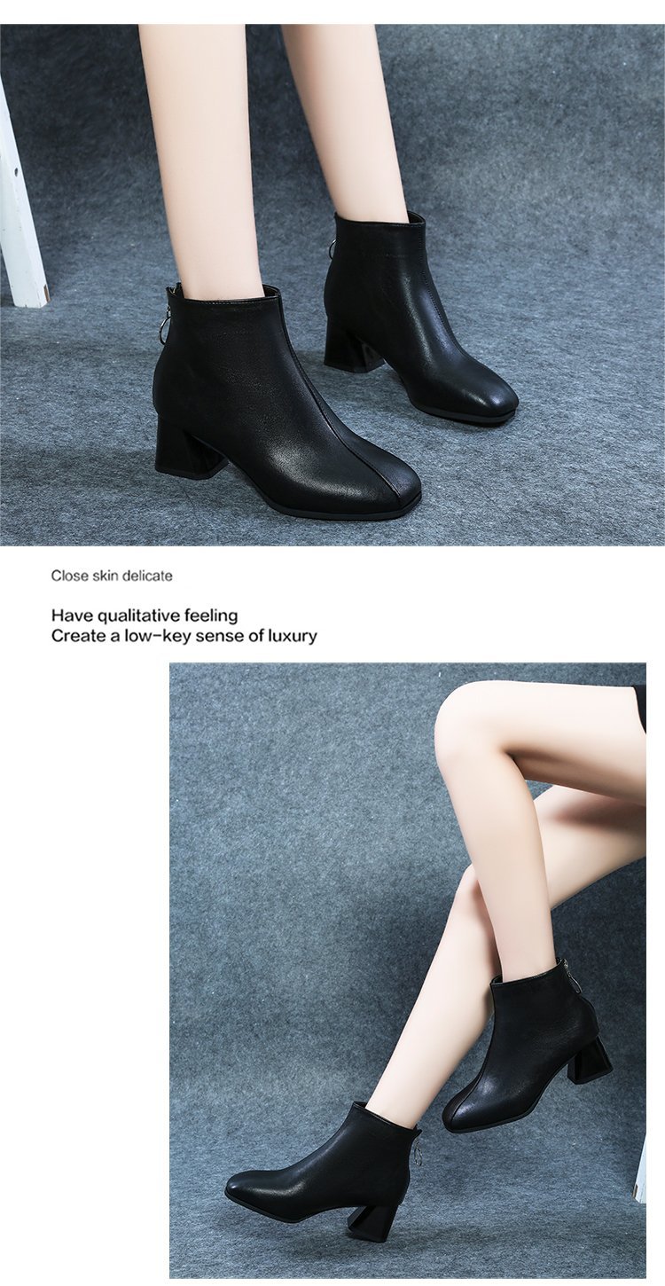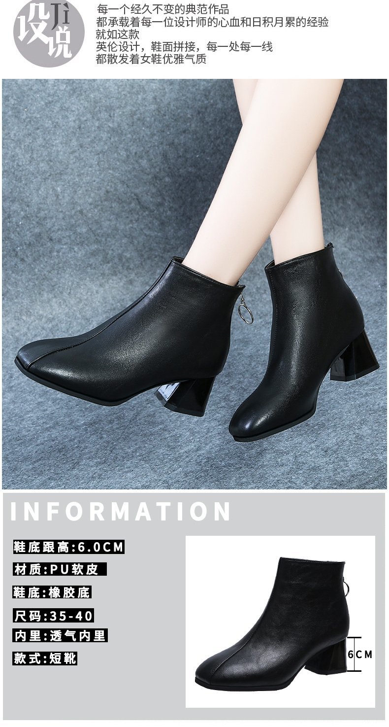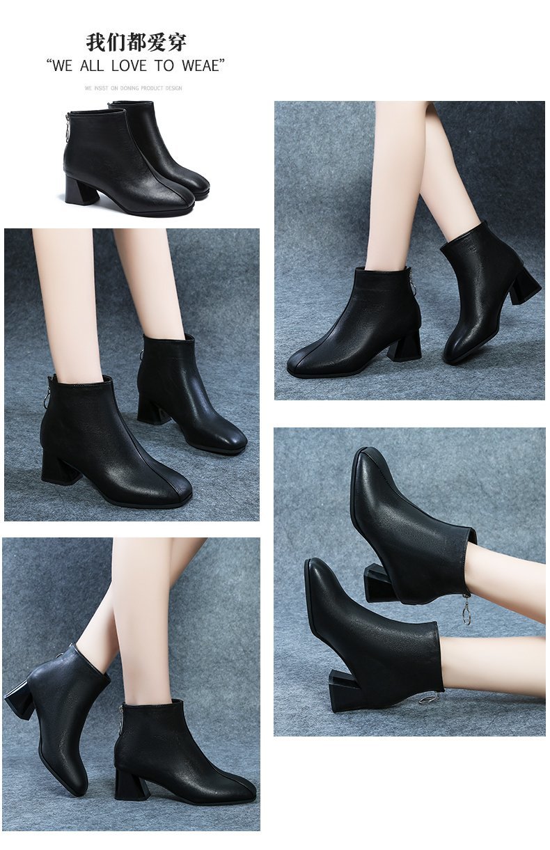 粗跟短靴女2020年新款秋季真软皮女鞋