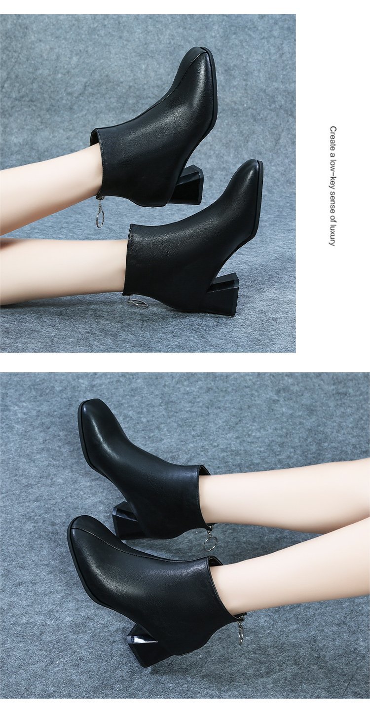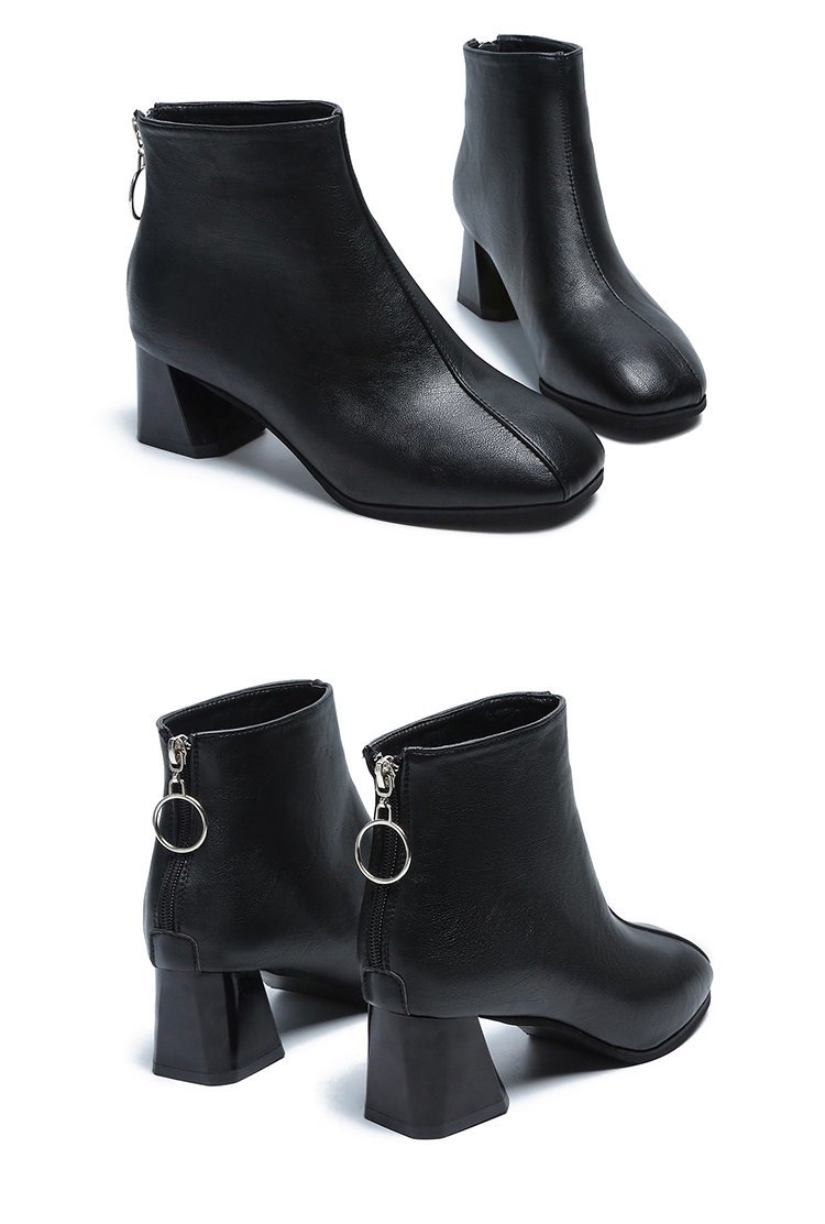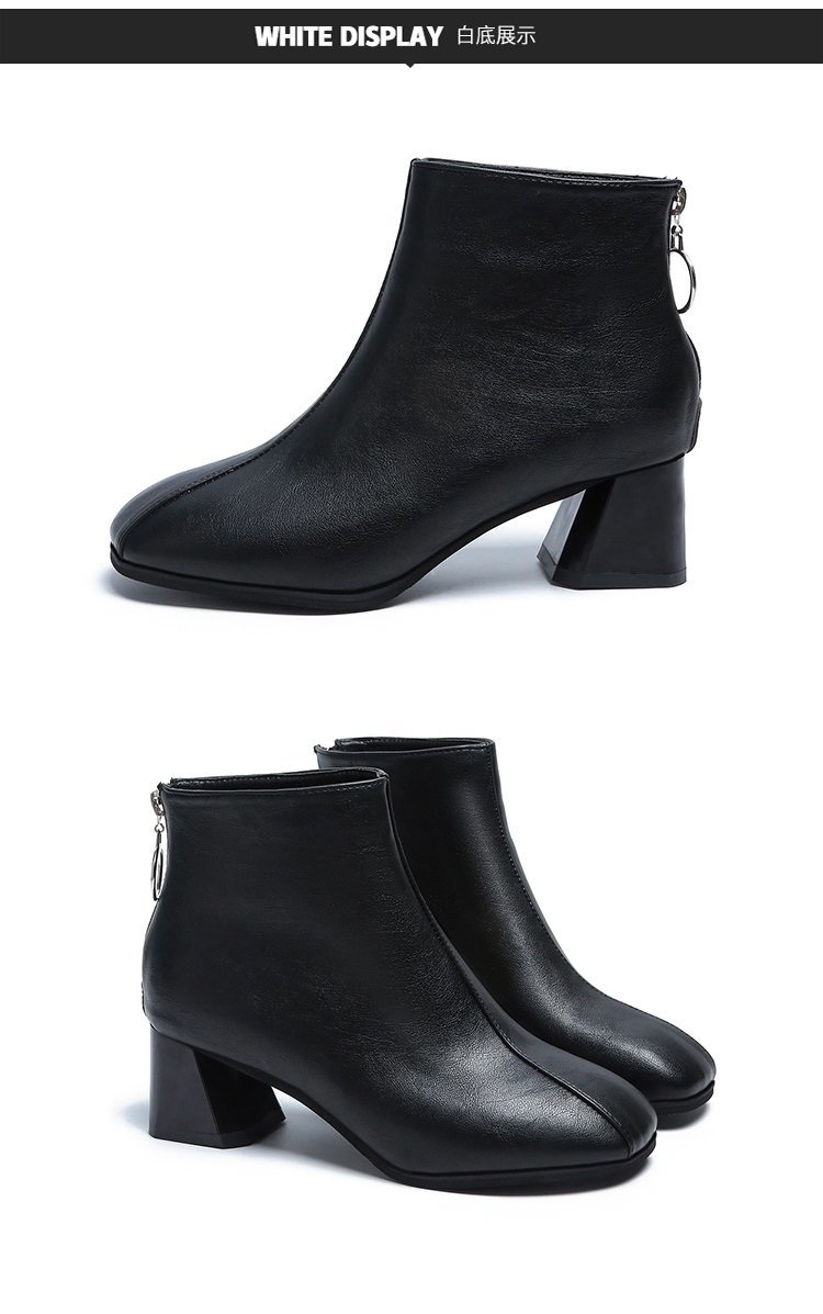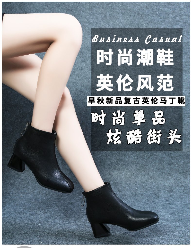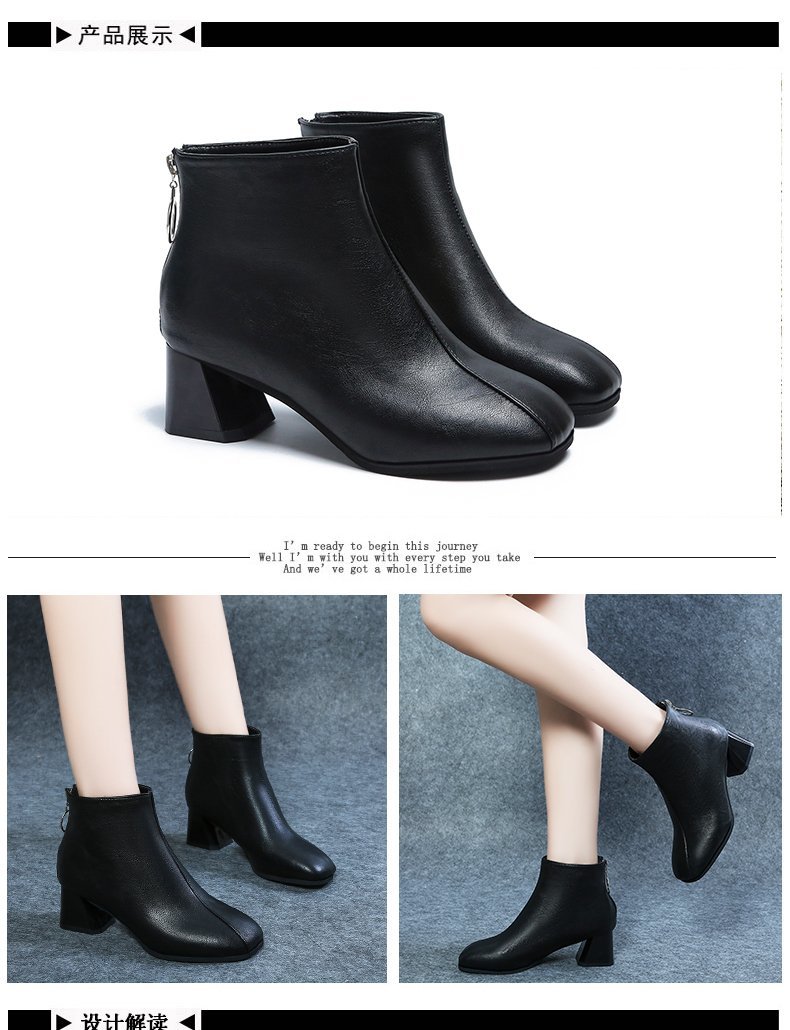 粗跟短靴女2020年新款秋季真软皮女鞋