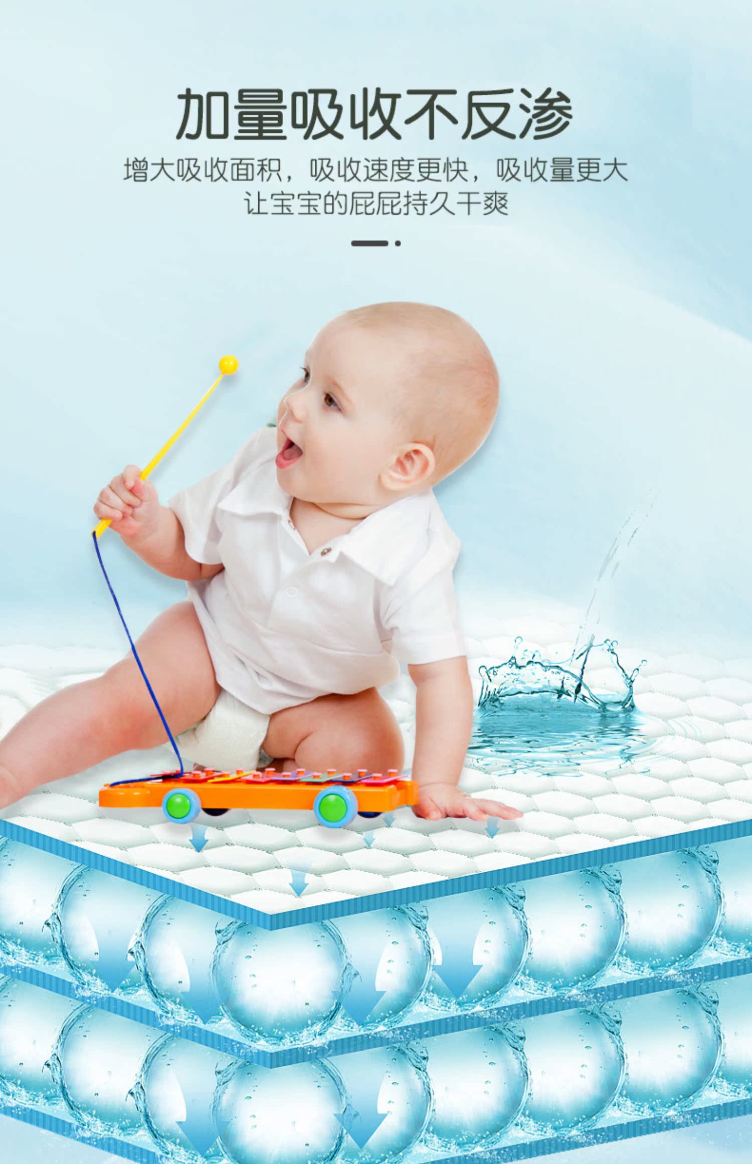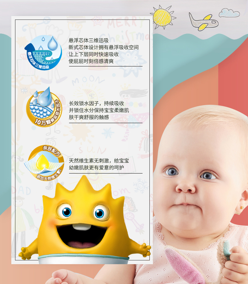 【12片仅需15.9,一片一块钱,超划算】超薄透气,柔软亲肤面层,强力高效吸水分子,3秒吸干,让宝宝保持干爽清洁,弹力腰身可调节,不起坨不断层。