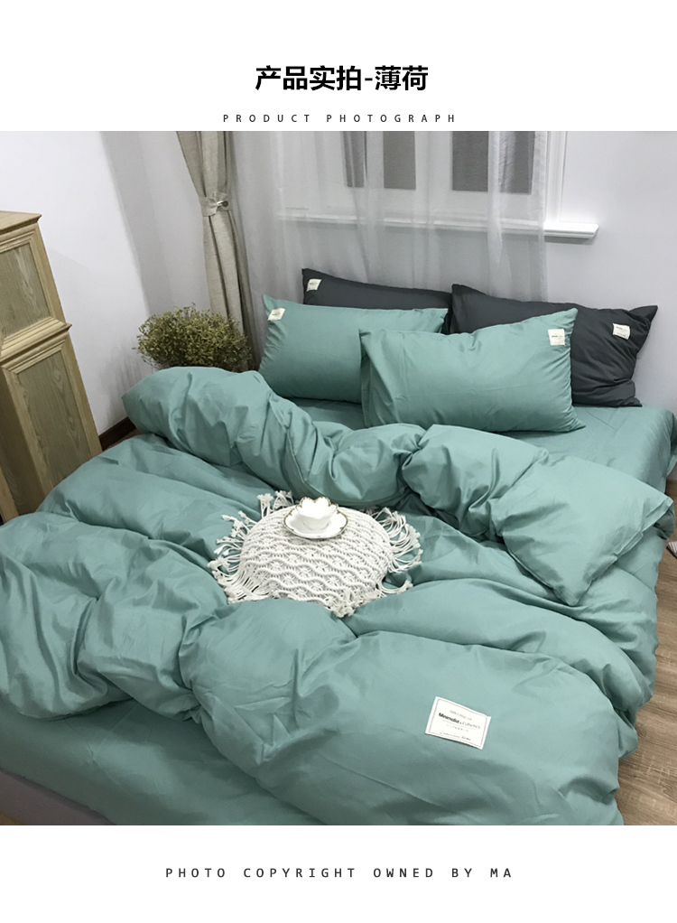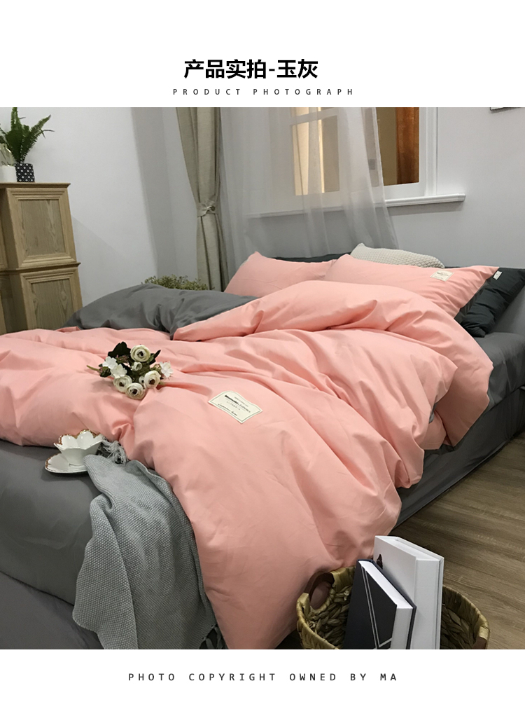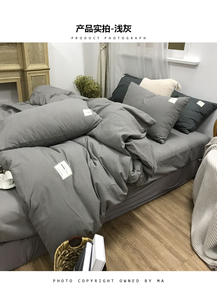 ins简约纯色四件套,网红北欧床单,被套素色,床笠床上,精梳棉潮牌双人【赠送运费险】