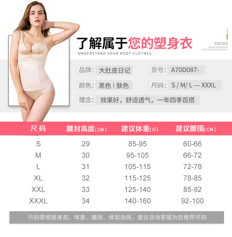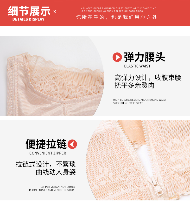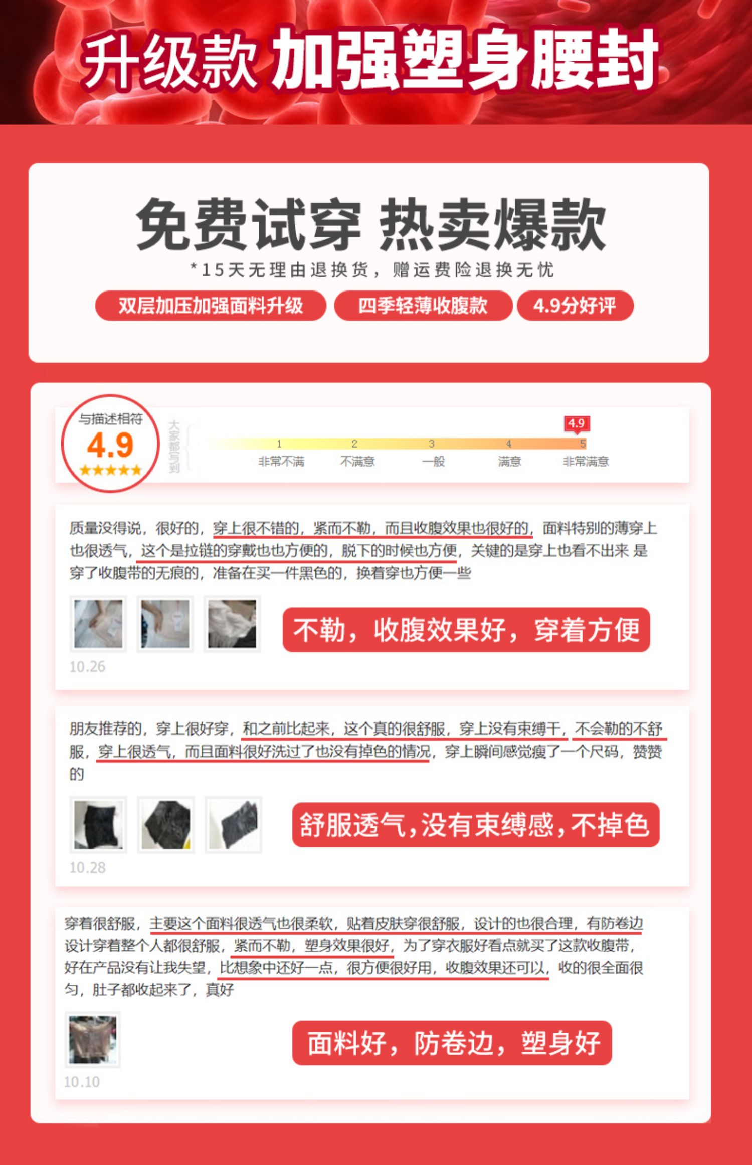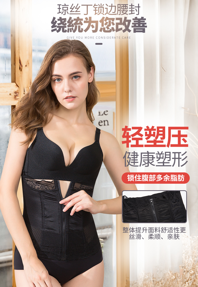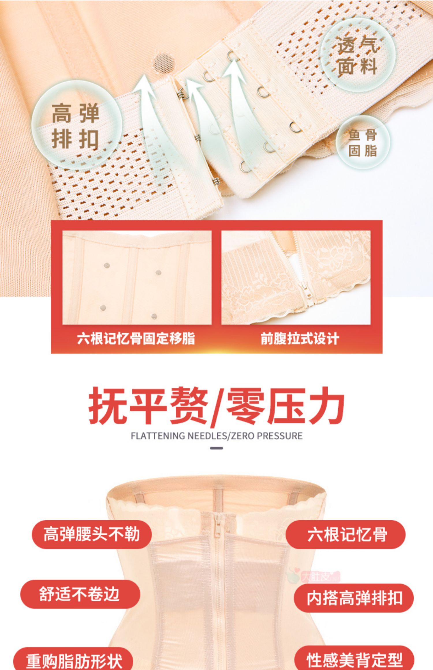 【前腹拉链式,穿脱方便】6根定型记忆钢骨,采用弹性面料,收腹束腰,锁定曲线不卷边,轻薄透气四季通用!收腹收胃,暖宫束腰,跟赘肉说拜拜~