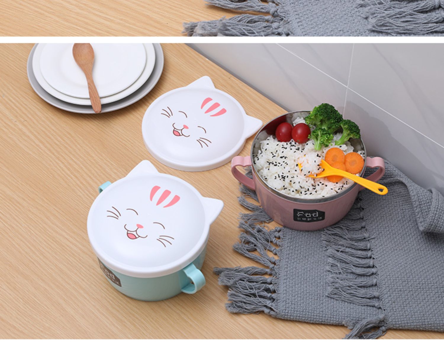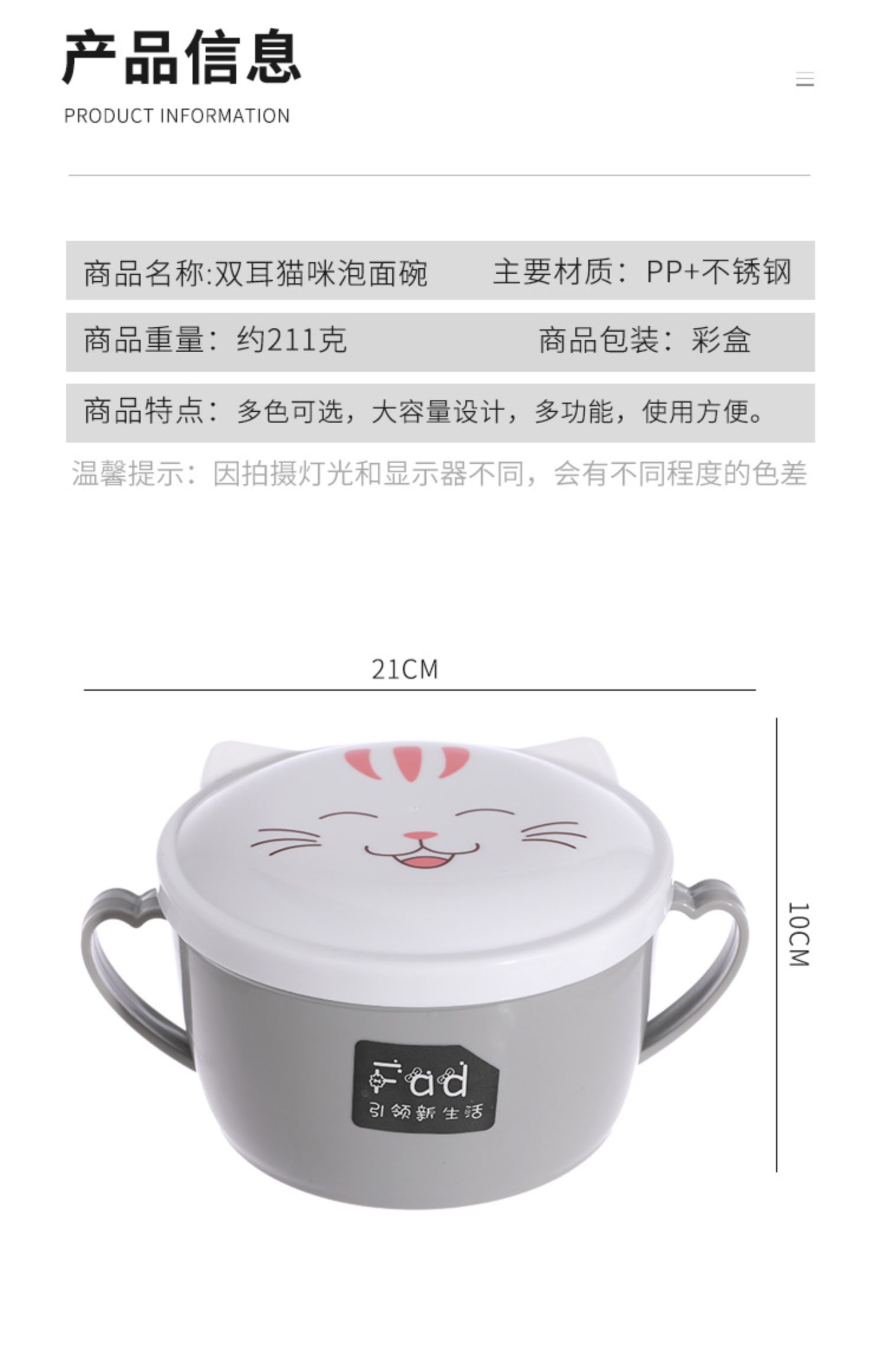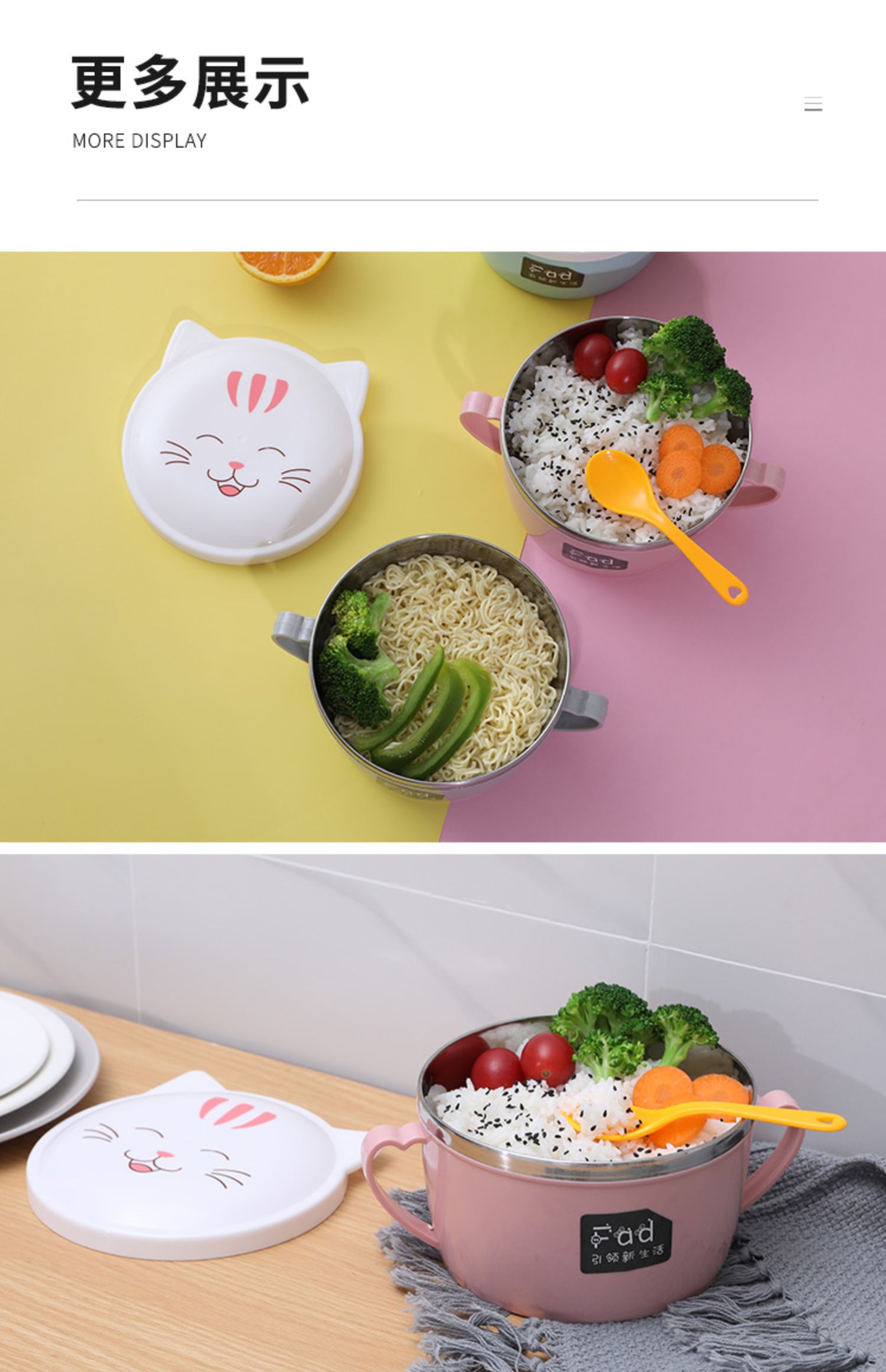 颜值超高!让你吃碗泡面都超精致,有仪式感!也便当盒带饭,优质不锈钢材质+环保PP外壳,双重保护,高效保温又免烫!加厚硅胶密封圈,锁住新鲜不漏汤,美味不流失哟~
