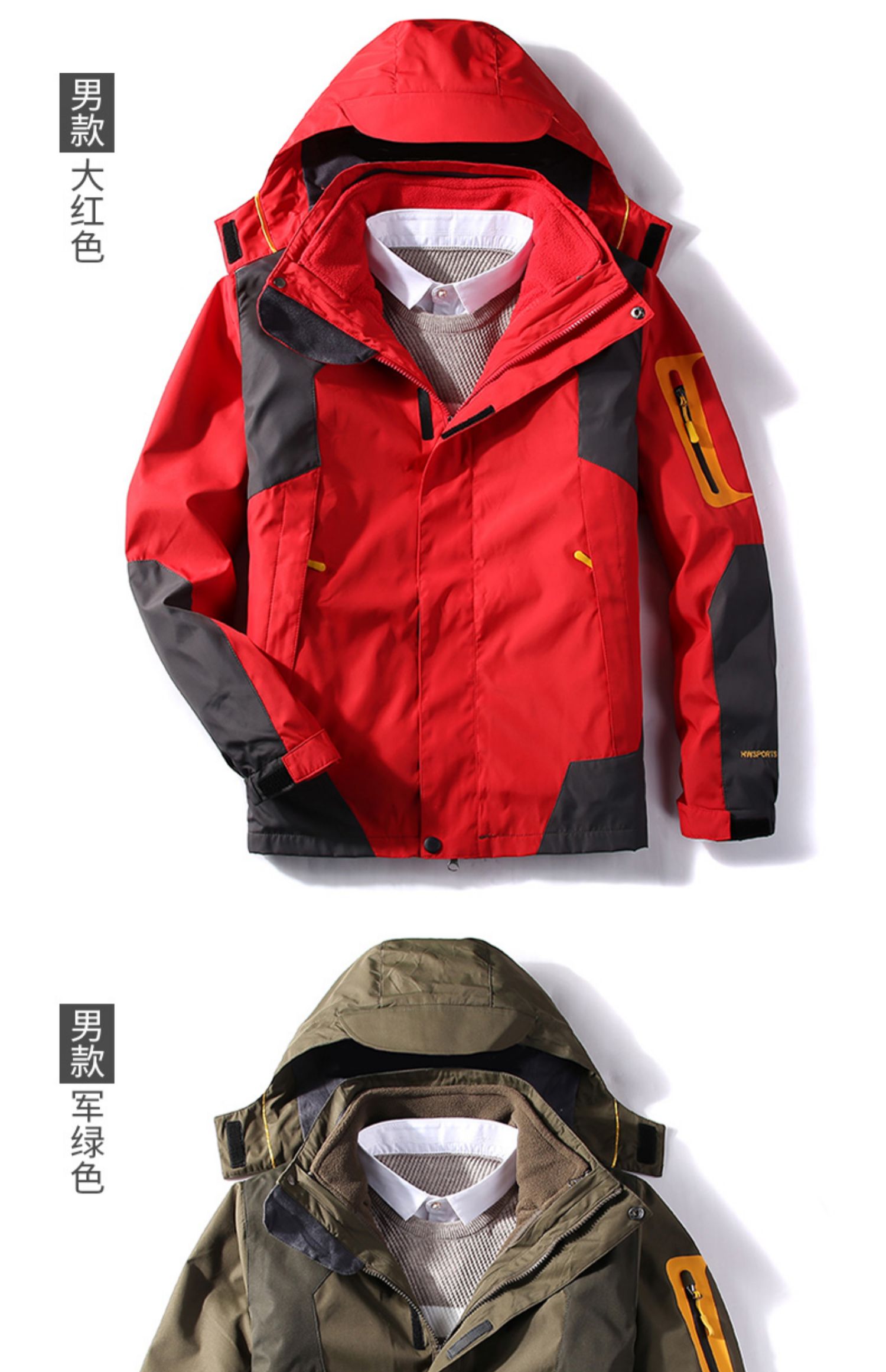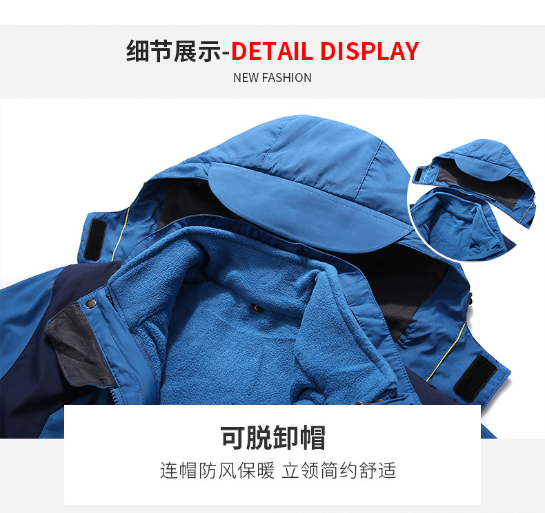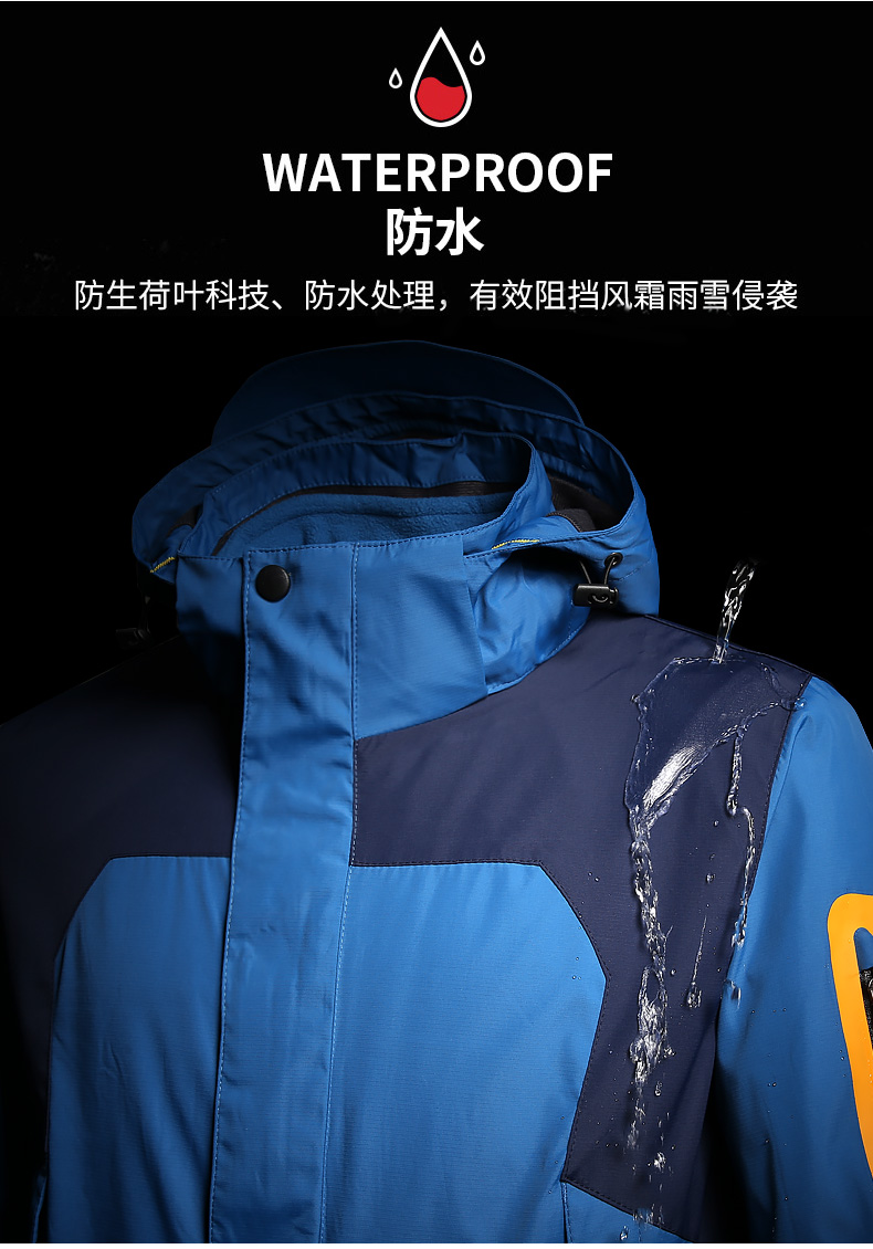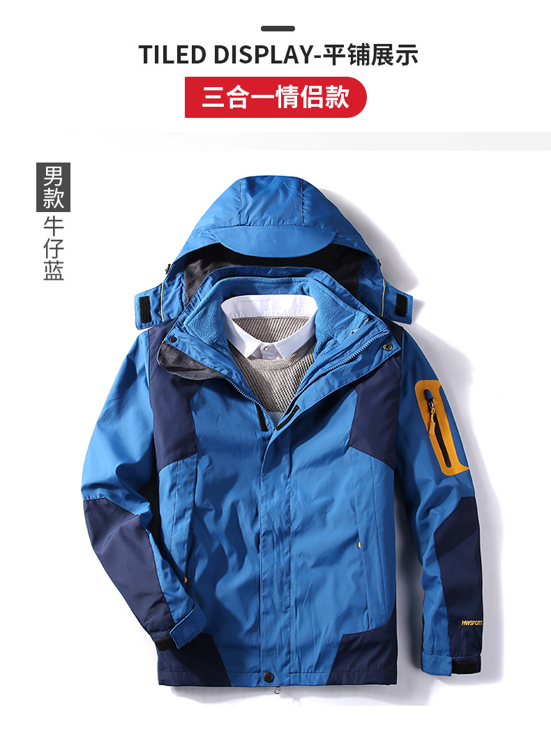 三合一冲锋衣,可拆卸单穿组合装,多变魅力个性释放,防水面料透气排湿,多款颜色可以选择。