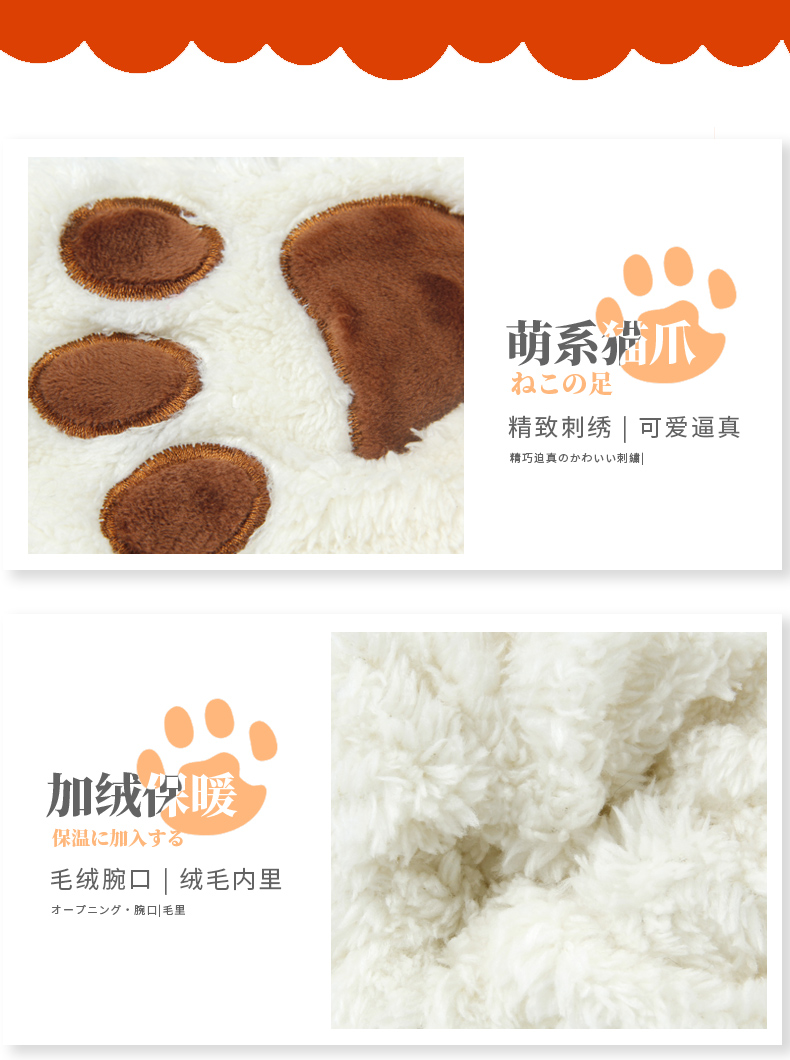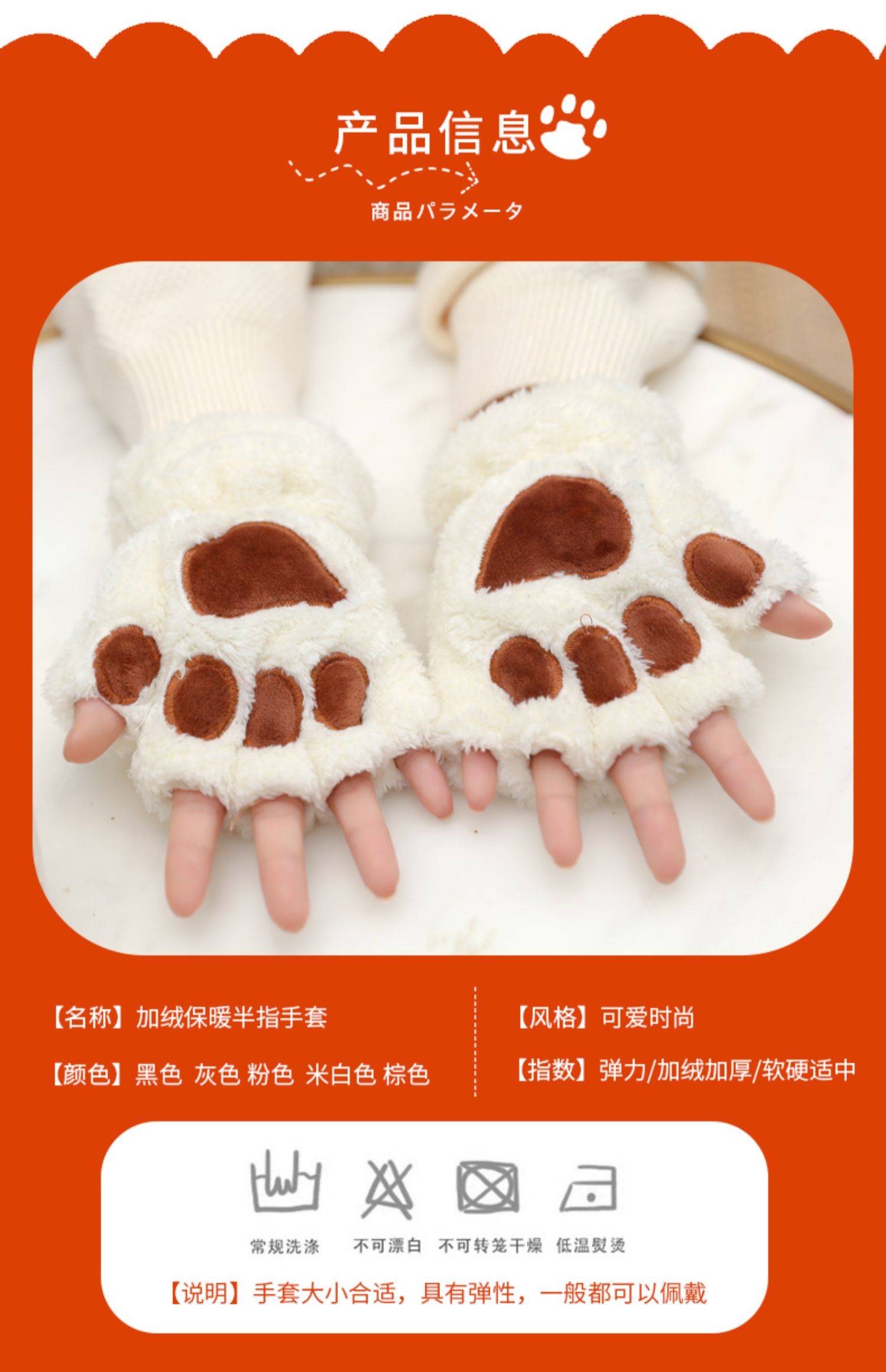 柔软绒毛,保暖舒适,可爱猫爪造型,俏皮时尚,多色可选,随心搭配,萌趣少女心~