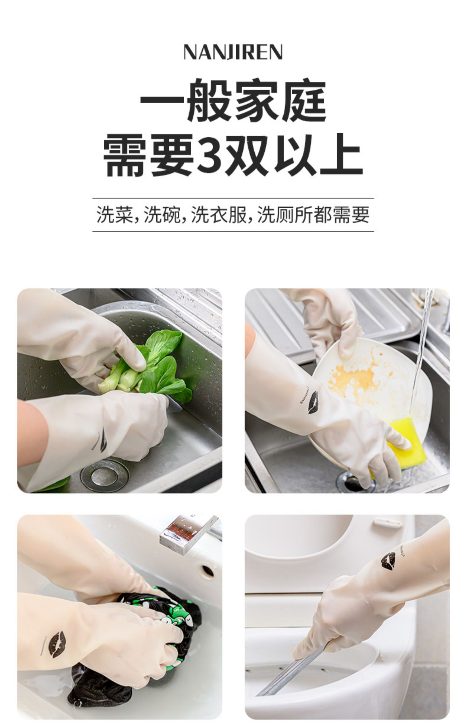 南极人手套采用先进的浸胶工艺,耐酸耐碱,不易刺穿,任性强,密集防滑颗粒不打滑,碗碟清洗、水果蔬菜清洗、衣物清洗、卫浴清洁等多场景适用~