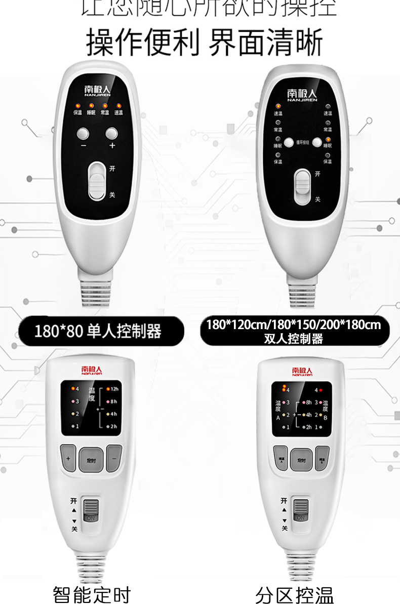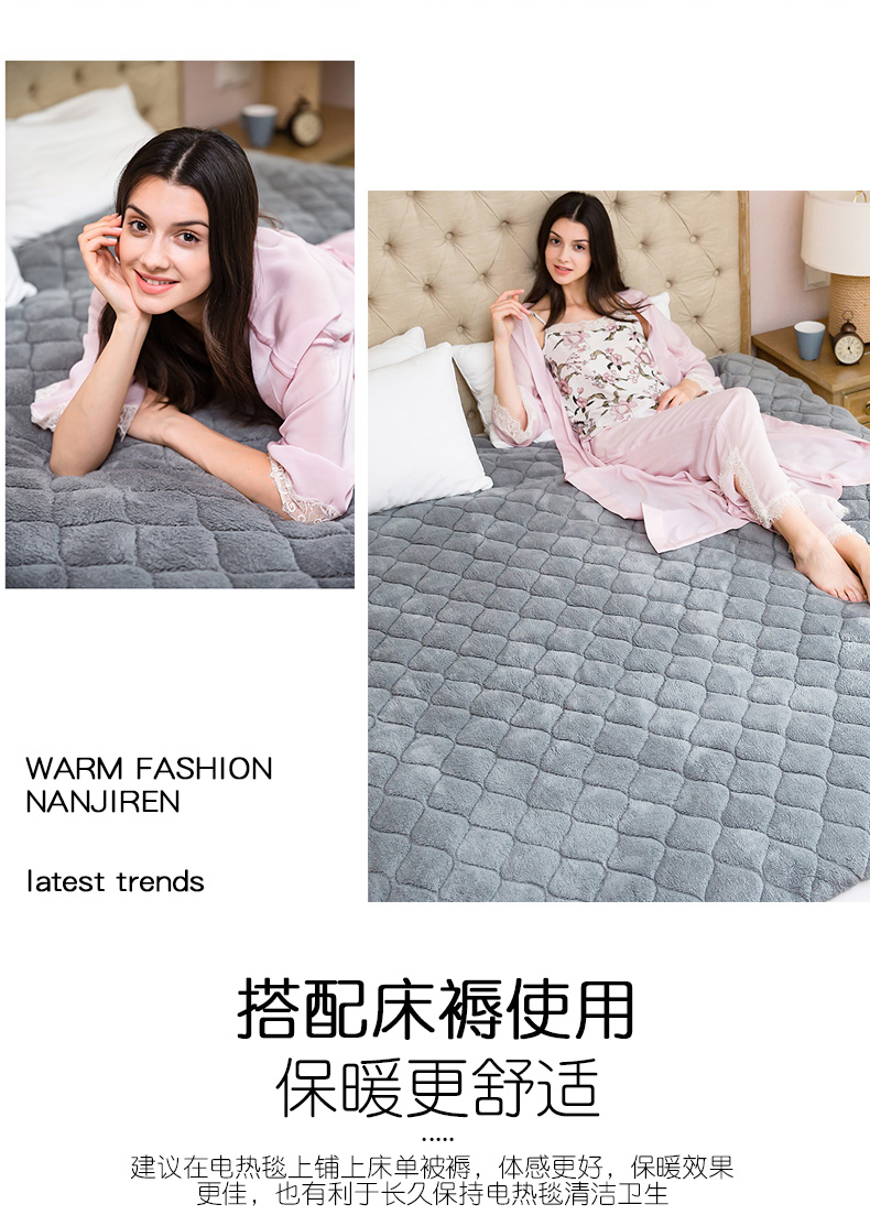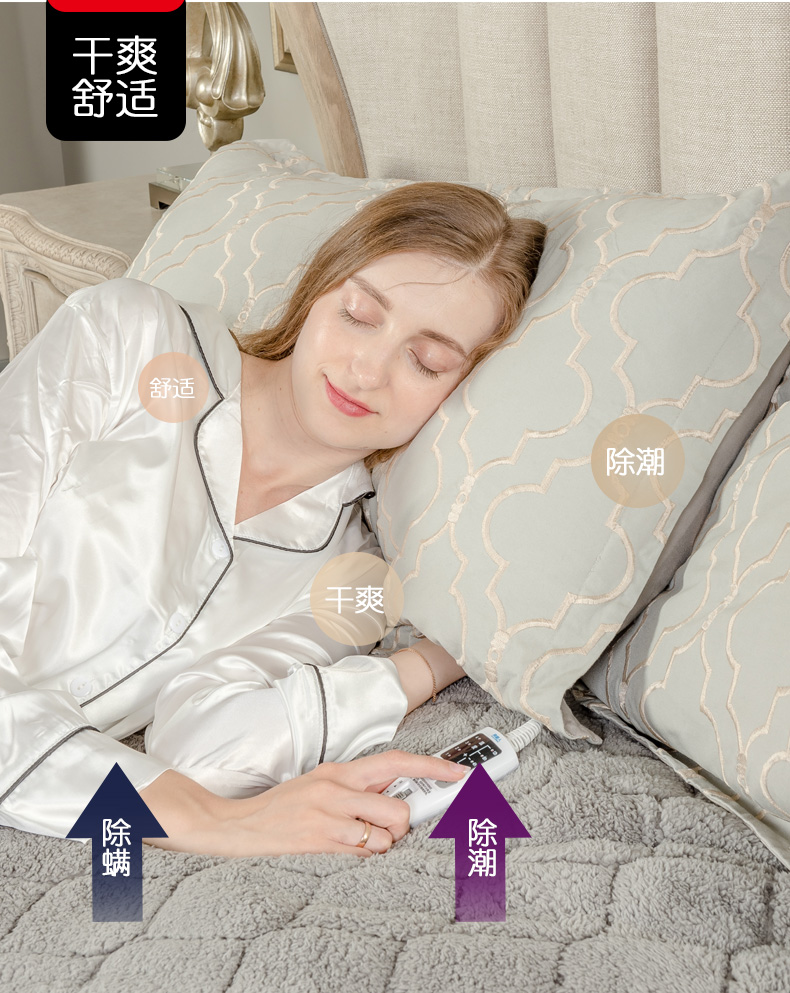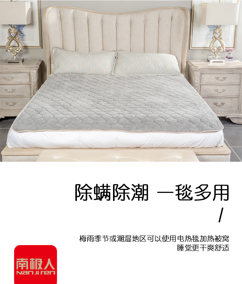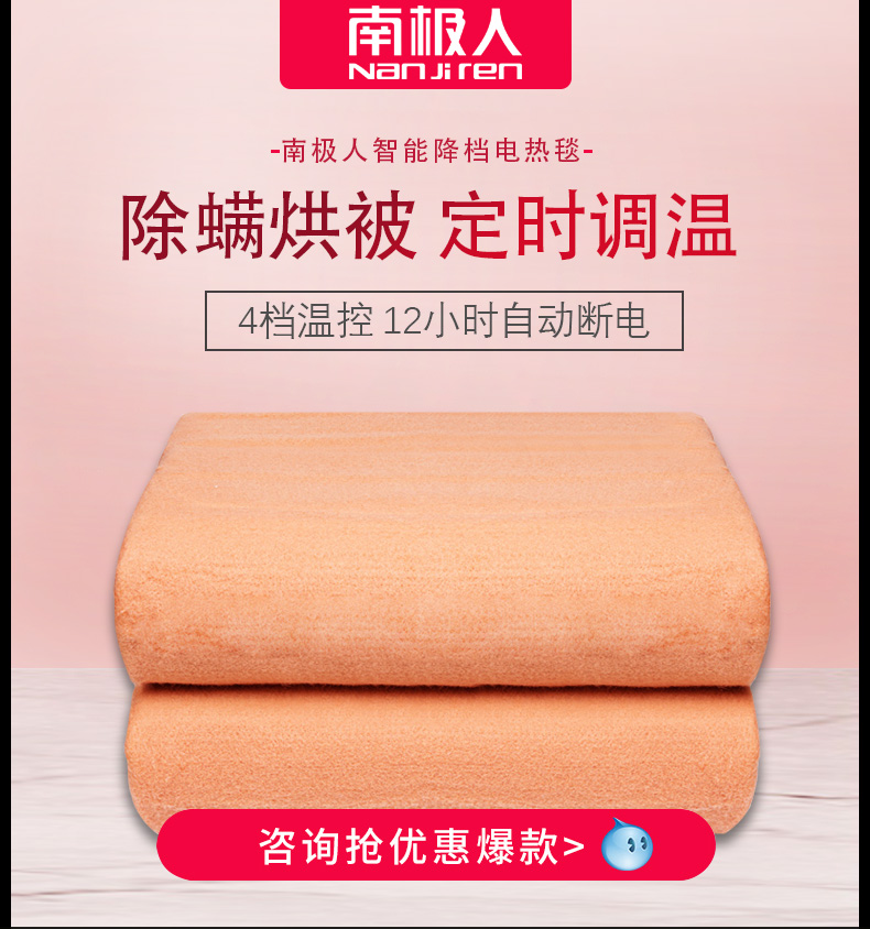 逐级降档,断电保护除螨除湿电热毯,多档调温,智能定时约温度,超低功率,学生宿舍放心用,防水阻燃面料,宝宝尿床都不怕!