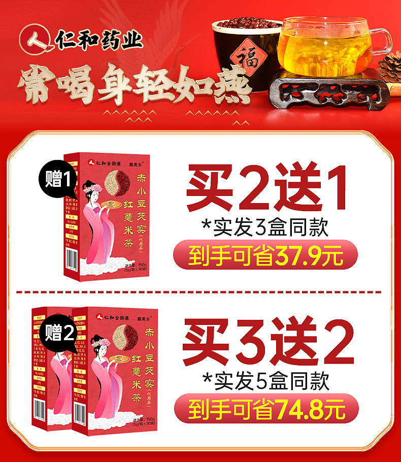 【霍思燕推荐减肥茶】仁和品牌,精选19种食材,物理粉碎,低温烘焙,不寒凉更好吸收,一盒30小包,每天当水喝,祛除湿气,喝出窈窕身姿!高档盒装送礼自喝都合适~
