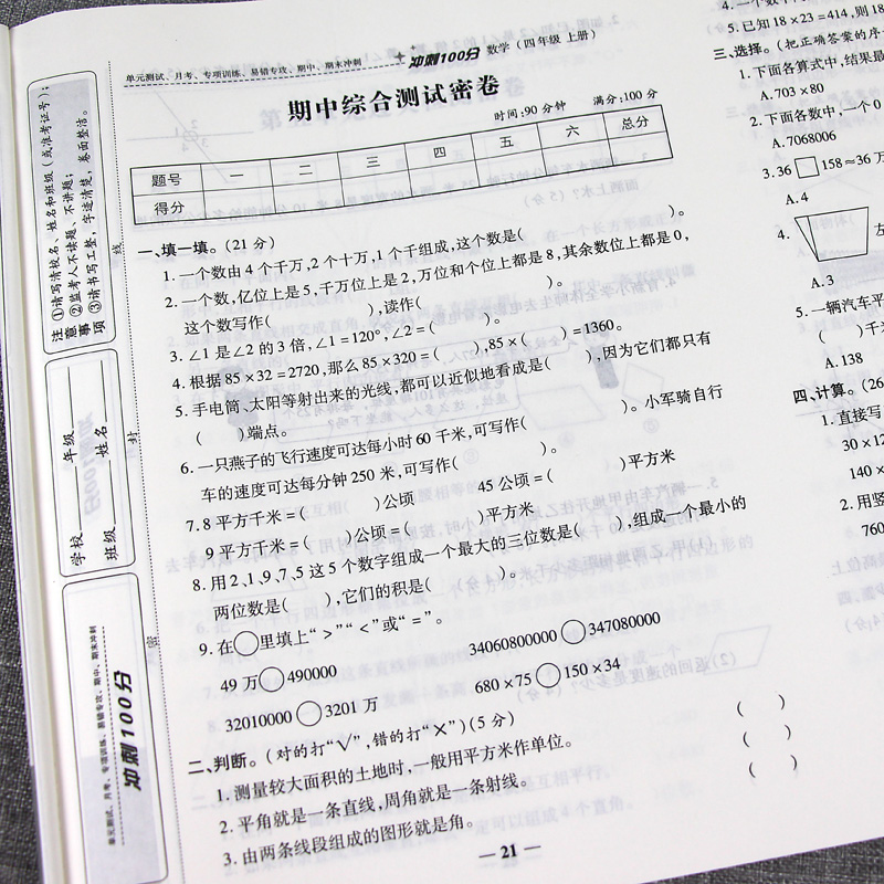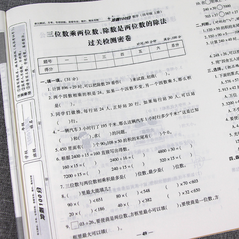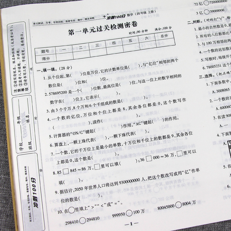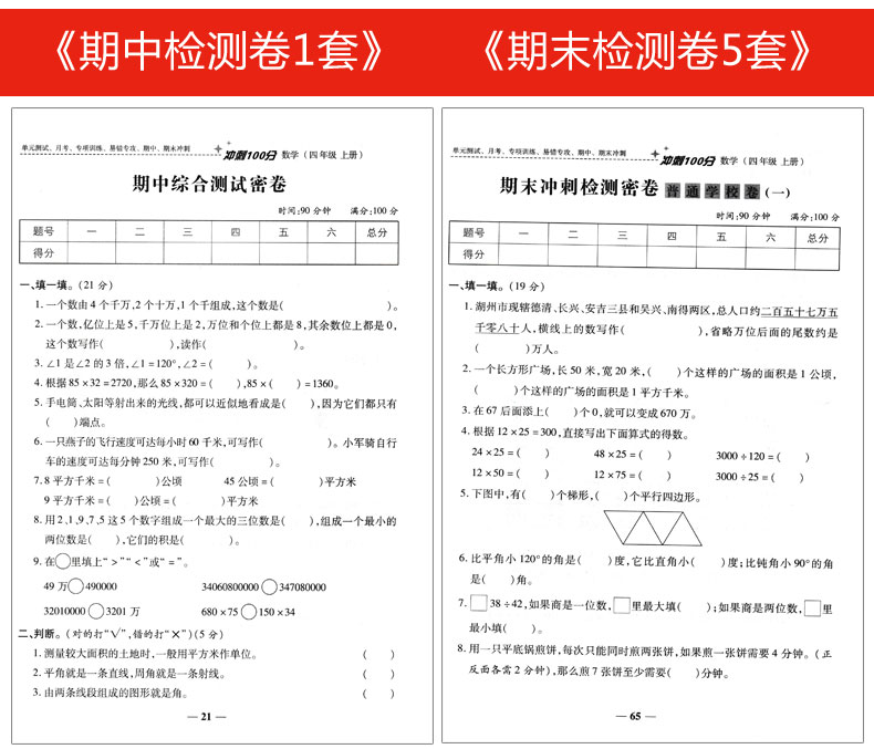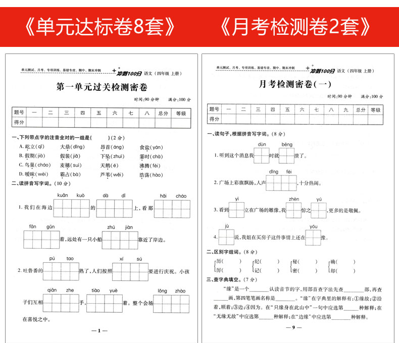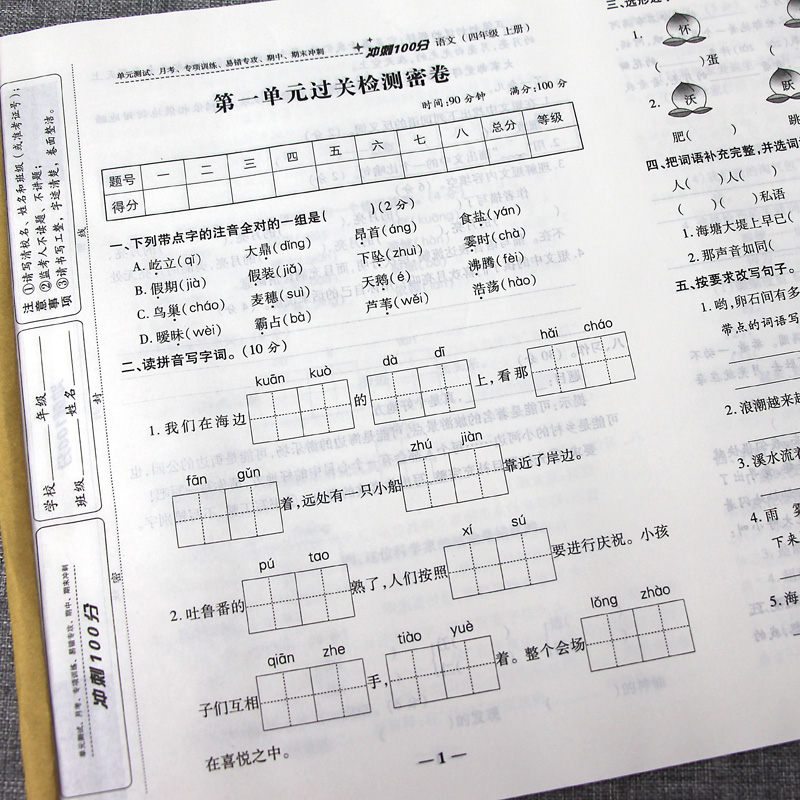 四年级上册试卷全套部编人教版