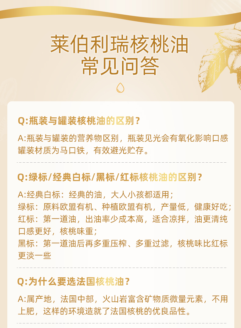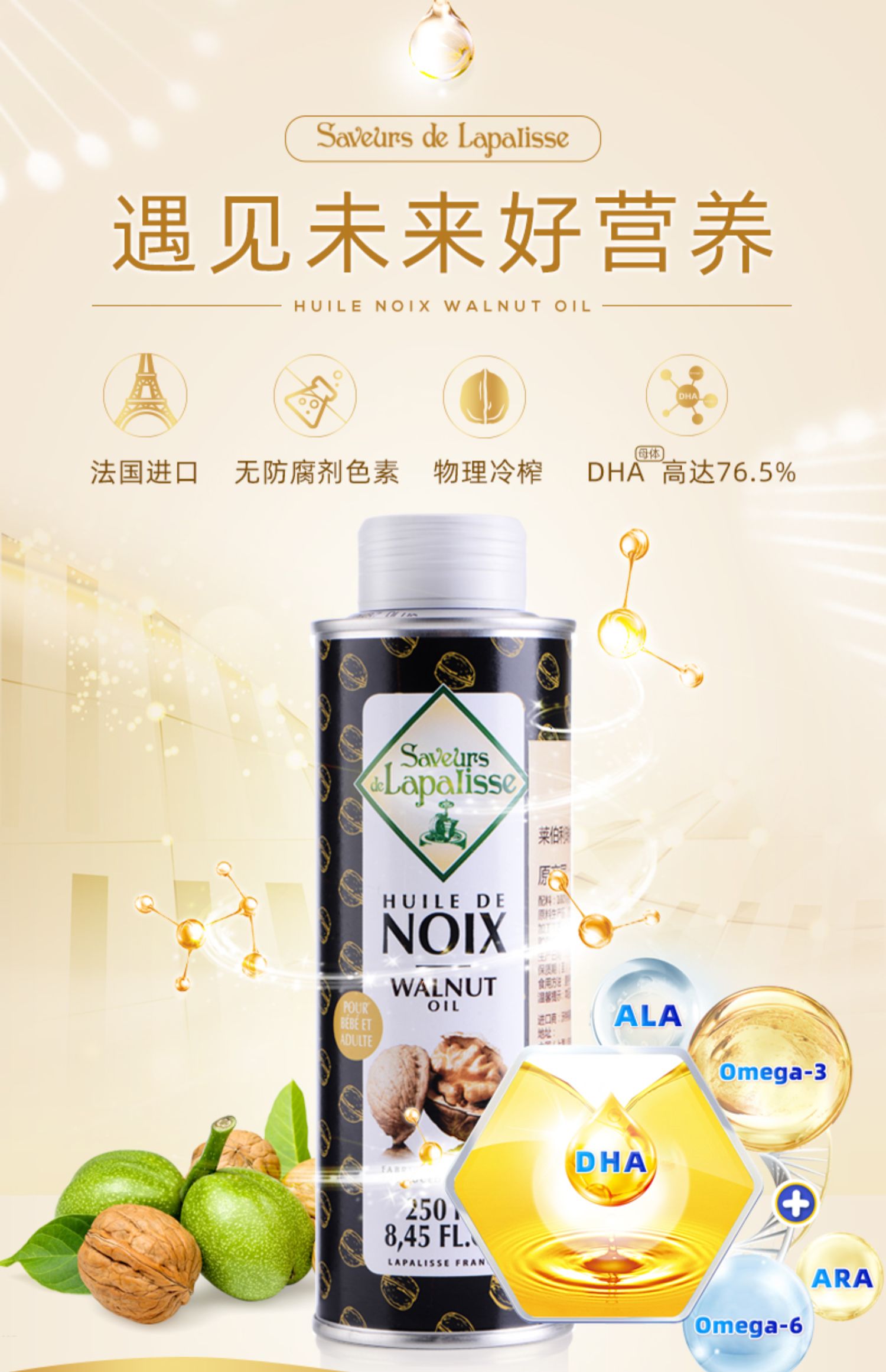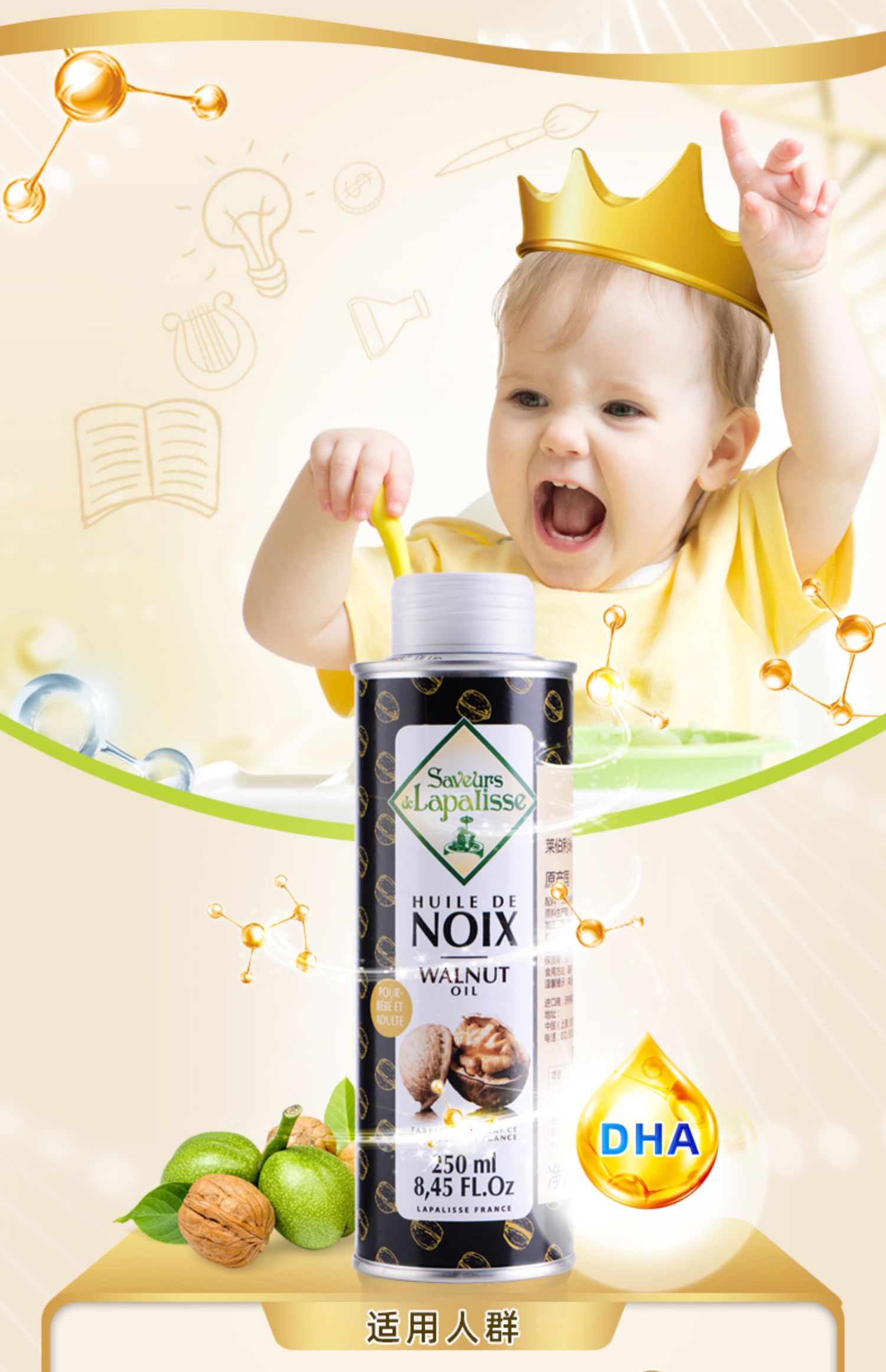 法国进口DHA核桃油250ml,传统物理冷榨一级好油,118年品质,专为孕妈和BABY精心研制,一滴助力DHA脑黄金,无食品添加剂,增强食欲,富含营养促进宝宝聪明成长~【赠运费险】