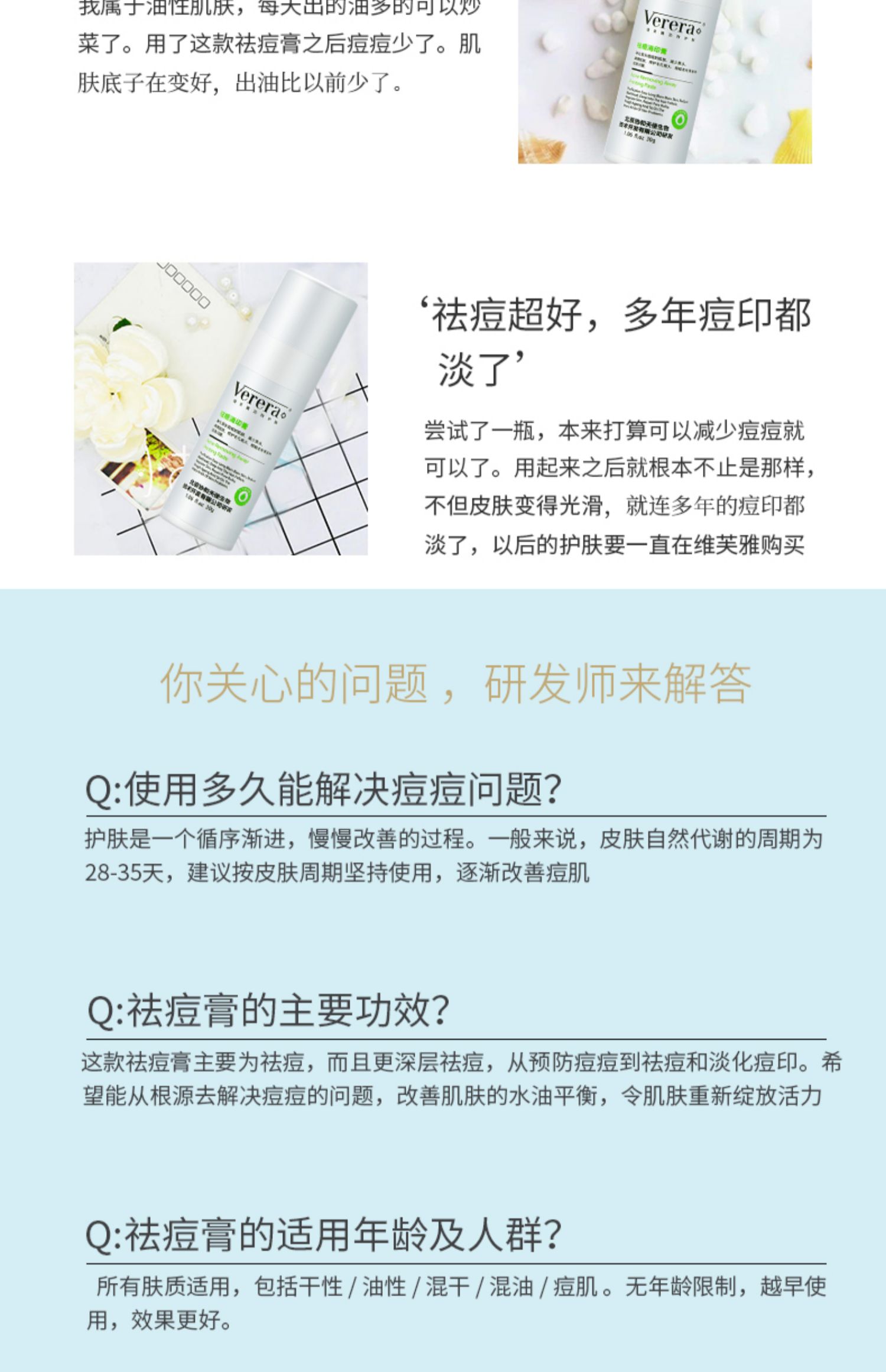 【维芙雅】改善油脂分泌,深层修护、祛痘淡印,适合所有人群,无年龄限制,不过敏不反弹!从根源解决痘痘的问题,令肌肤重新绽放活力。