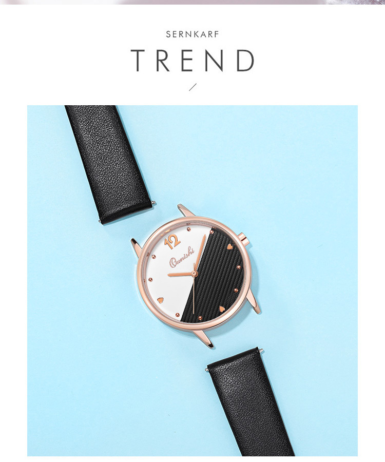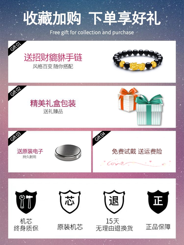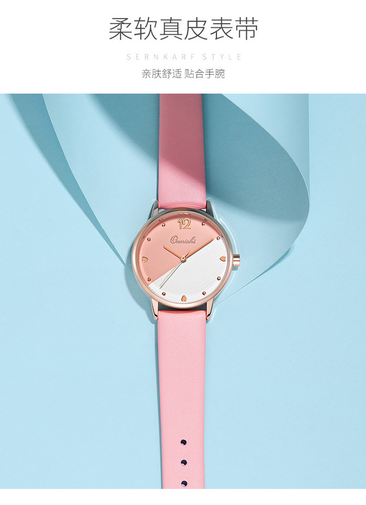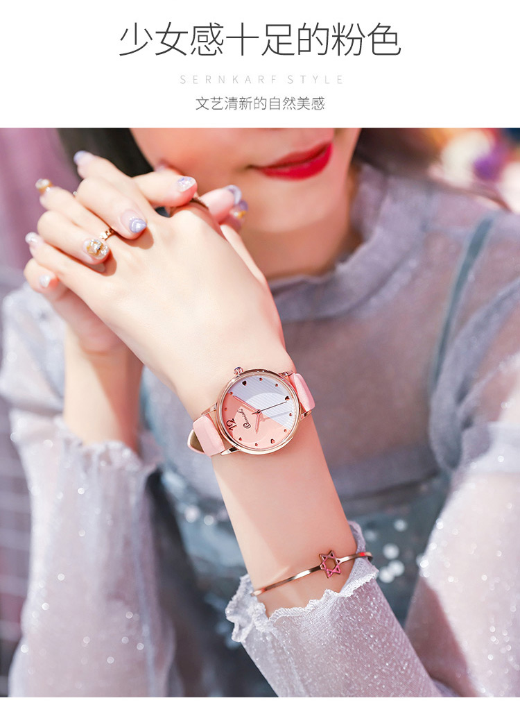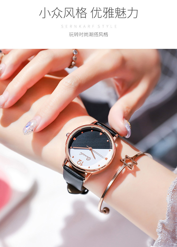 【送招财貔貅手链+精美礼盒+原装电子】简约休闲女士腕表,轻薄时尚优雅范,双色表面爱心圆珠钉刻度,纤薄表盘,优质表带,佩戴舒适透气,防水,超值实惠。【赠运费险,免费试戴】