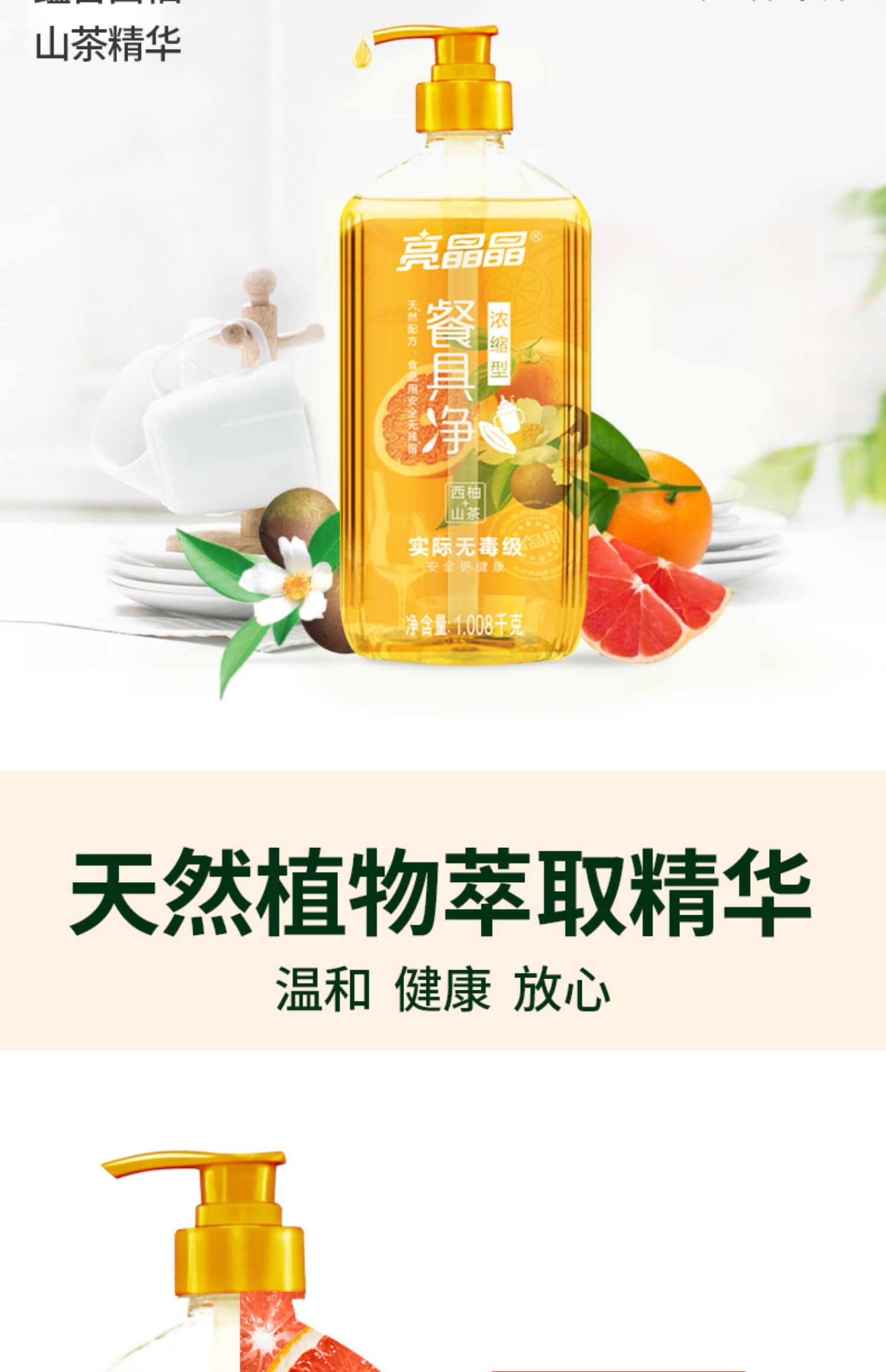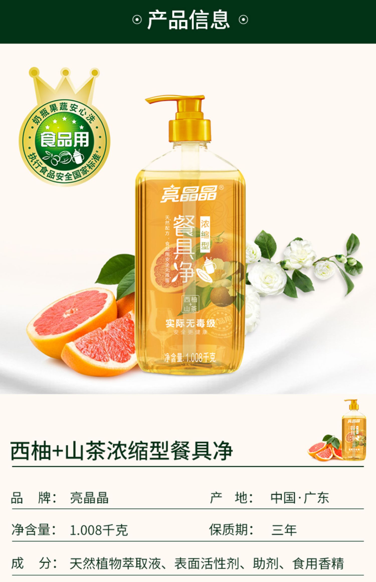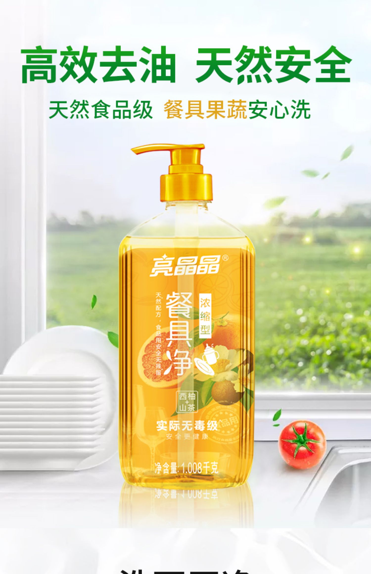 【买一送一!4斤多券后仅17.9】亮晶晶A类认证洗洁精,采用西柚、山茶天然植物精华的清洁力,放心饮食!含有绿色APG,轻松瓦解油污!A类认证,洁净果蔬更放心,奶瓶奶嘴放心洗!