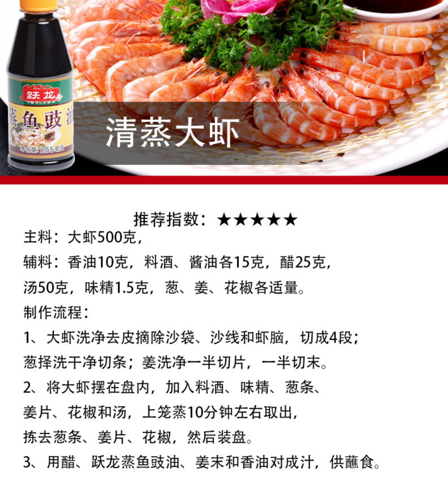 鲜味生抽调味品,优质原料,充分发酵,头一道酱油原汁,分量足。蘸汁调味,去腥爆香,提鲜味美,大豆酿造,颜色淡。