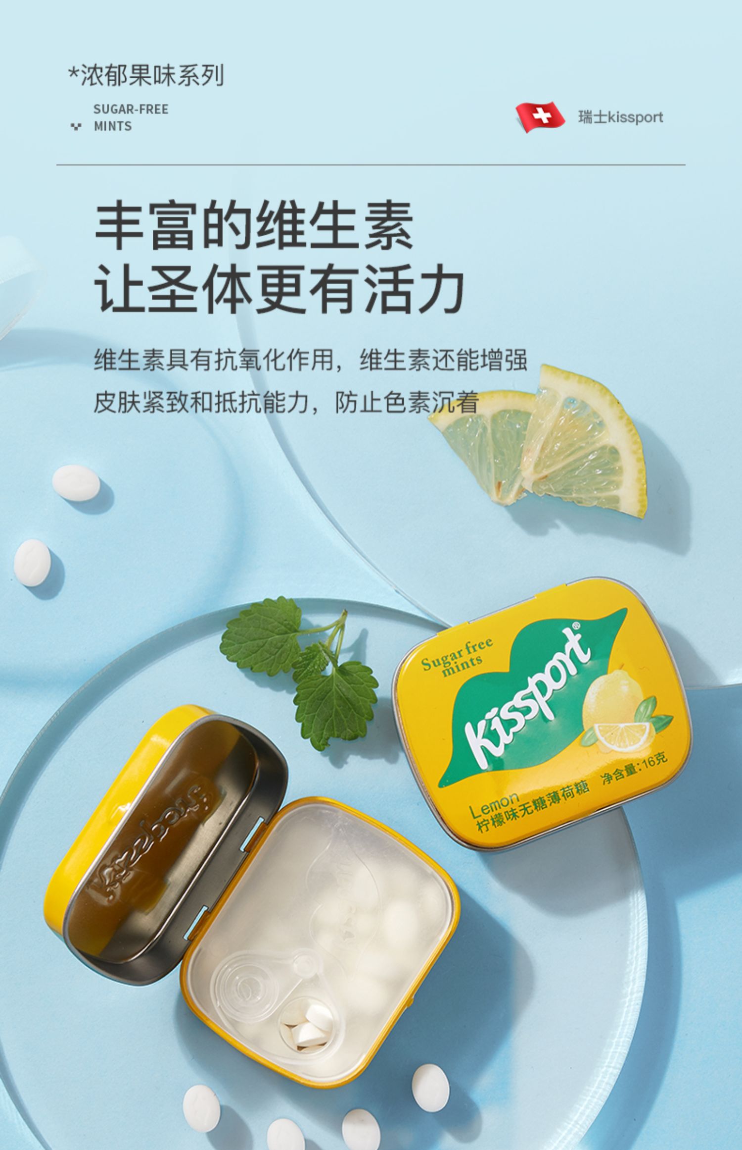 【超市同款!6盒装仅需17.99元!】kissport无糖薄荷糖!多种水果口味,富含维生素,无防腐剂,无糖低卡,爽爆味蕾~吃完大蒜来一颗,kiss再也不尴尬~~