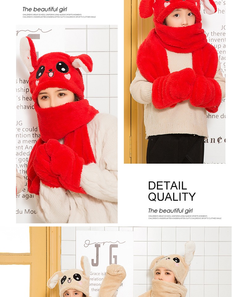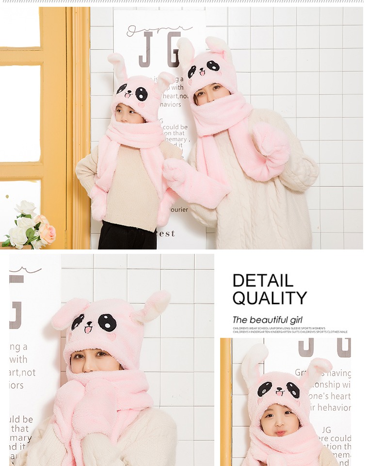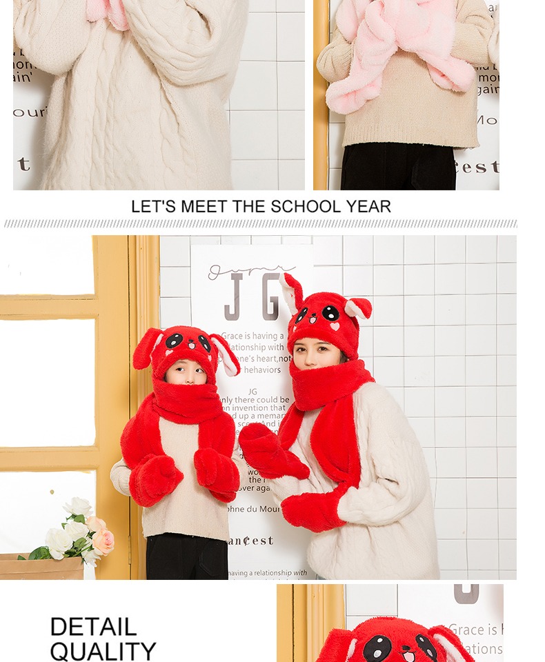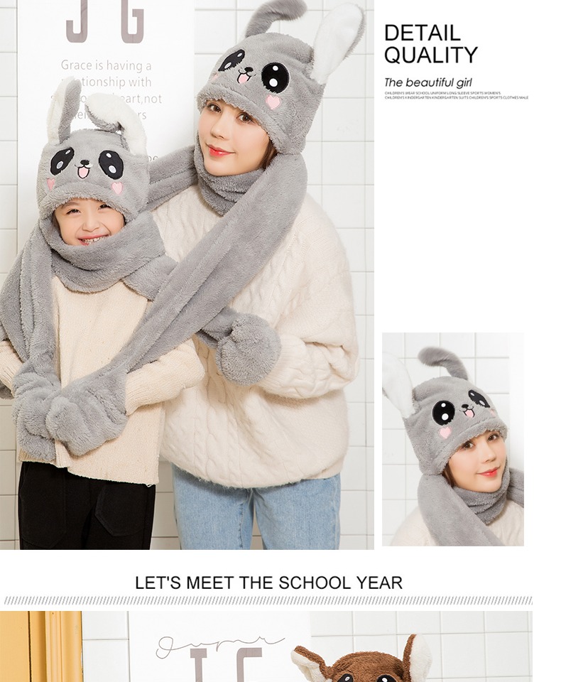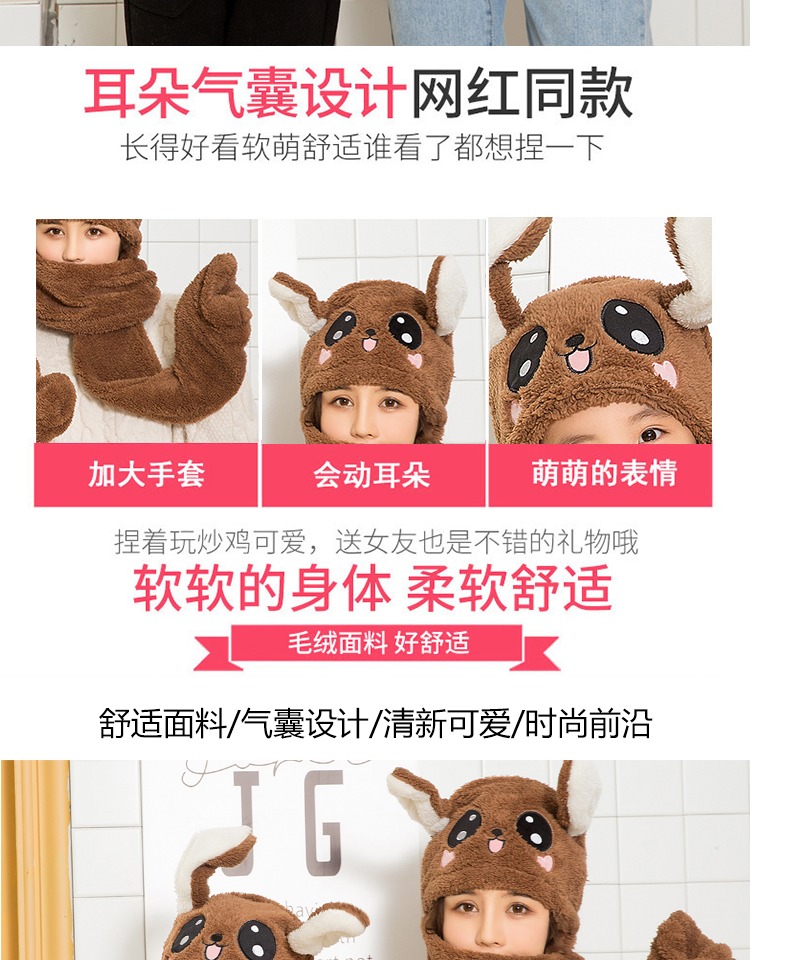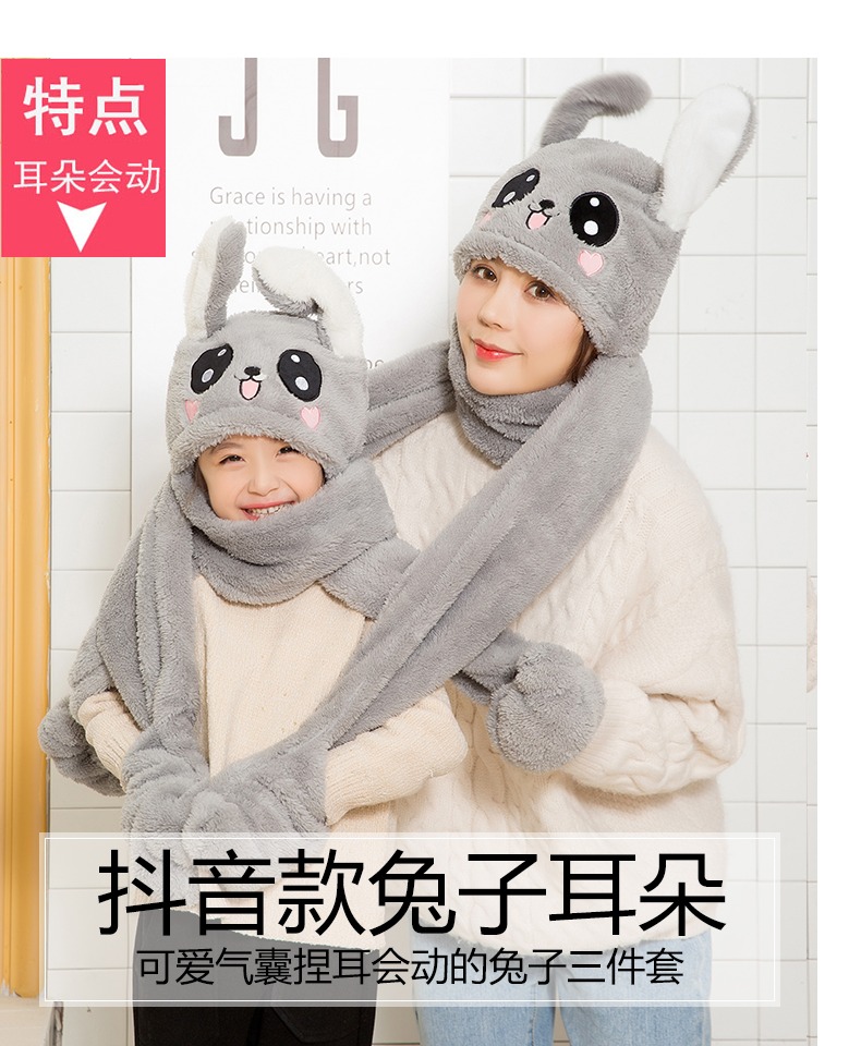 【抖音爆款三件套升级版】明星都在玩的免子耳朵帽,可爱气囊捏耳朵会动的兔子帽,耳朵气囊设计,长得好看软件萌舒适,谁看了都想捏一下,不仅好看还保暖,帽子围巾手套一体设计。