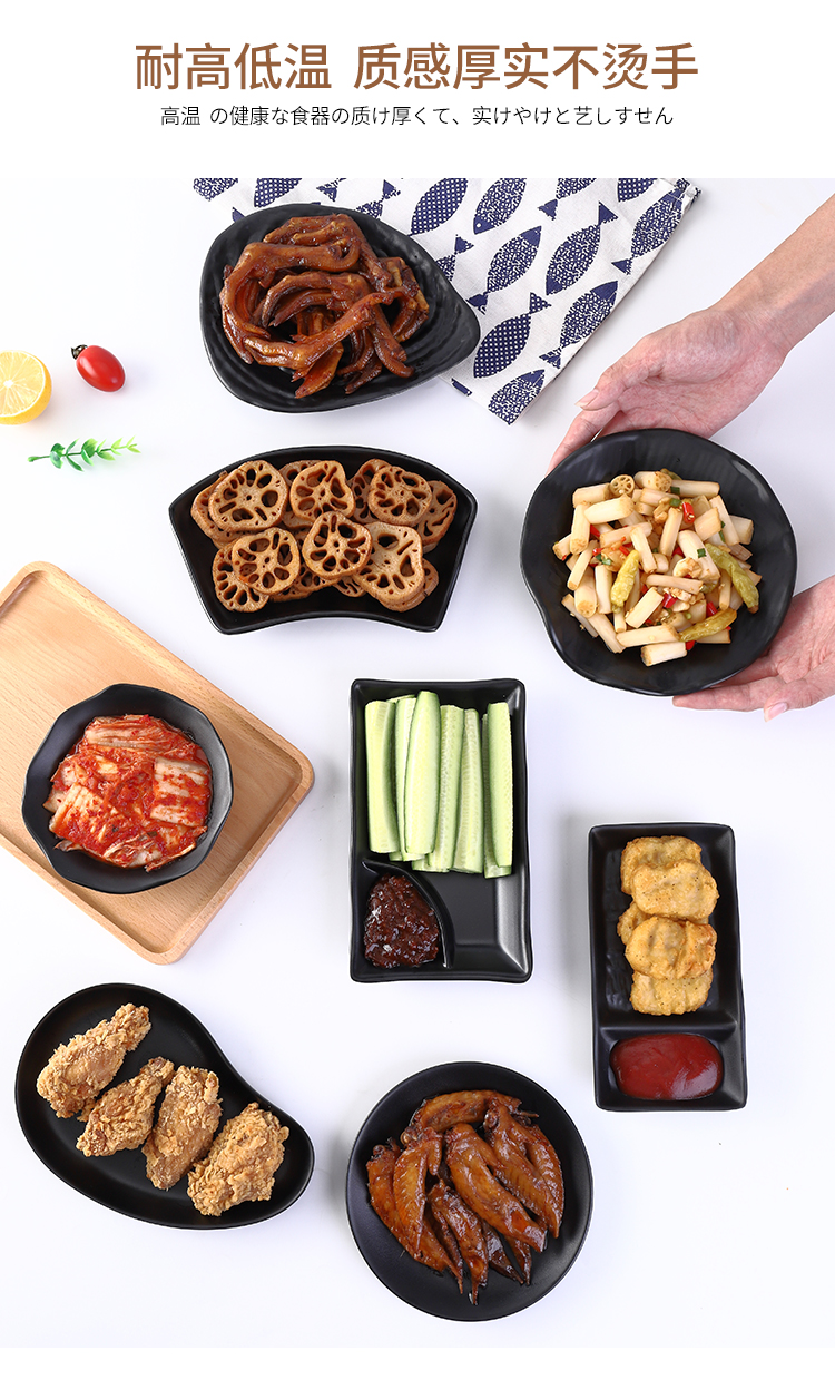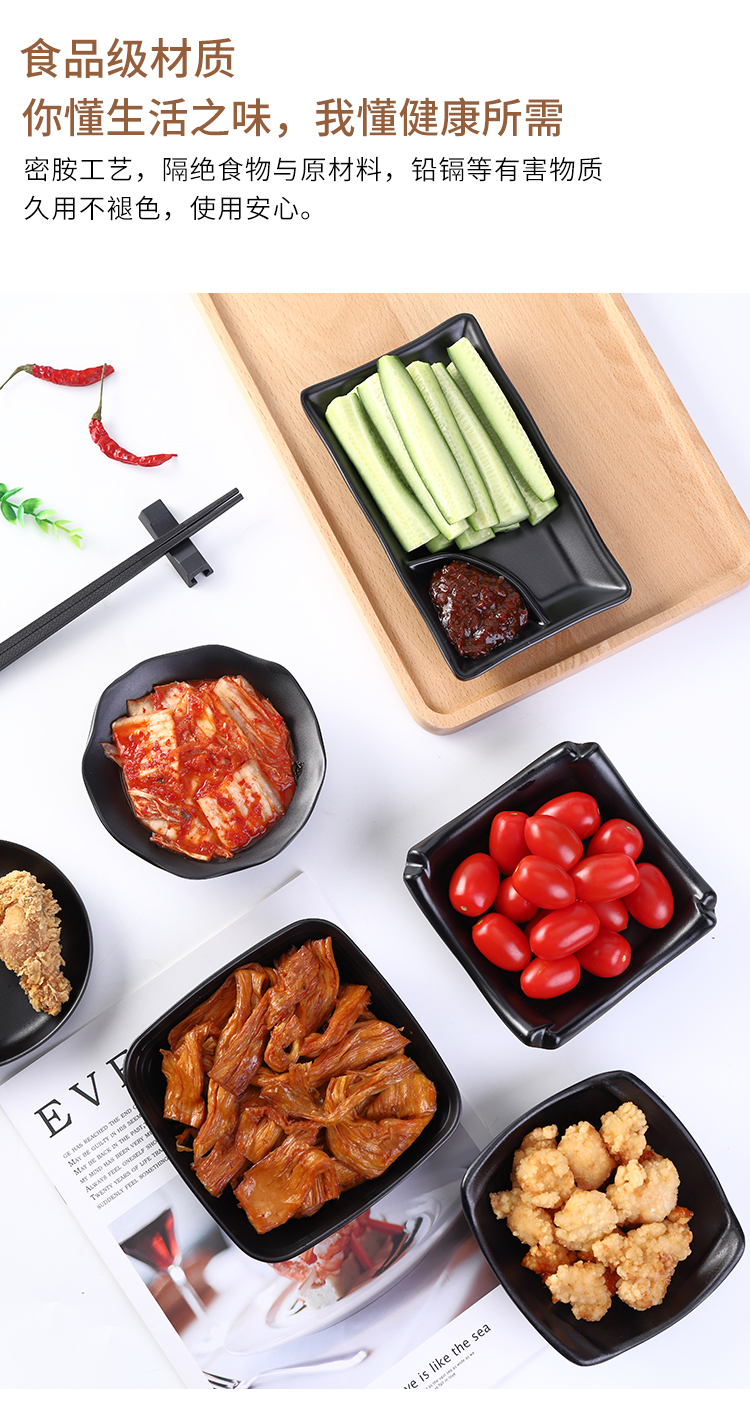 【工厂直销】圆形小吃盘子,个性家庭零食碟,黑色菜碟,精选密胺,厚实耐摔!符合国家安全生产标准,安全健康无毒无味,耐高温,不变形,方便易冲洗,可以放心使用!~无毒无味,