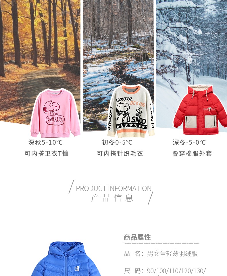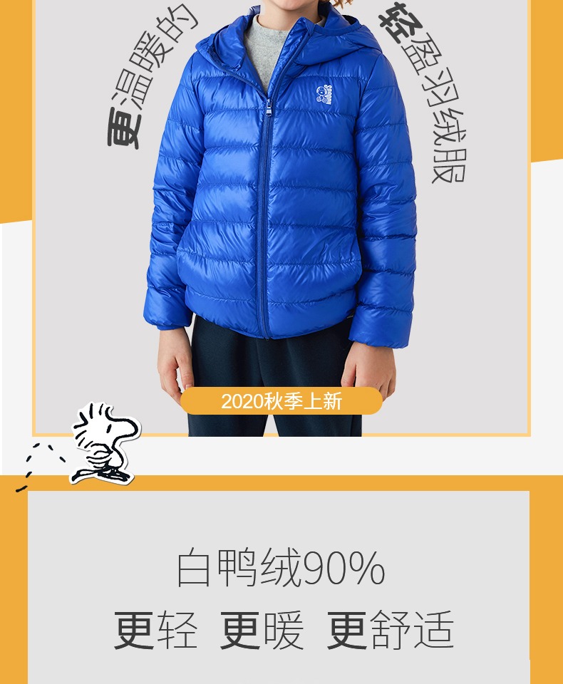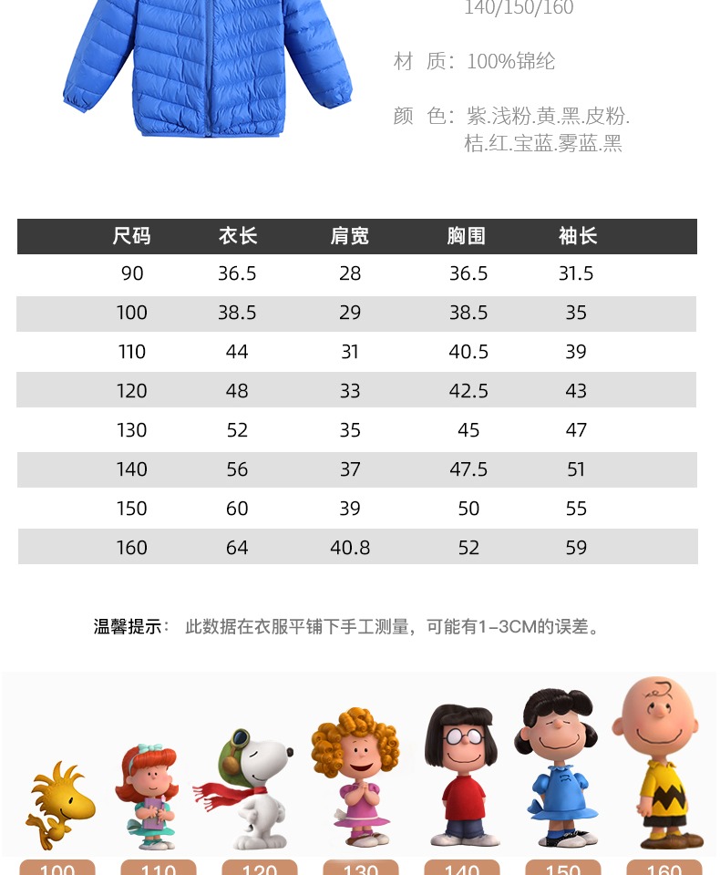 【一线品牌史努比!90-160CM全尺寸一个价】高蓬松百分之90白鸭绒,三层结构设计,防钻绒,10色可选,男女童都有,保暖力强劲,轻暖相伴,这个冬天给孩子暖暖的爱!【赠运费险】