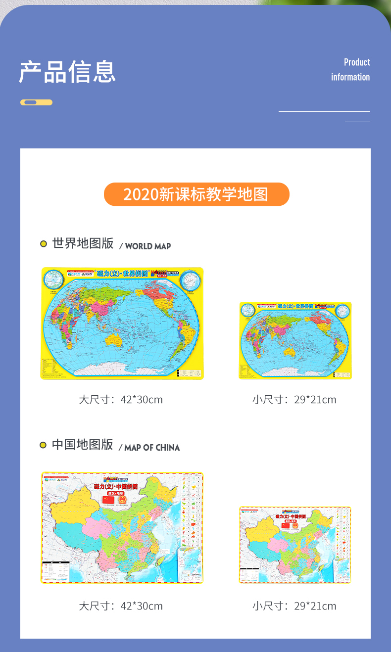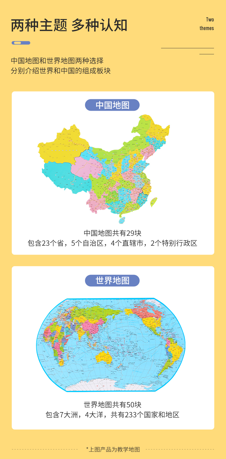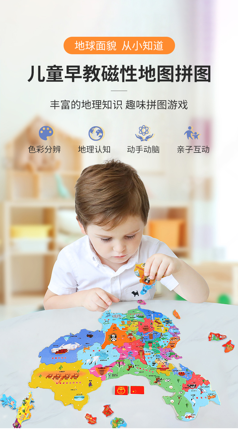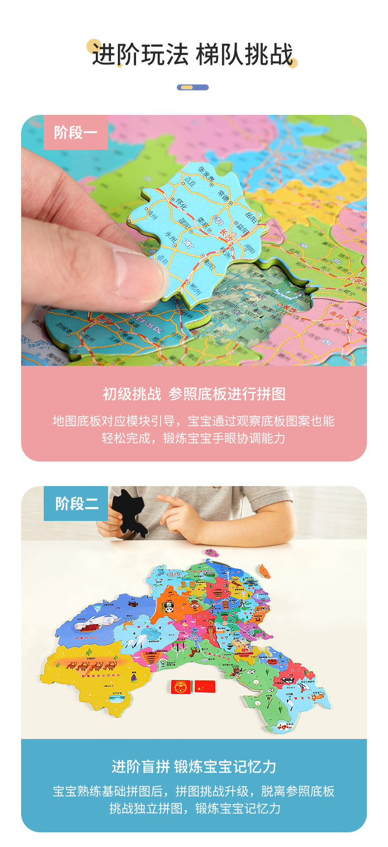 【好玩还涨知识】磁性中国世界地图拼图,宝妈们特别推荐的一款拼图玩具,磁性吸力,不易掉落,区块色彩分明。寓教于乐,就把地理知识也学会了!