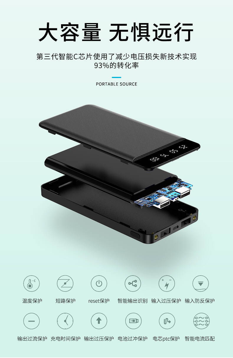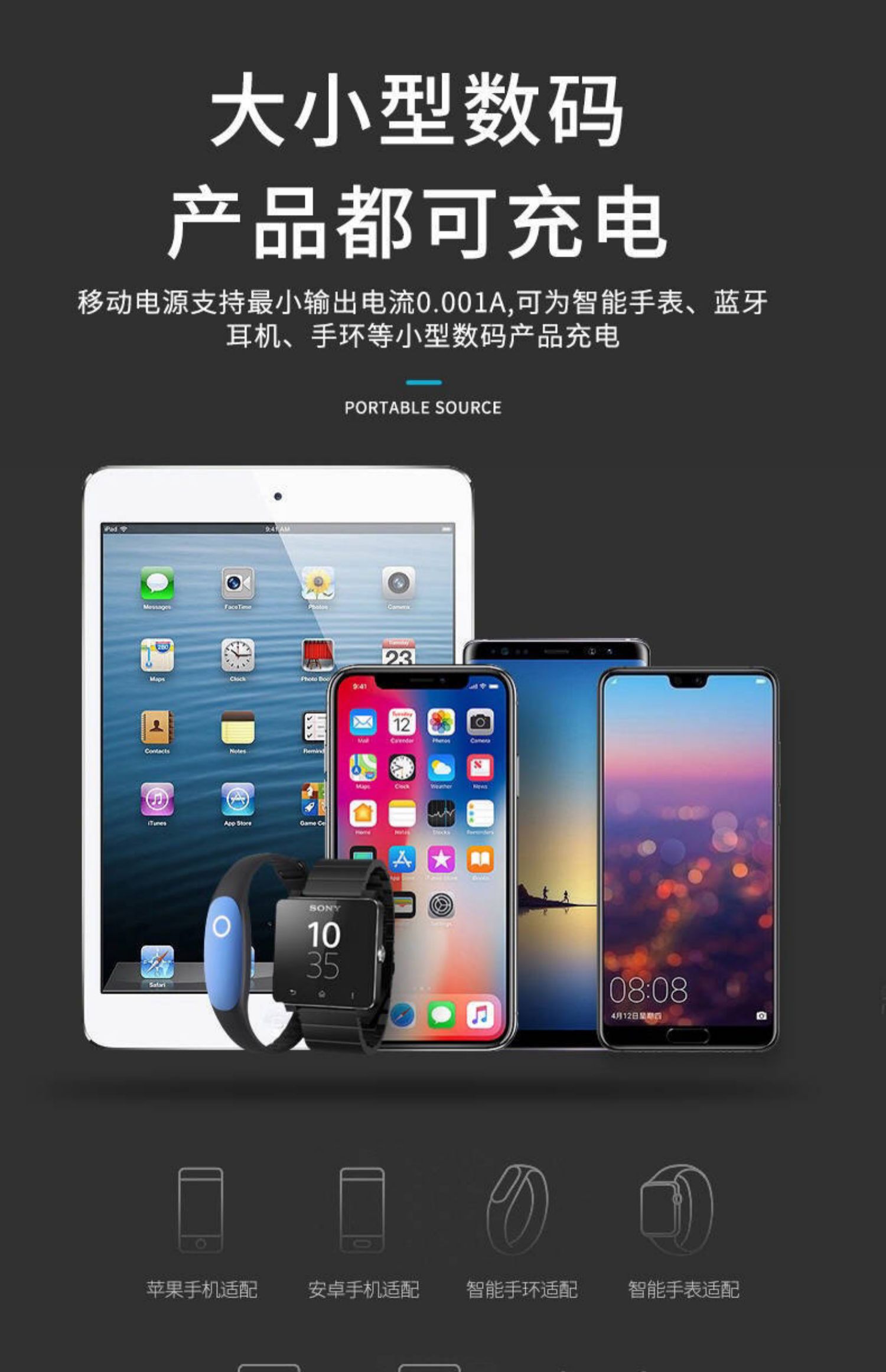 充电设计,满足不同需求。充电宝,给你意想不到的安全感大容量充电宝,让你的安全感秒爆棚