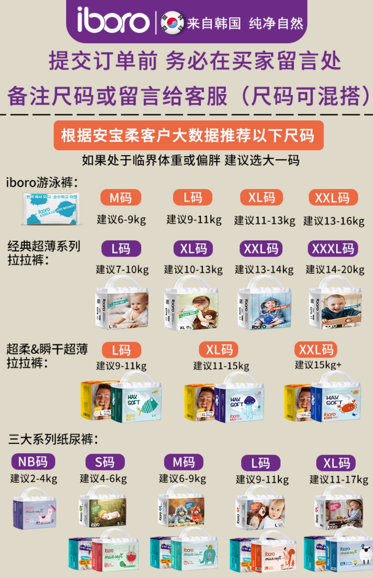 【小红书推荐】和babycare同一生产设备,韩国本土安宝柔拉拉裤纸尿裤,5片独立包装,采用日本住友德国巴斯夫高分子,瞬间吸收,无荧光剂,立体防漏,柔软舒适,用心呵护宝宝每寸娇嫩肌肤!【赠运费险】