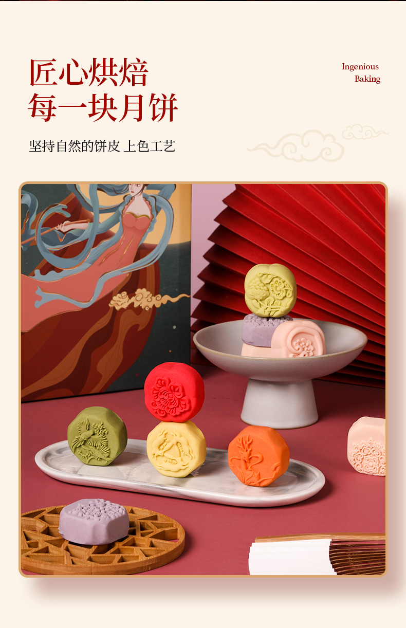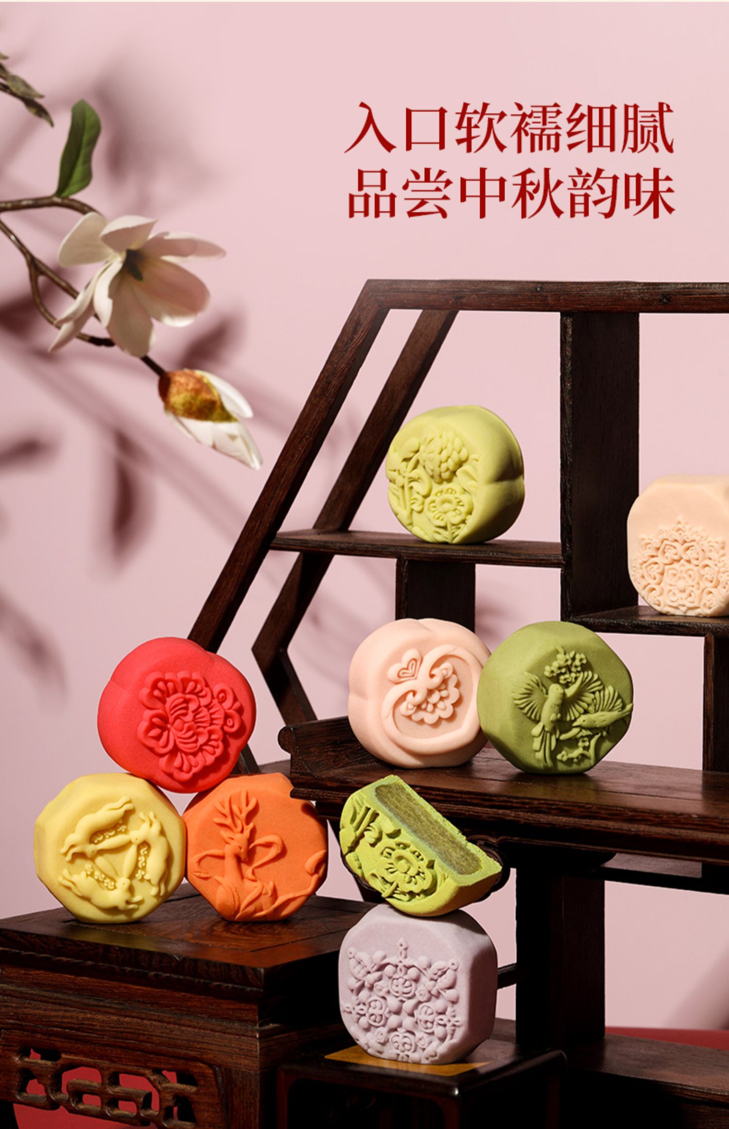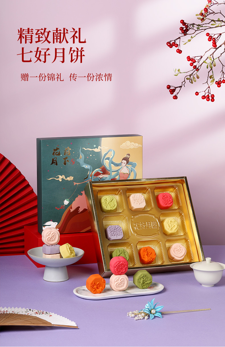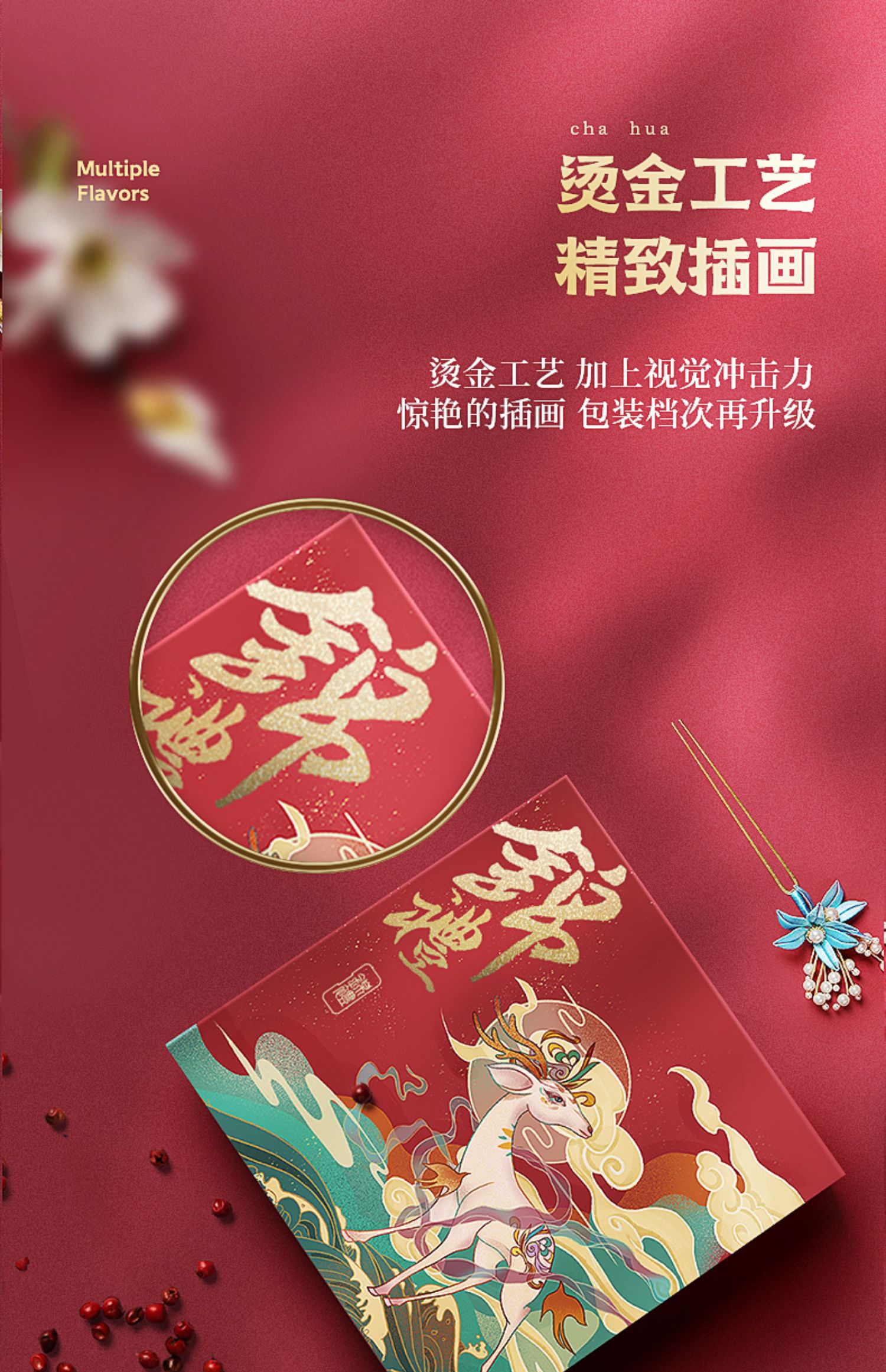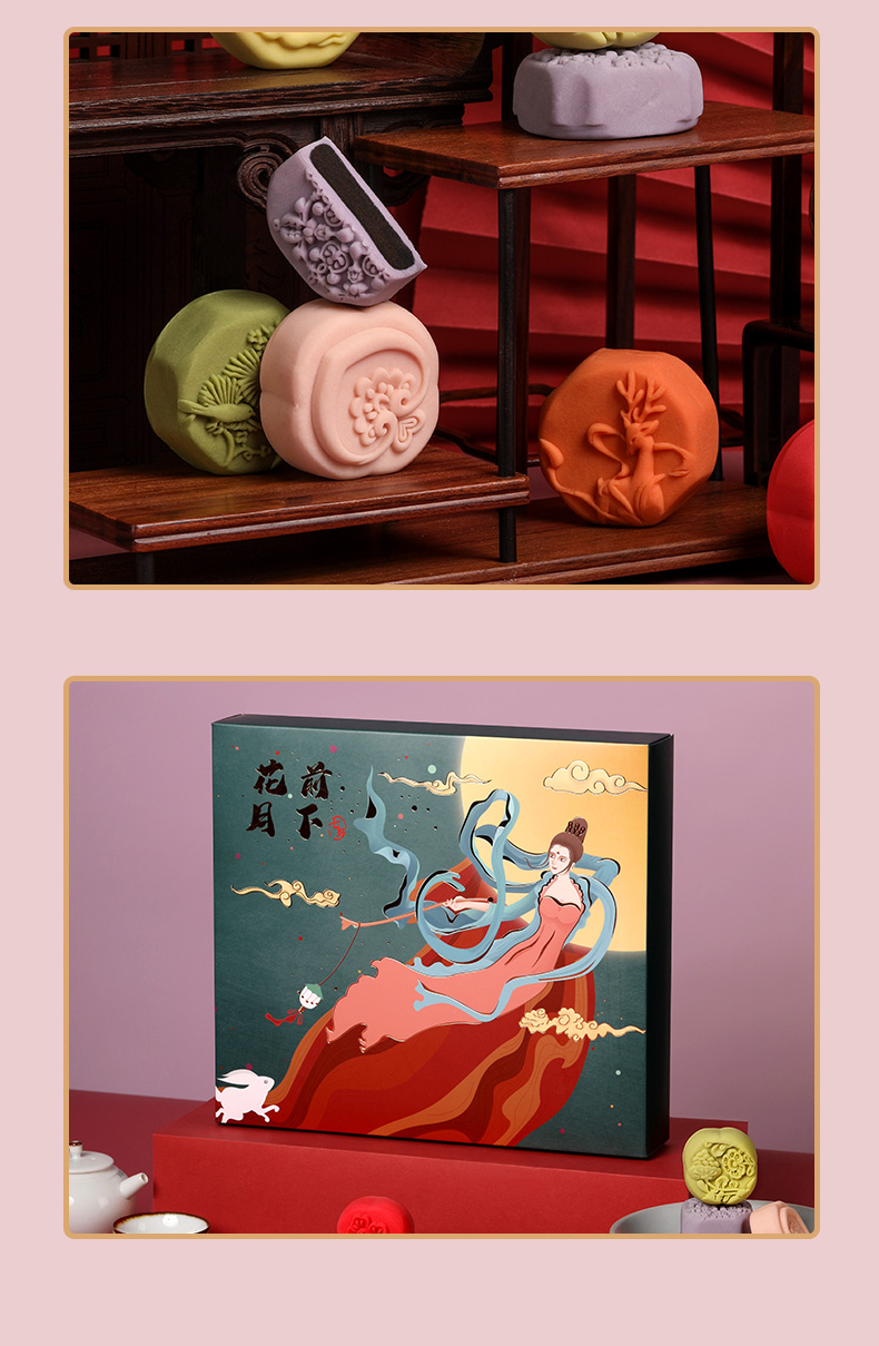 【全国包邮!】中国风插画设计,花前月下礼盒月饼!包装精美,送手提袋!一共8花8味,有抹茶、巧克力、流心奶黄、红酒蔓越莓等口味,都超级好吃!吃一口就爱上它了!