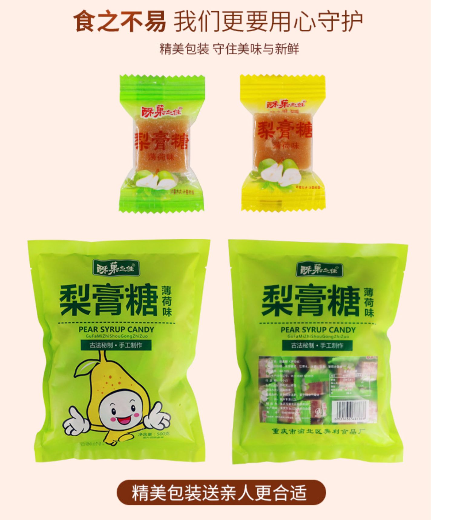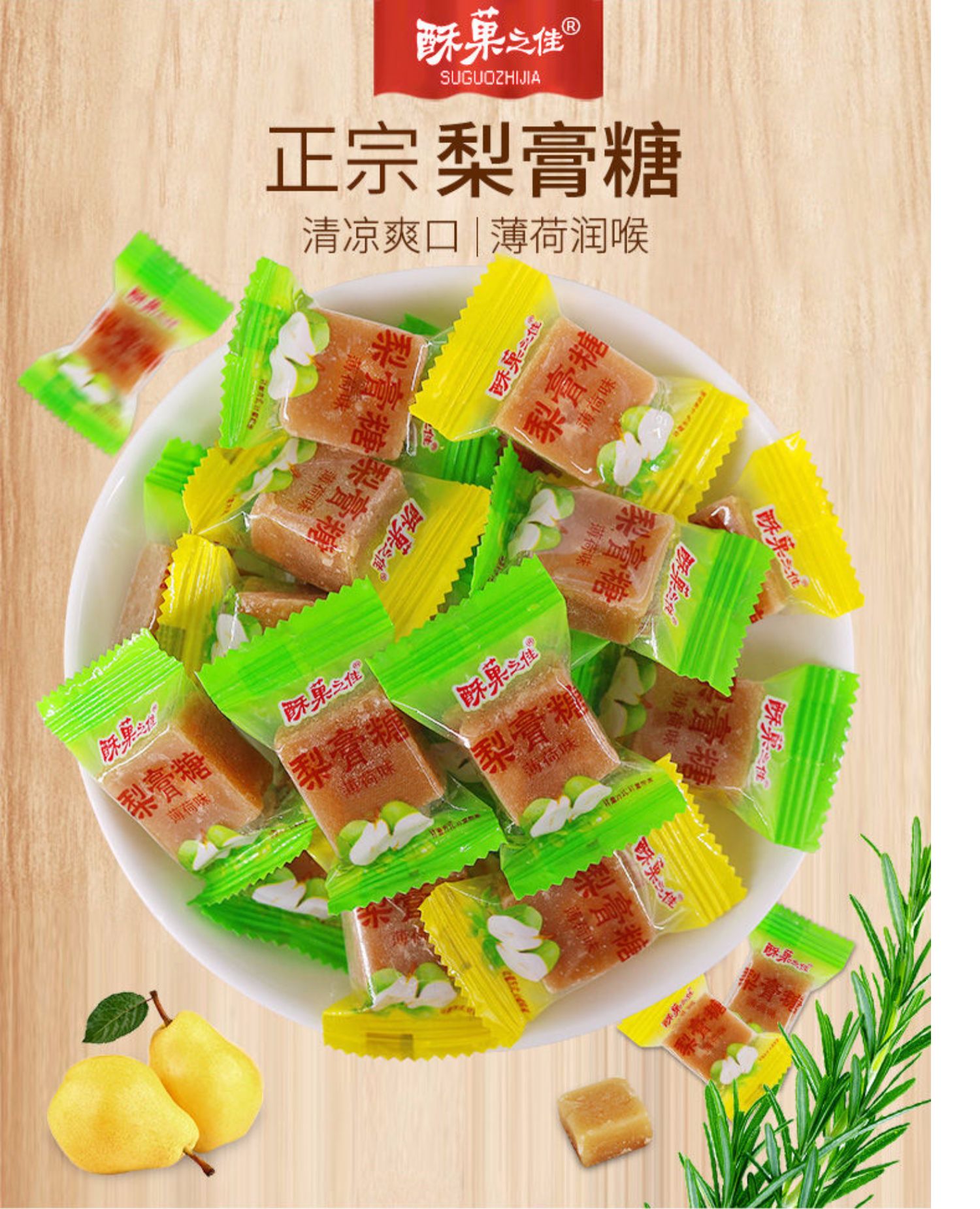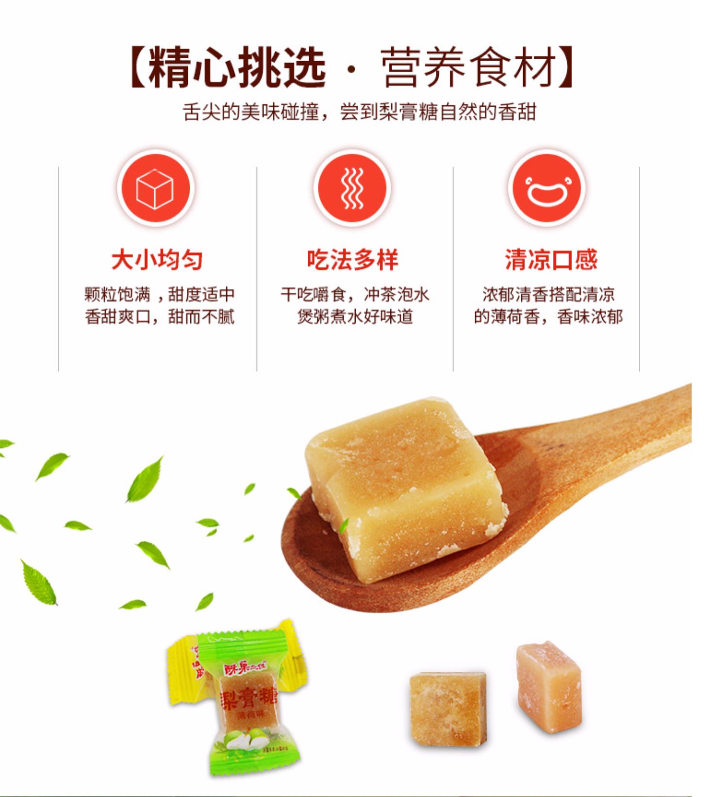【买两份送水杯】清凉润喉薄荷味梨膏糖500克糖果,清凉爽口薄荷润喉,精心挑选,营养食材,颗粒饱满,甜度适中,干吃嚼食,冲茶泡水,童年记忆小时候的味道。
